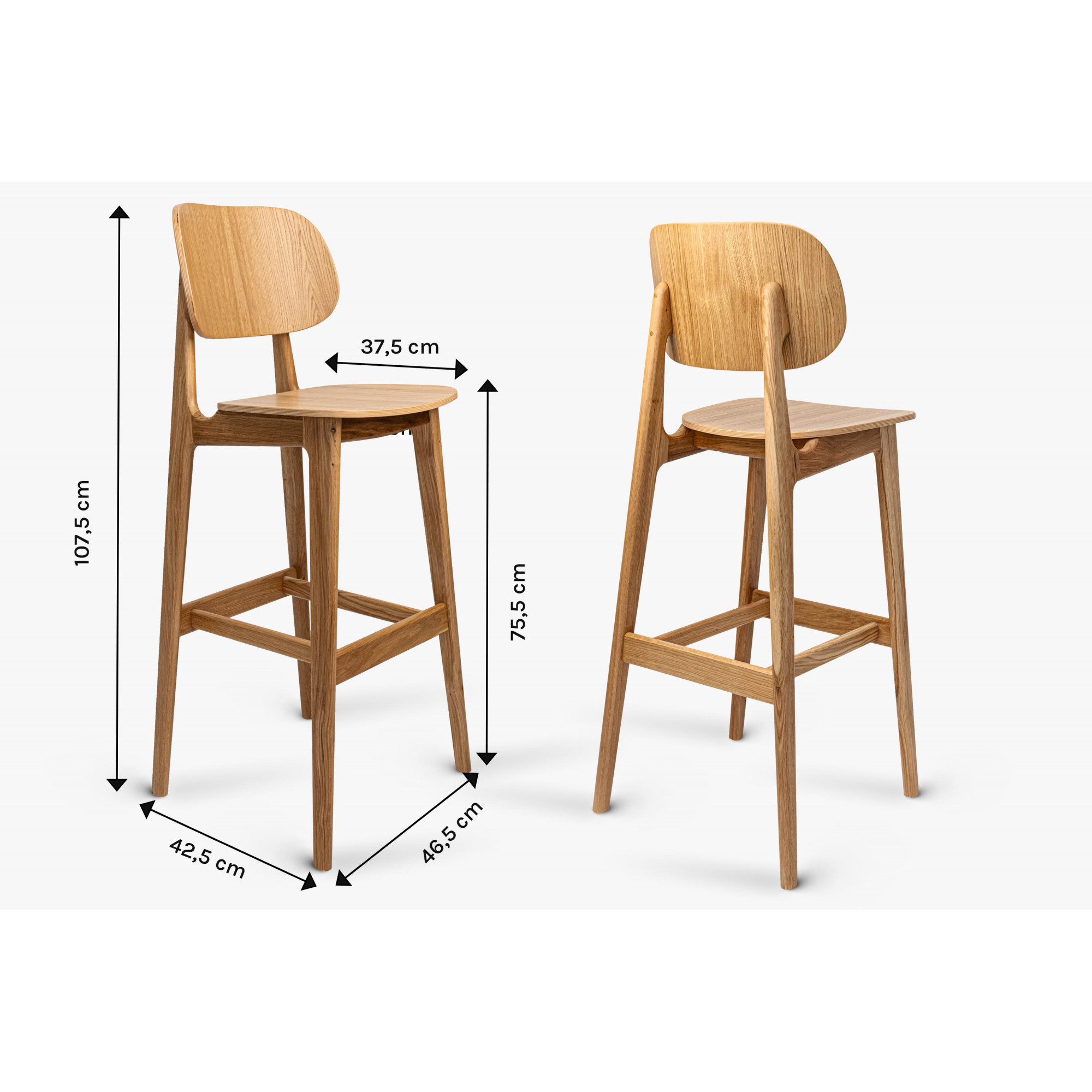 Barhocker aus Eichenholz 75 cm Höhe skandinavisches Design