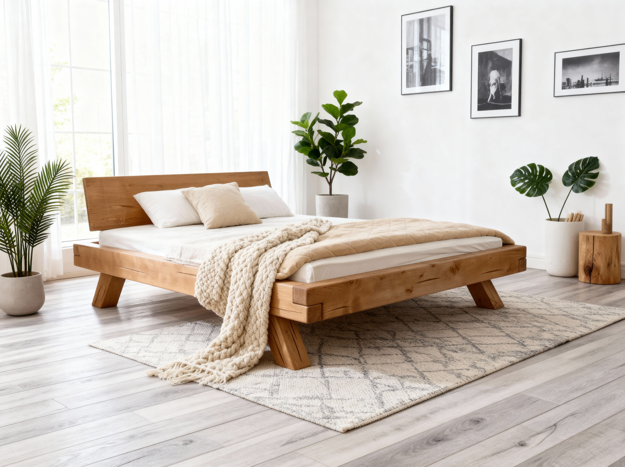 Das Holzbett Miky ist ideal für alle, die ein robustes und natürliches Schlafzimmermöbel suchen. Gefertigt aus massiven Fichtenbalken (16 x 9 cm) in der Größe 180 x 200 cm, bietet es optimale Schlafbedingungen und ein authentisches Design. Die honigfarbene Oberfläche verleiht dem Bett eine warme, natürliche Ausstrahlung. Dieses Bett ist perfekt für gesundes Schlafen in einem gemütlichen Ambiente mit nachhaltigem Material.