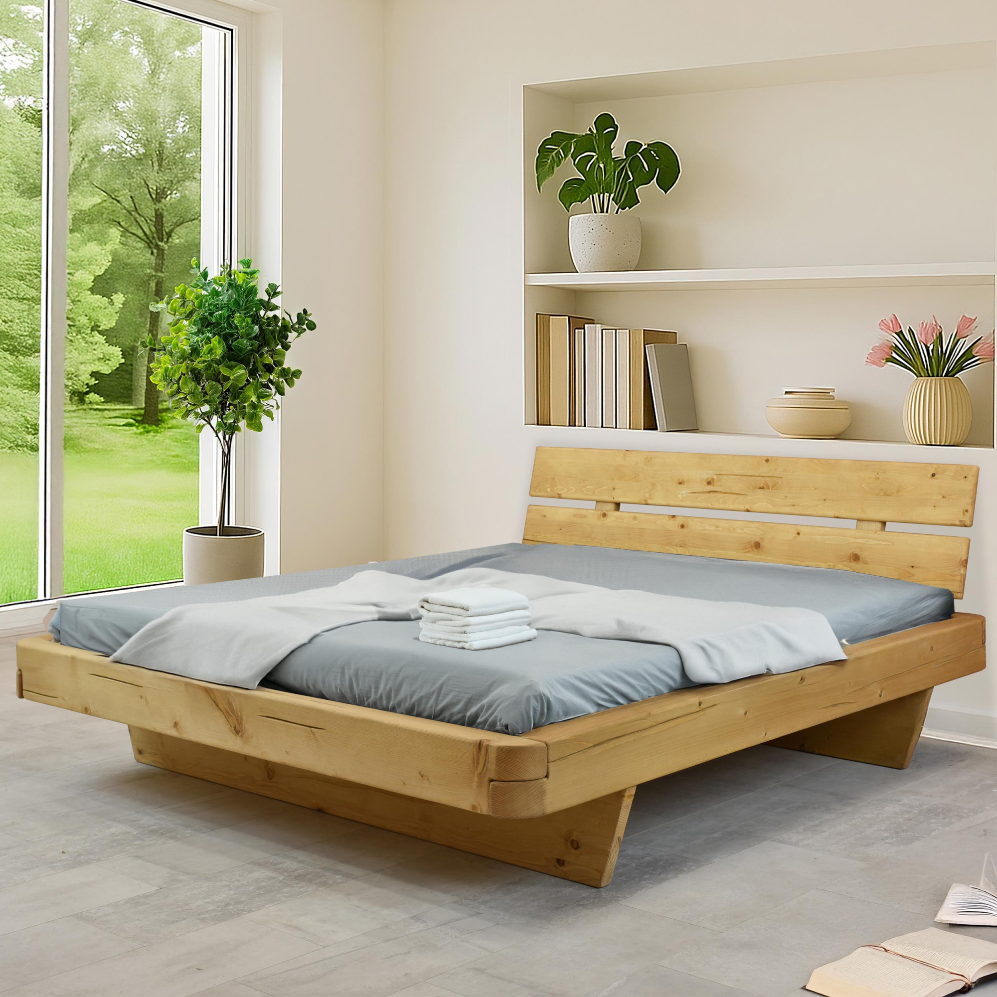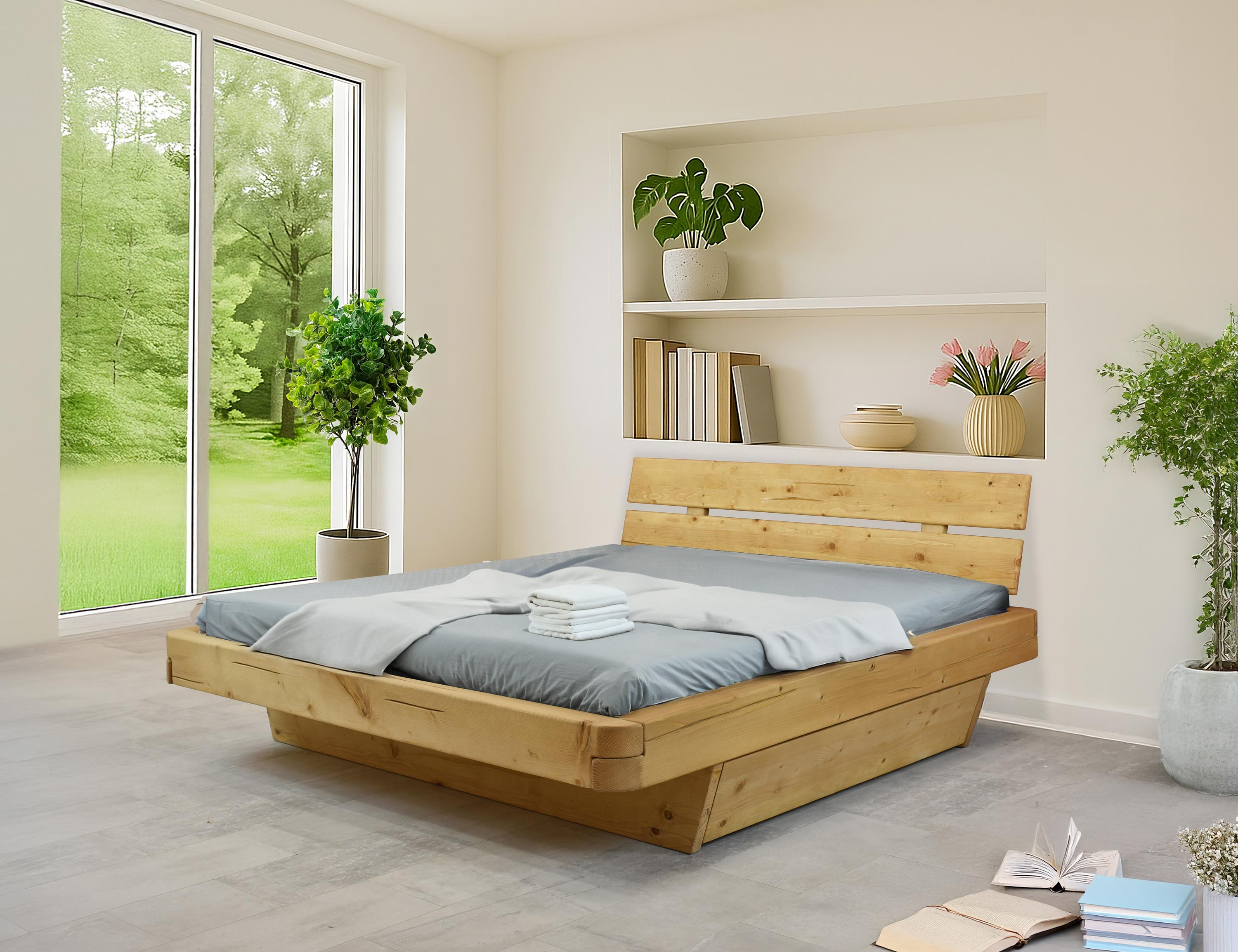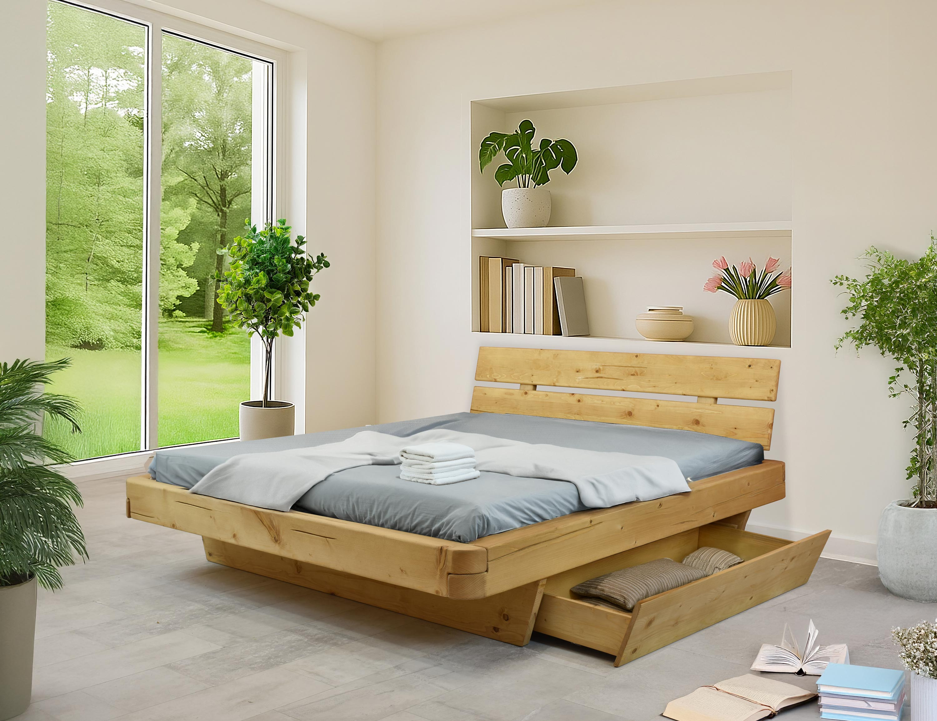 Massives Fichtenholz Bett 180 cm mit Stauraum und Schubladen