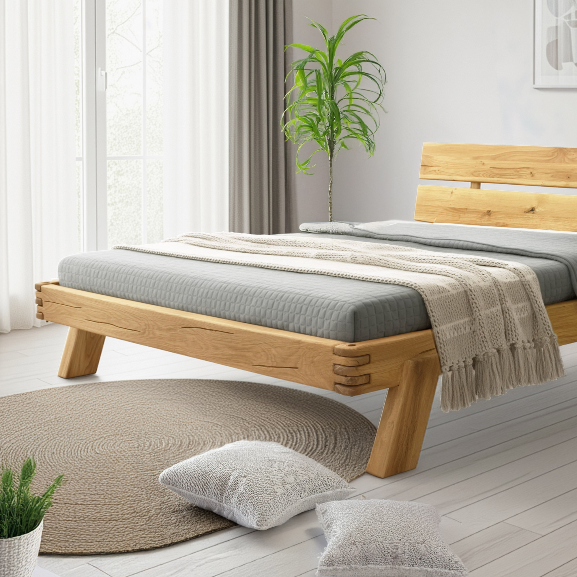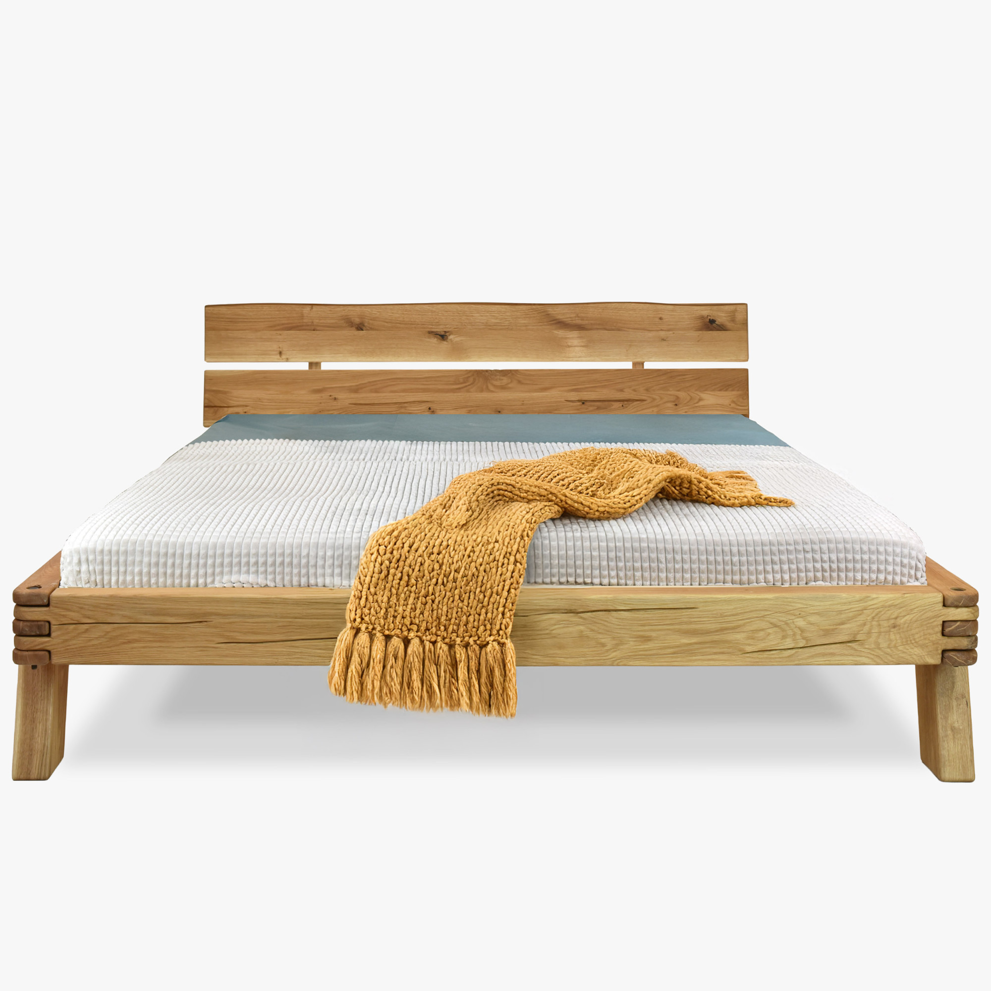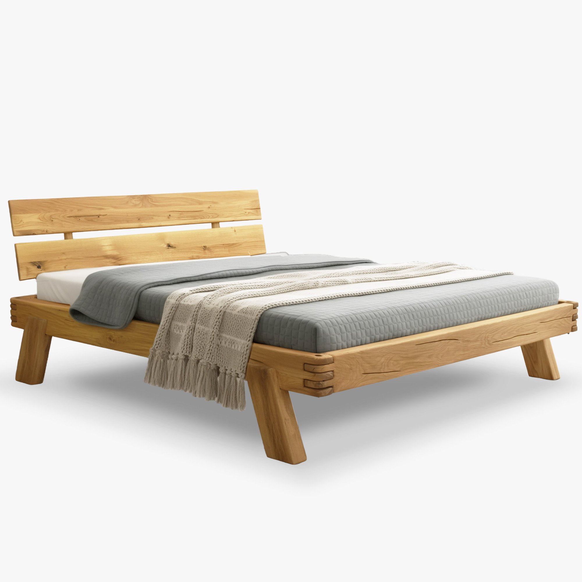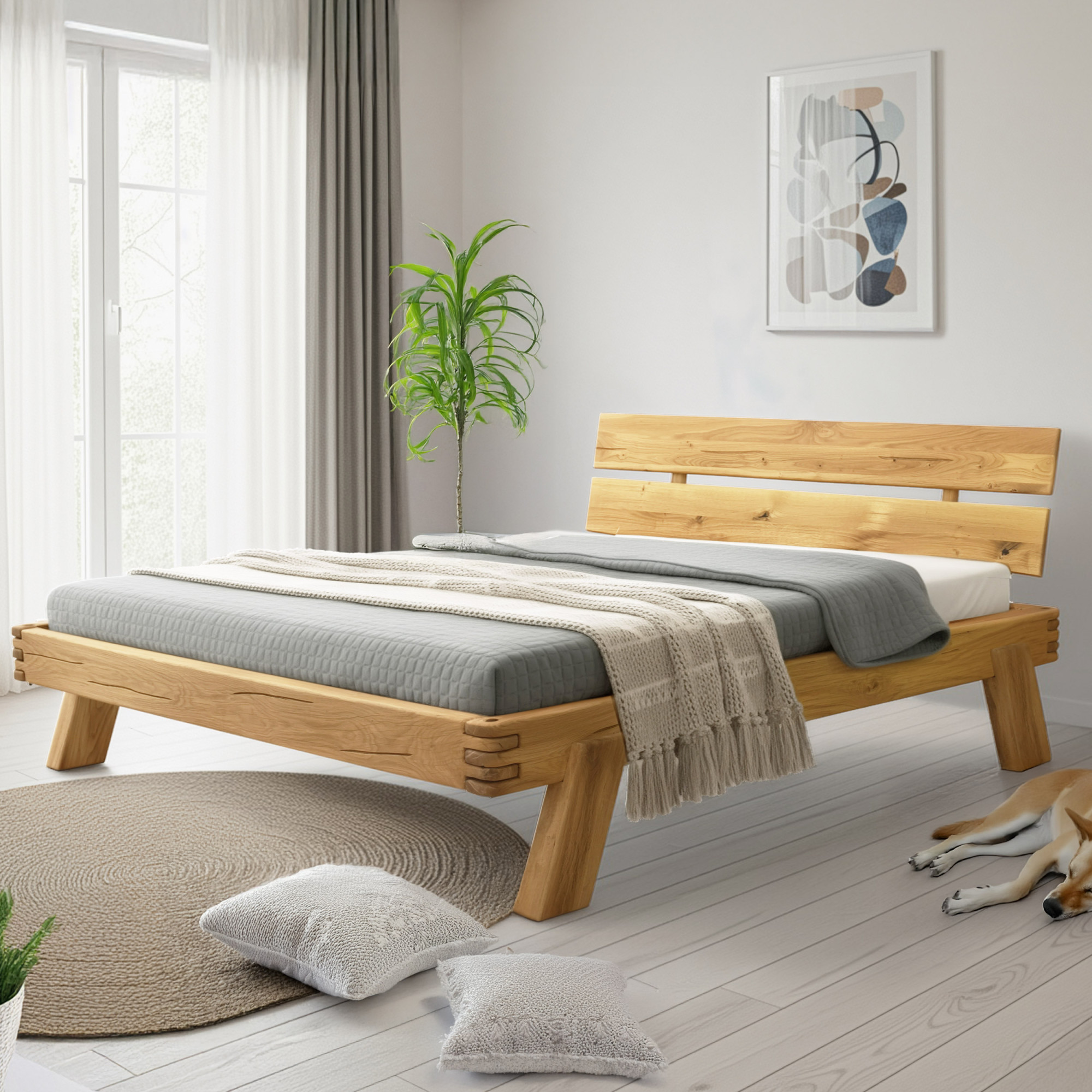 Massives Eichenholz-Bett aus Balken 180 x 200 cm