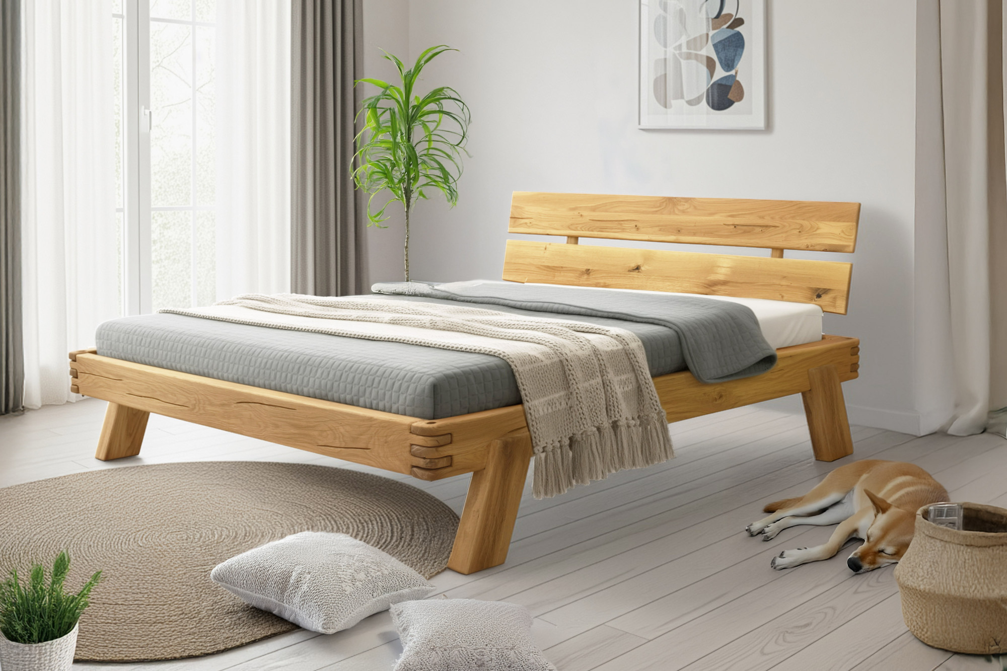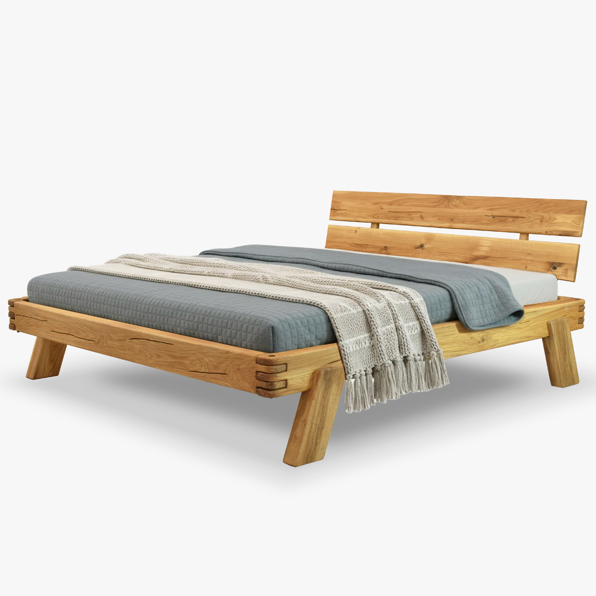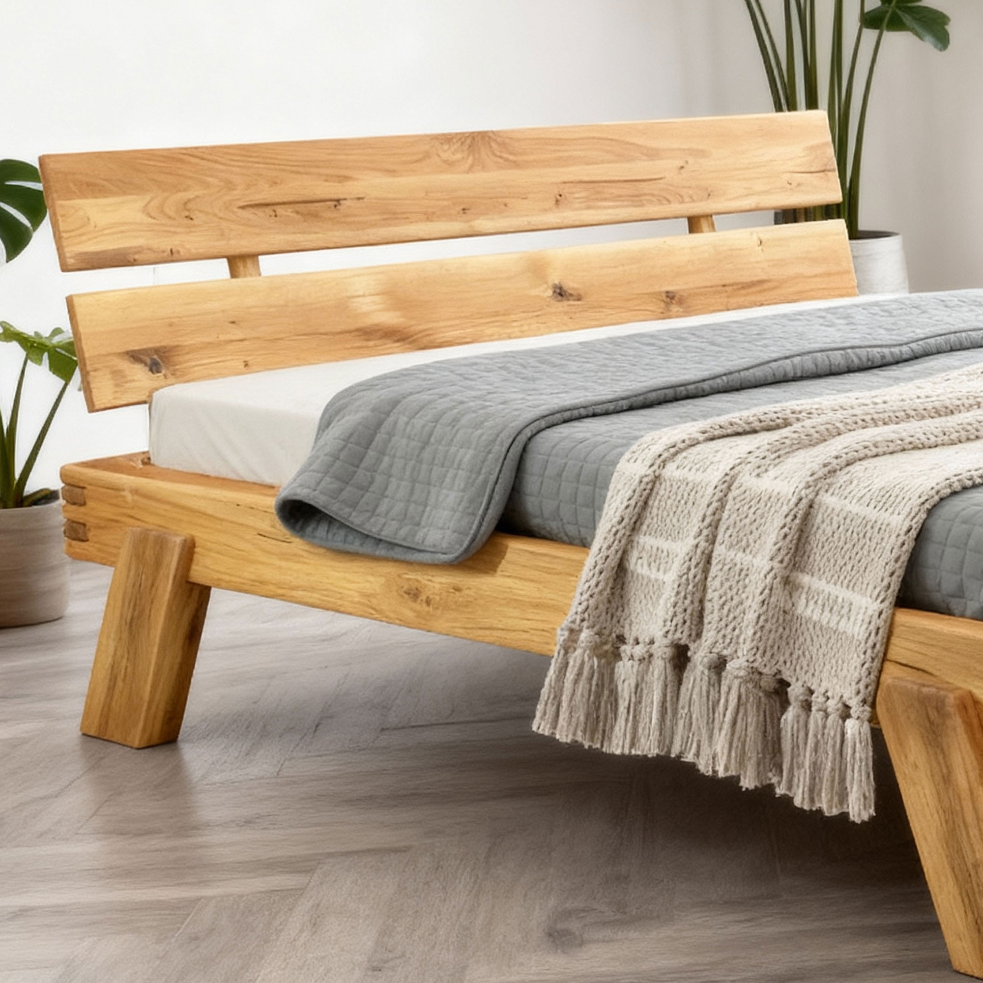 Massives Eichenholz-Bett aus Balken 180 x 200 cm