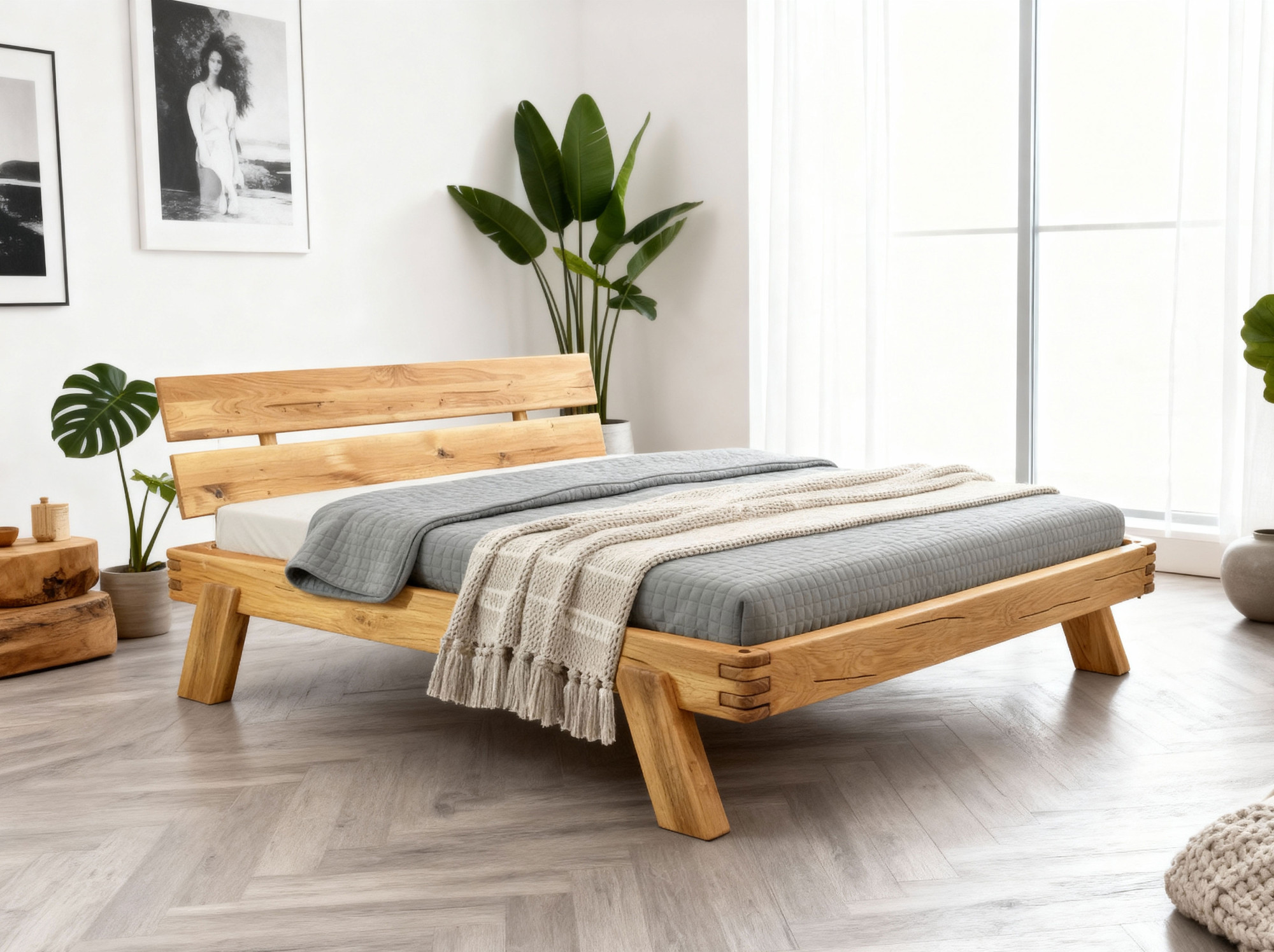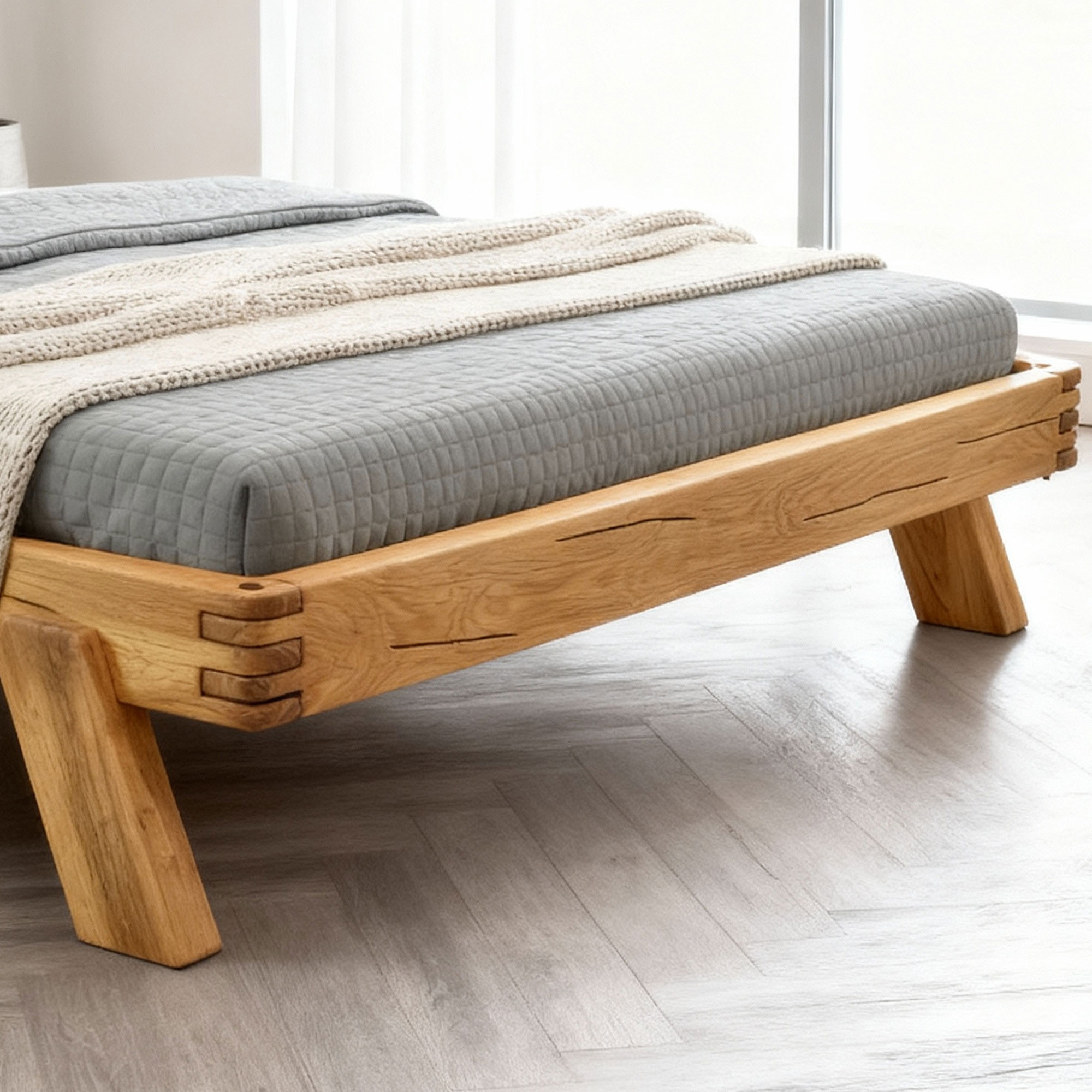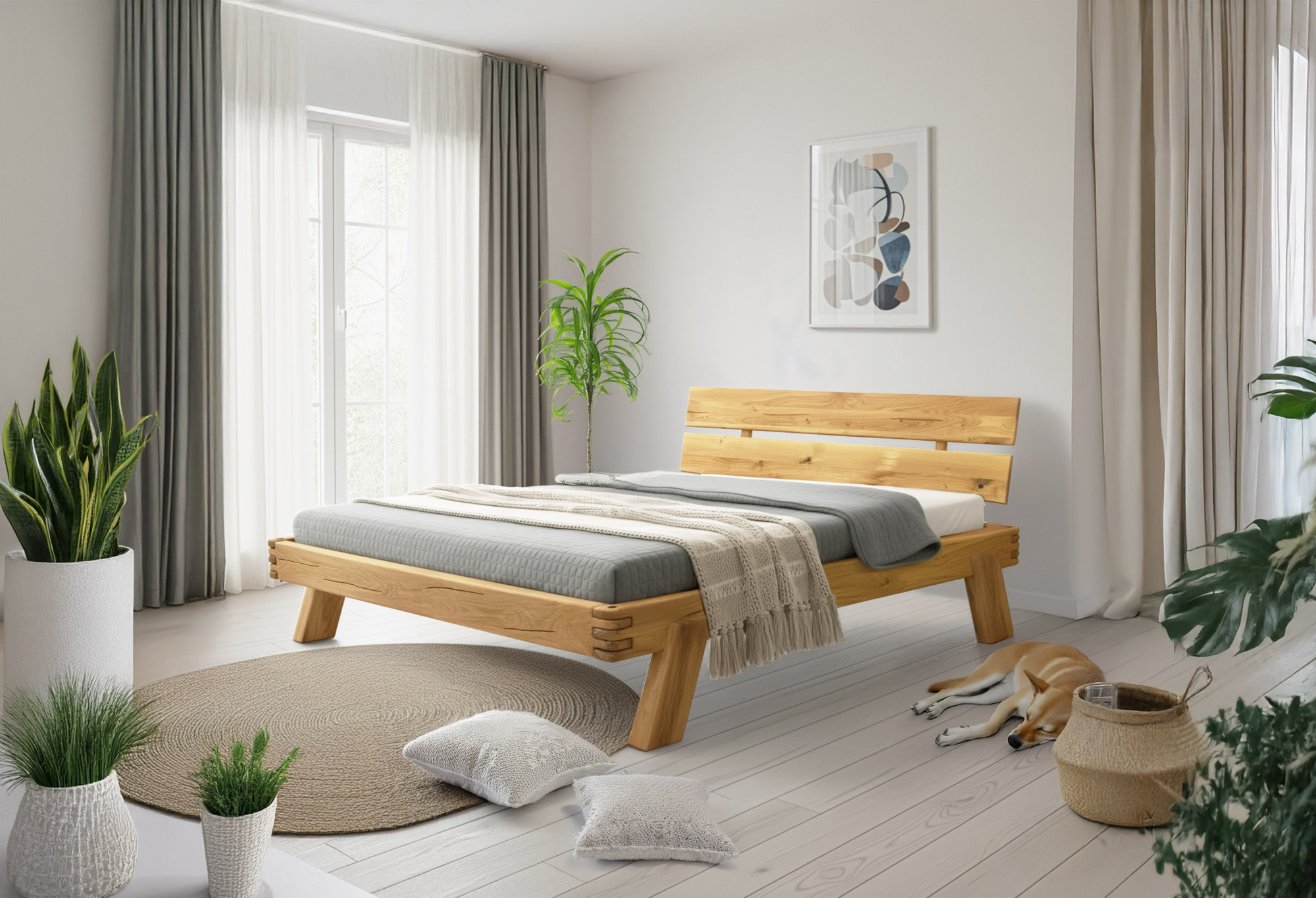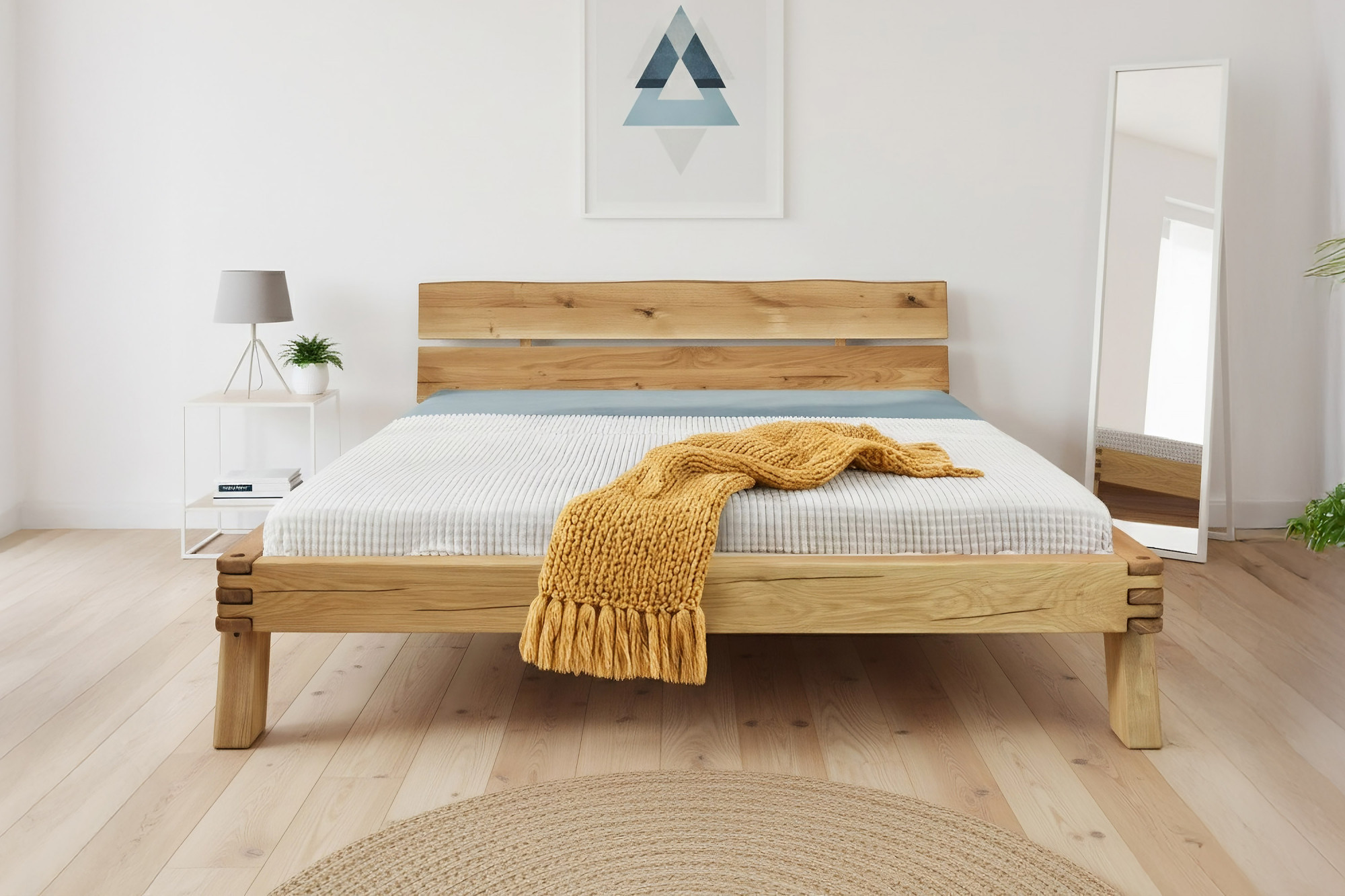 Massives Eichenholz-Bett aus Balken 180 x 200 cm