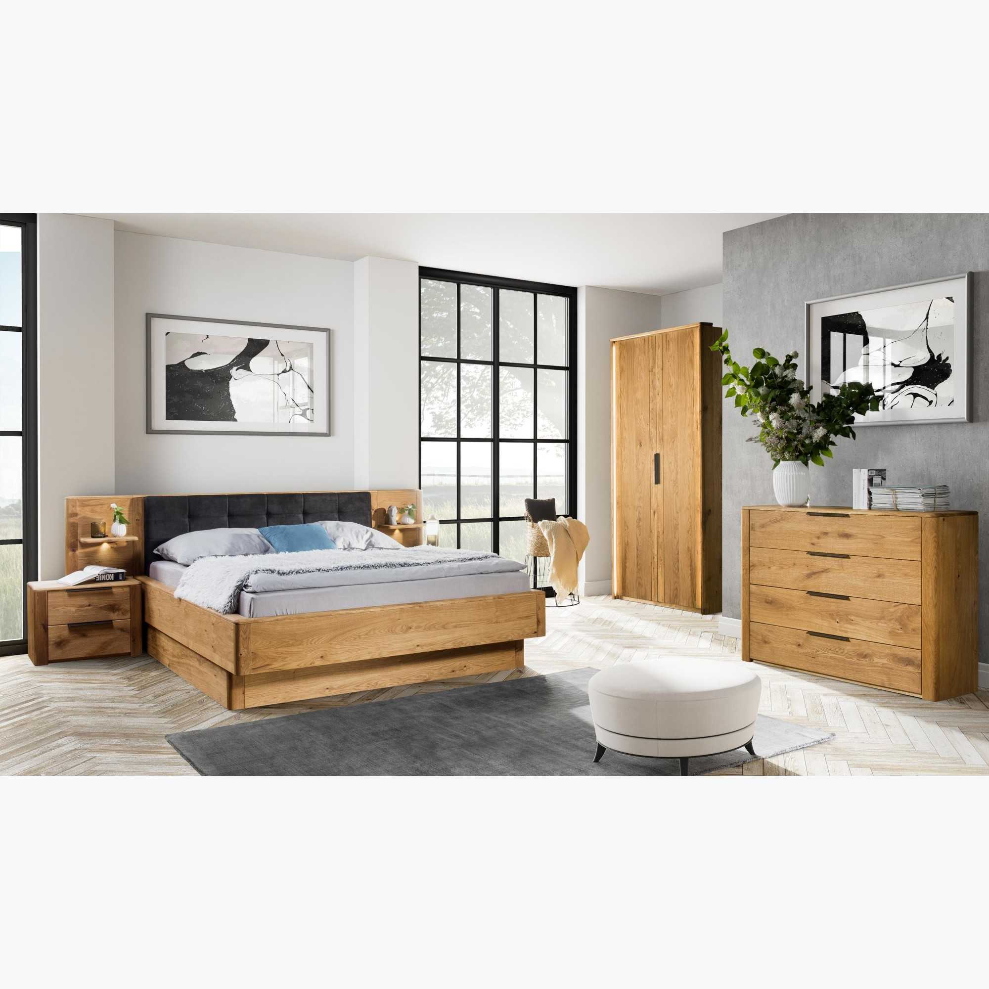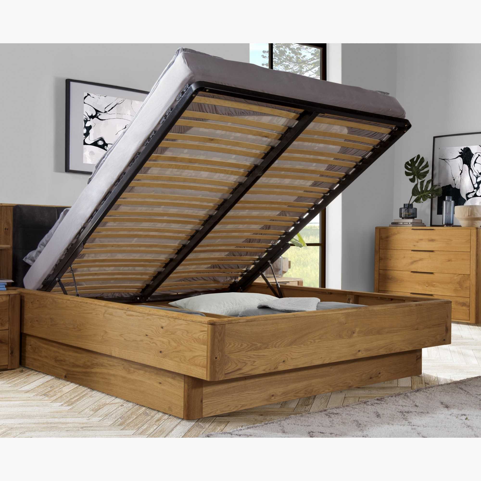 Bett aus massivem Eichenholz mit Stauraum, Texas 200 x 200