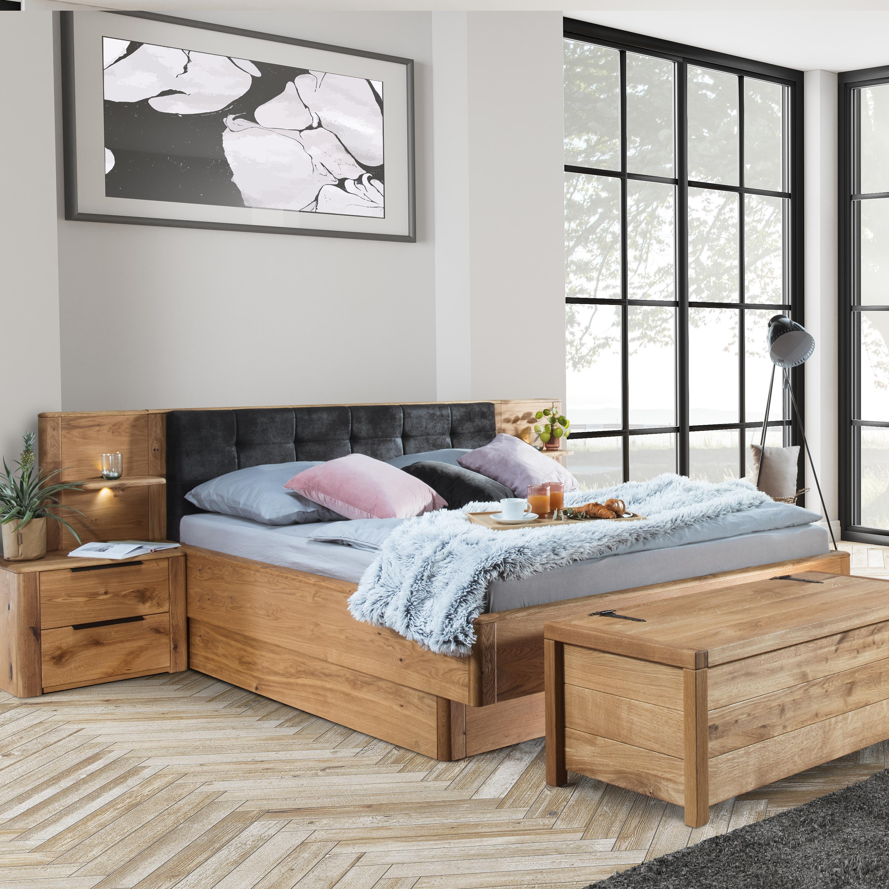 Der Bettpreis beinhaltet keine Nachttische oder Matratze.
