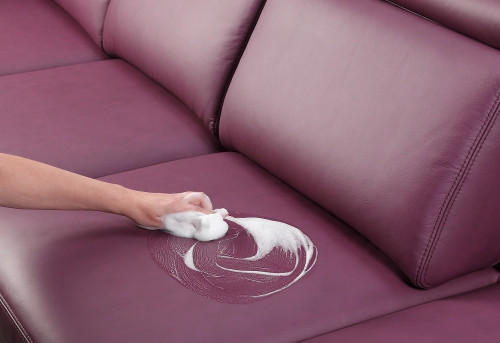 Schaum mit der Flasche des Schaummittels SOFT CLEAN erzeugen und auf einen Schwamm auftragen.