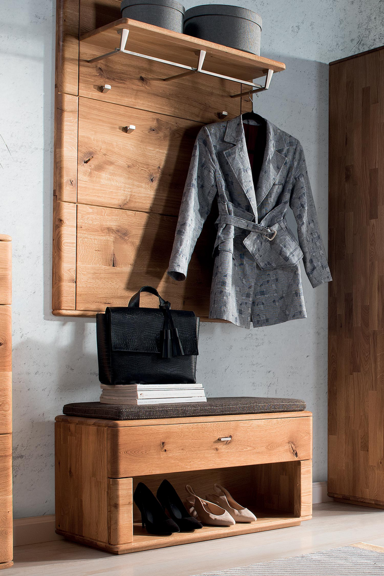 Schuhschrank für den Flur Eiche Massivholz, Texas Typ 60