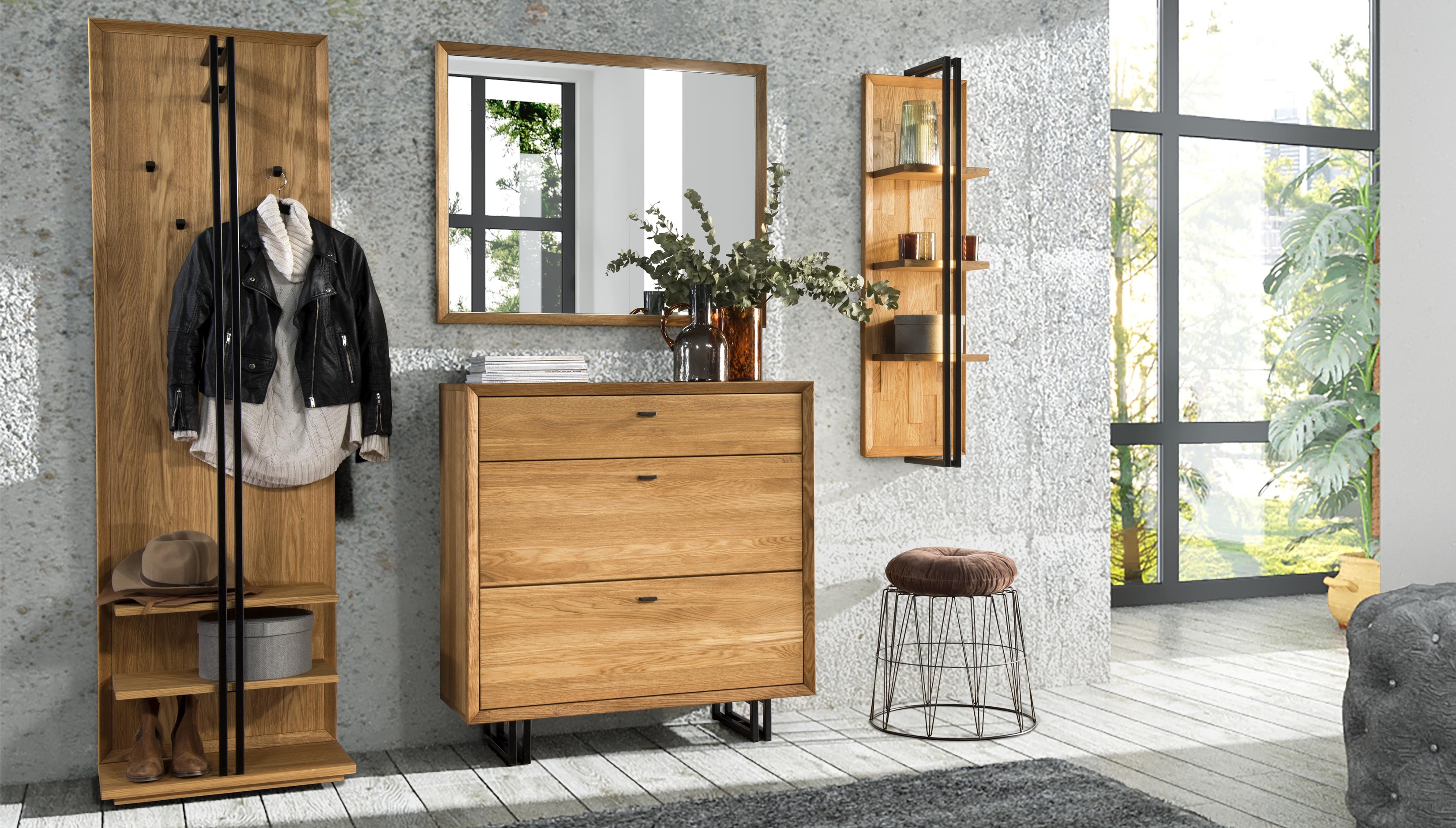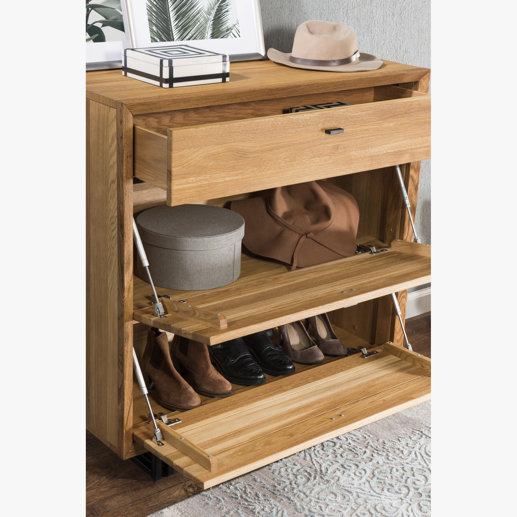 Schuhschrank Eiche 100 cm mit Soft-Close und Schublade