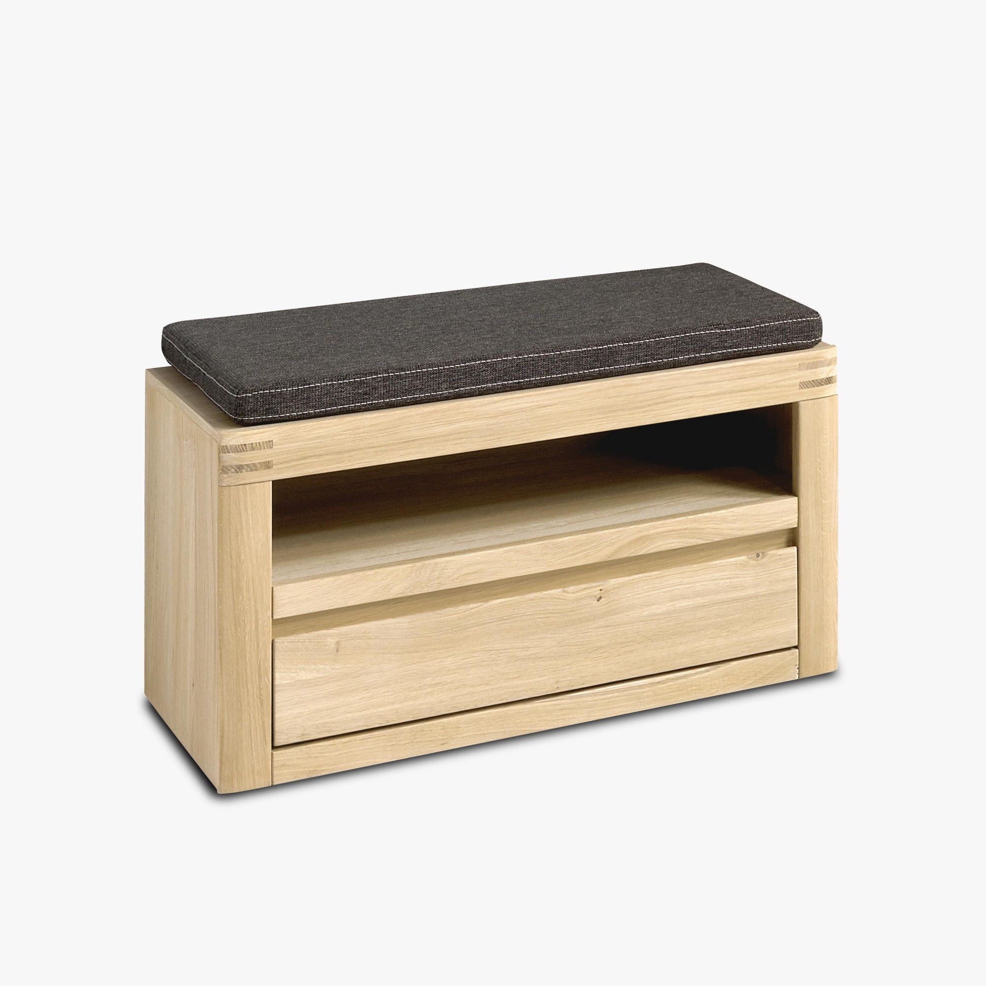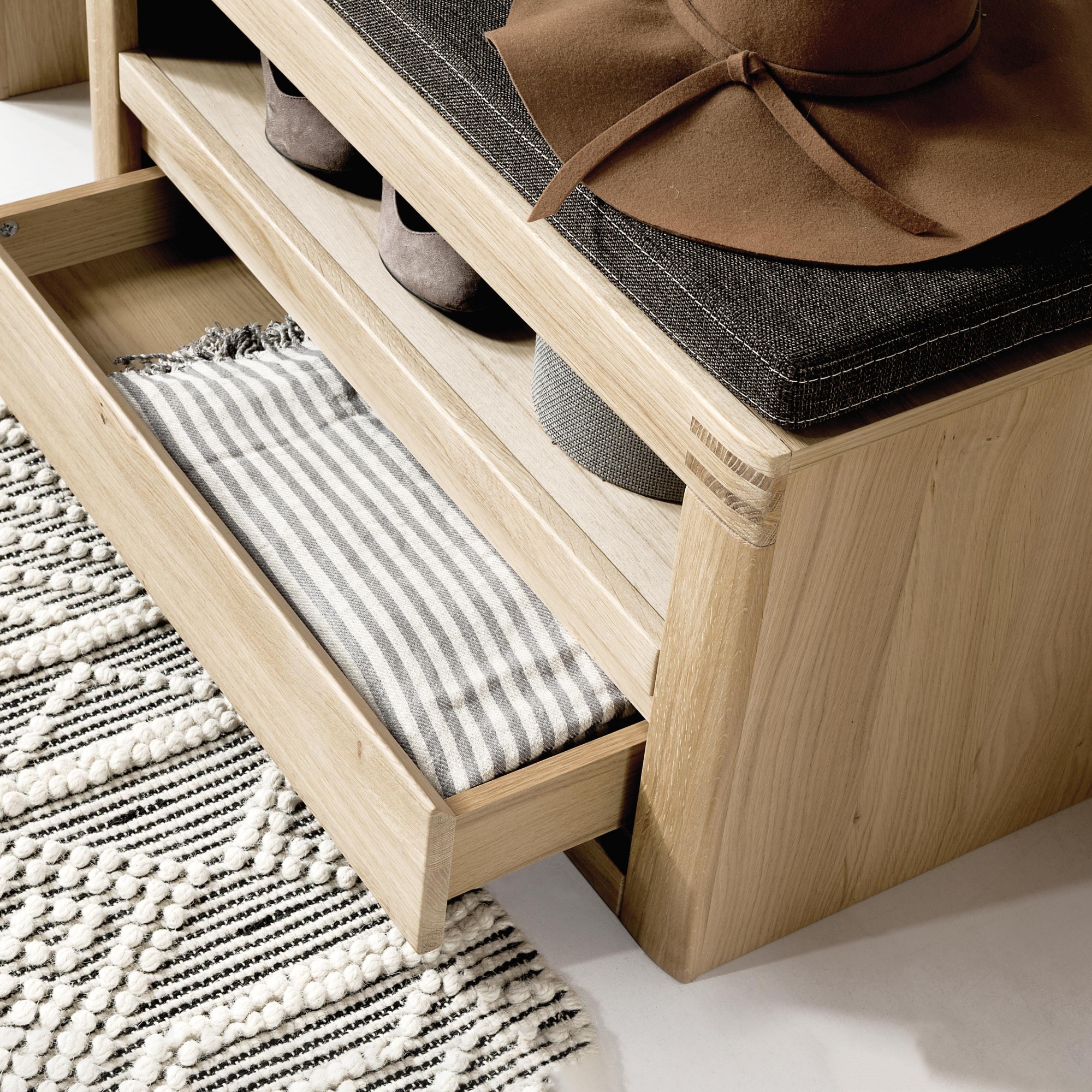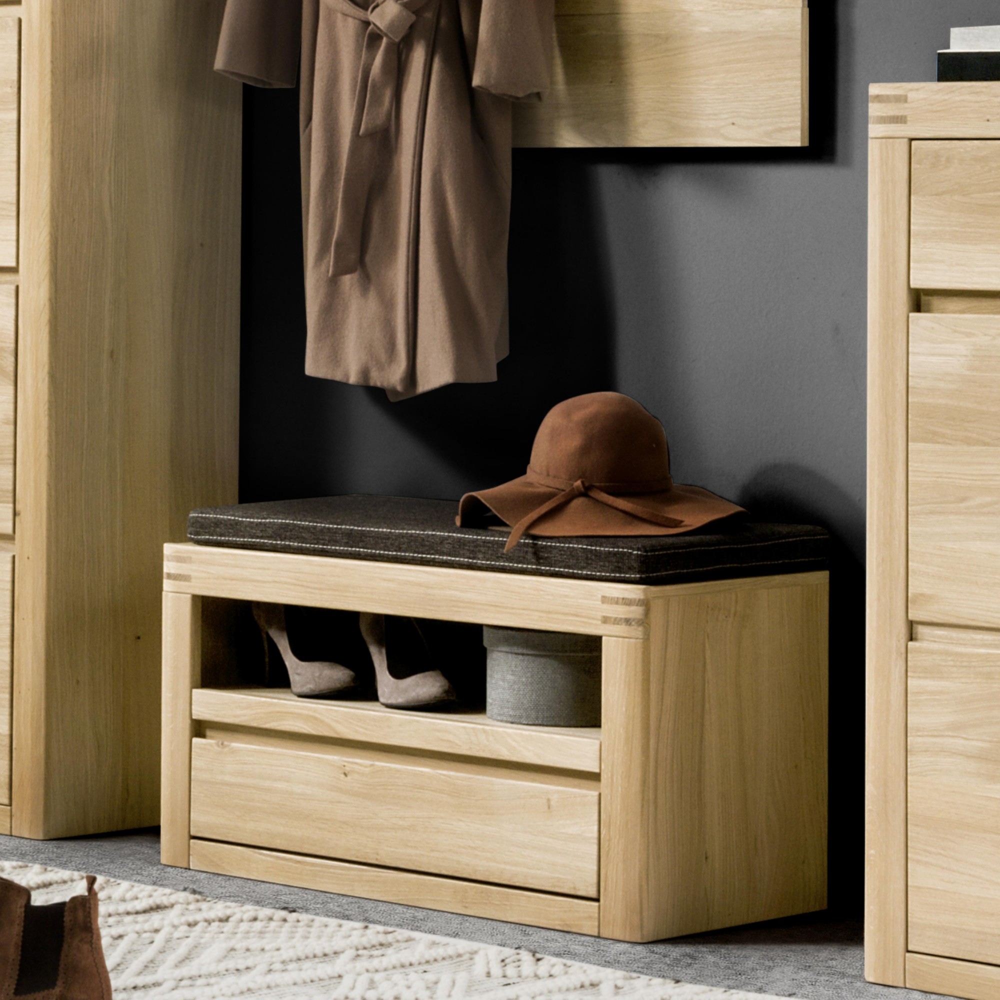 Schuhbank Flur weiße Wildeiche mit Schublade 85 cm