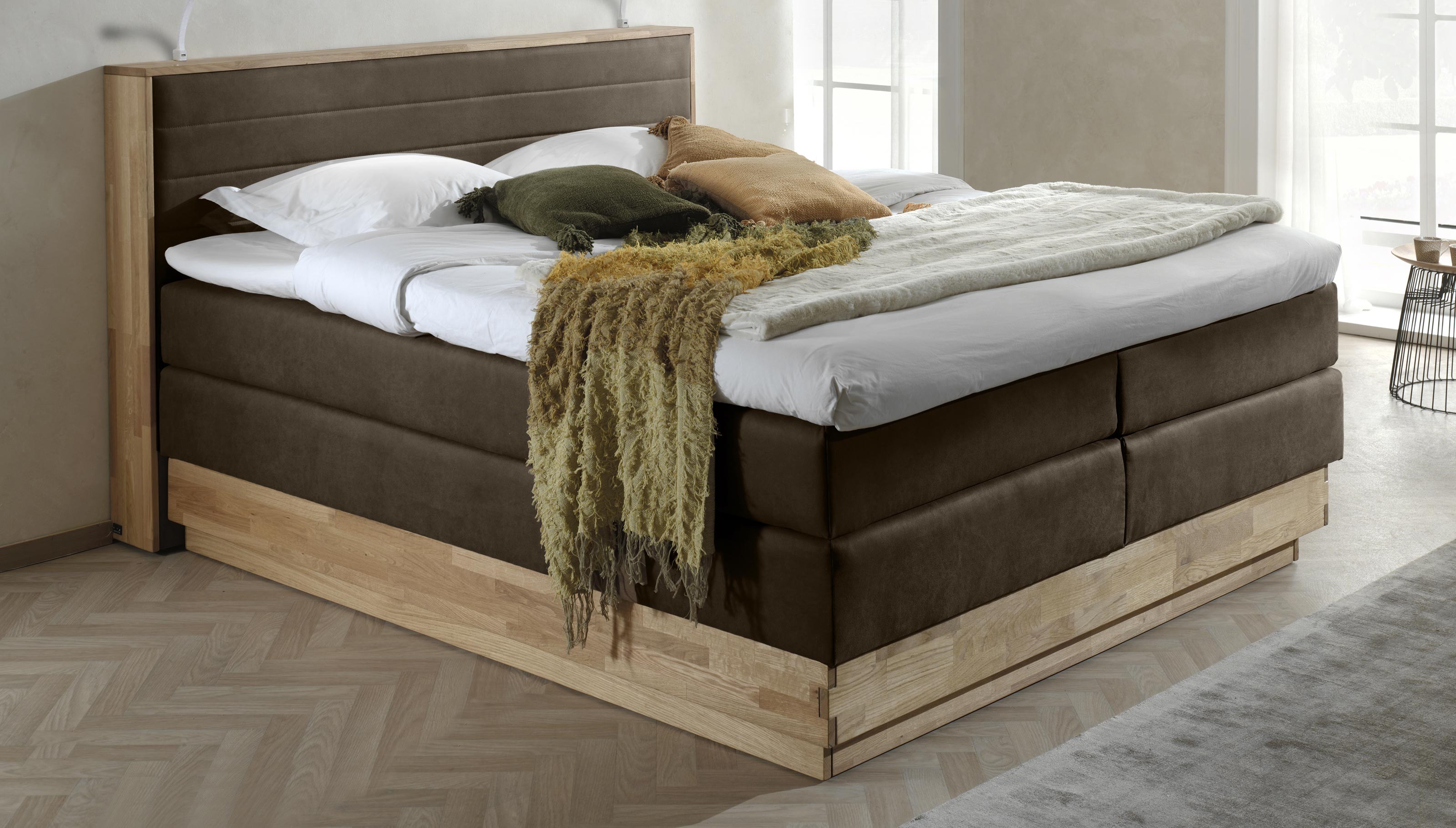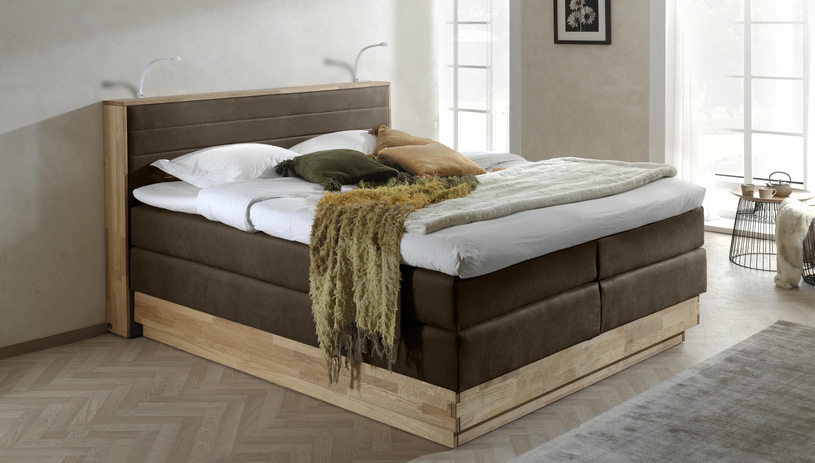 Eichen-Boxspringbett mit Stauraum inklusive Matratzen Moneta 160 x 200