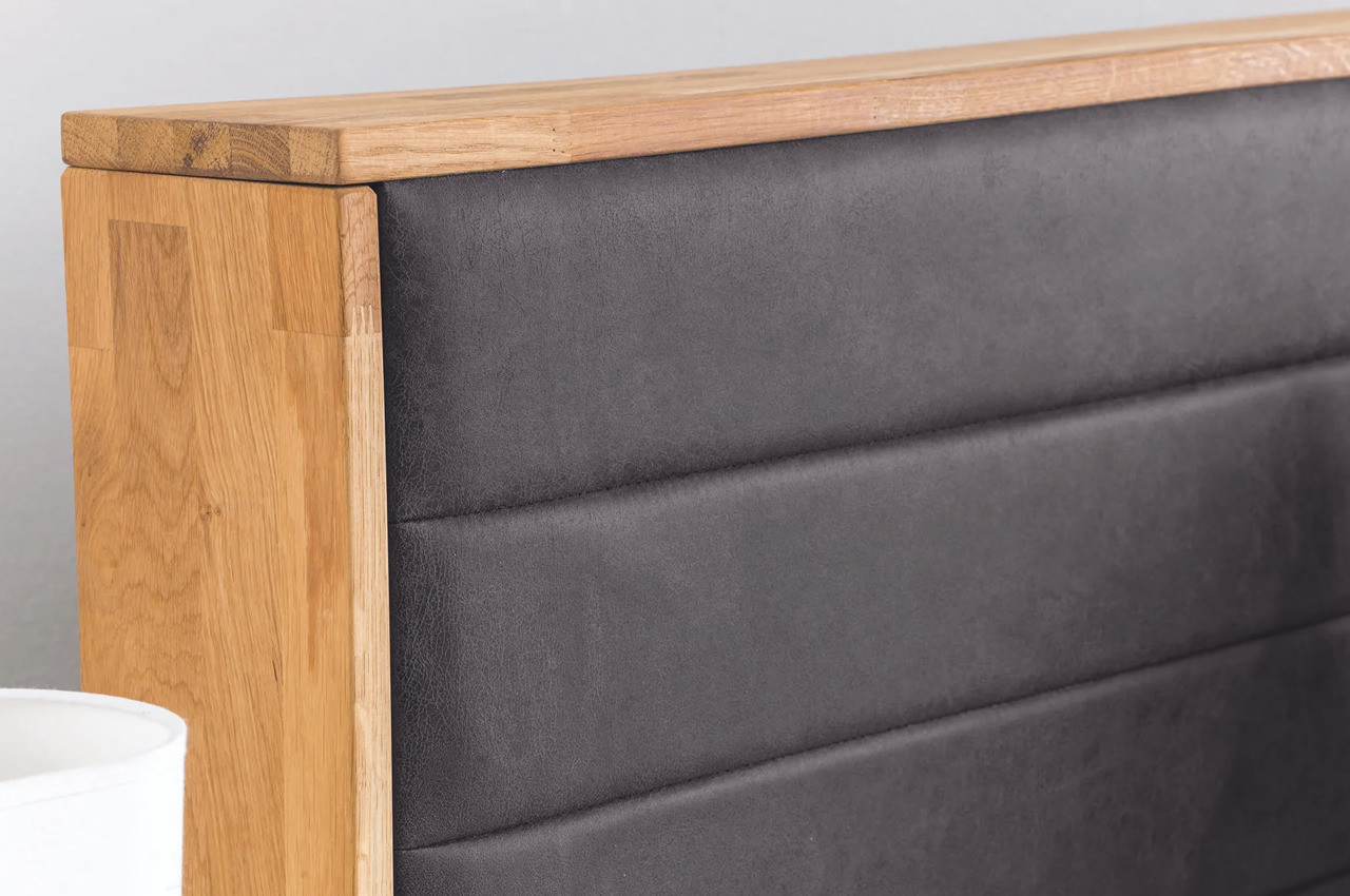 Das Boxspringbett Moneta ist die ideale Wahl für Haushalte, die nach hochwertigem und stilvollem Möbel aus Massivholz zu einem erschwinglichen Preis direkt vom Hersteller suchen. Dieses elegante und modern gestaltete Bett kombiniert geöltes Massiv-Eichenholz, das nicht nur eine lange Lebensdauer gewährleistet, sondern auch ein außergewöhnlich gemütliches und natürliches Aussehen in Ihr Schlafzimmer bringt. Das Kopfteil, das in einen Rahmen aus Massivholz eingesetzt ist, bietet eine robuste Konstruktion, die extrem langlebig und stabil ist, was eine langfristige Nutzung ohne Verlust von Ästhetik und Funktionalität garantiert.