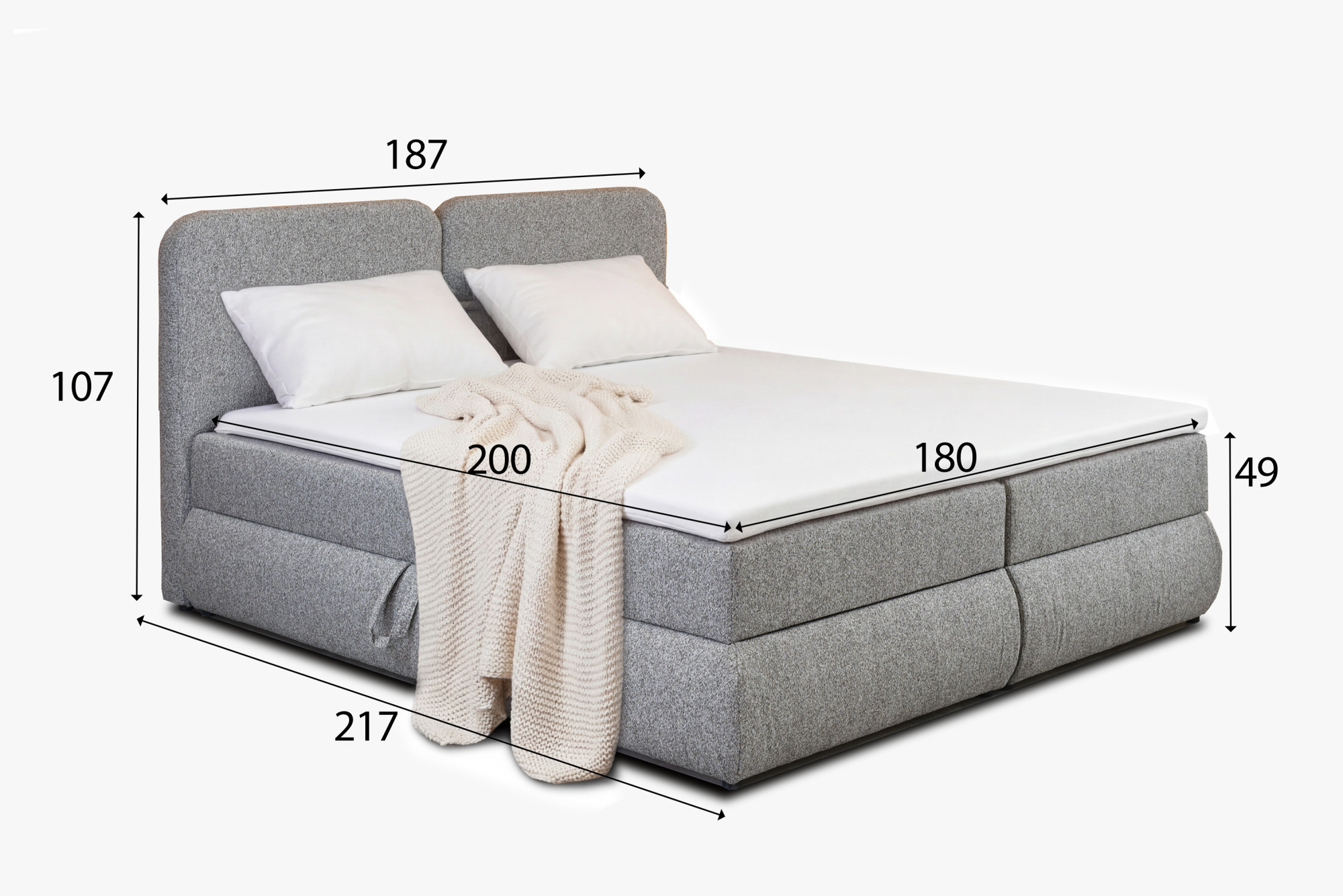 - Bettmaß: 180 x 200 cm