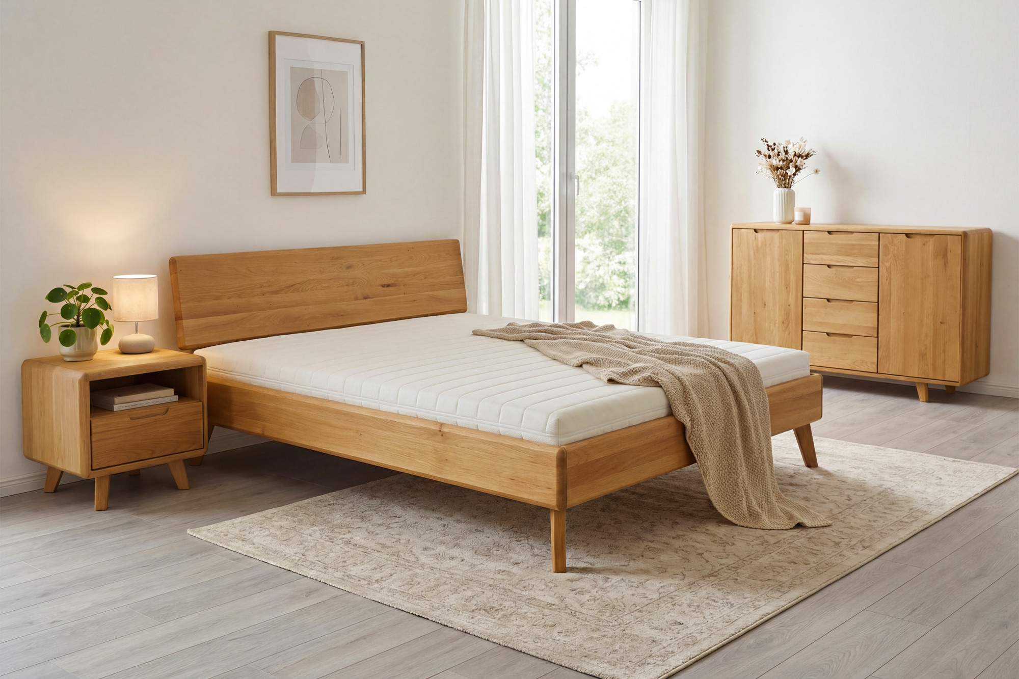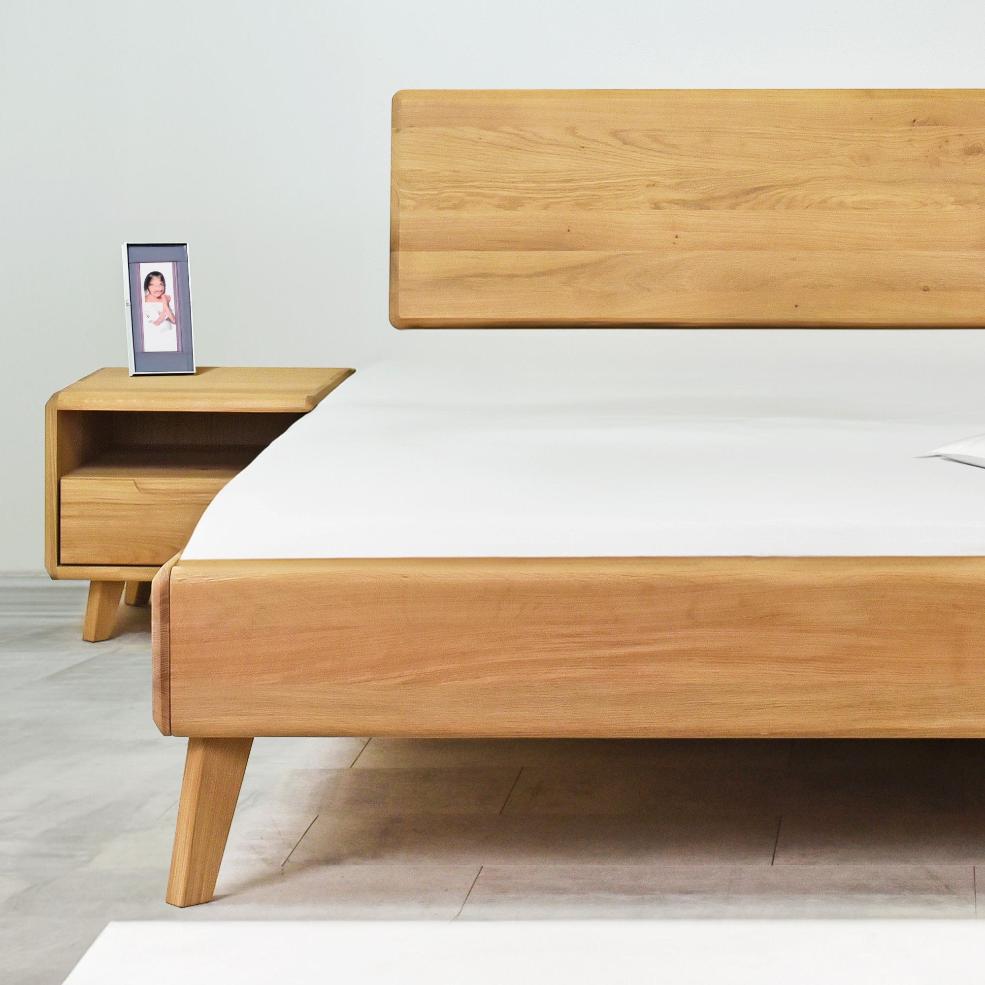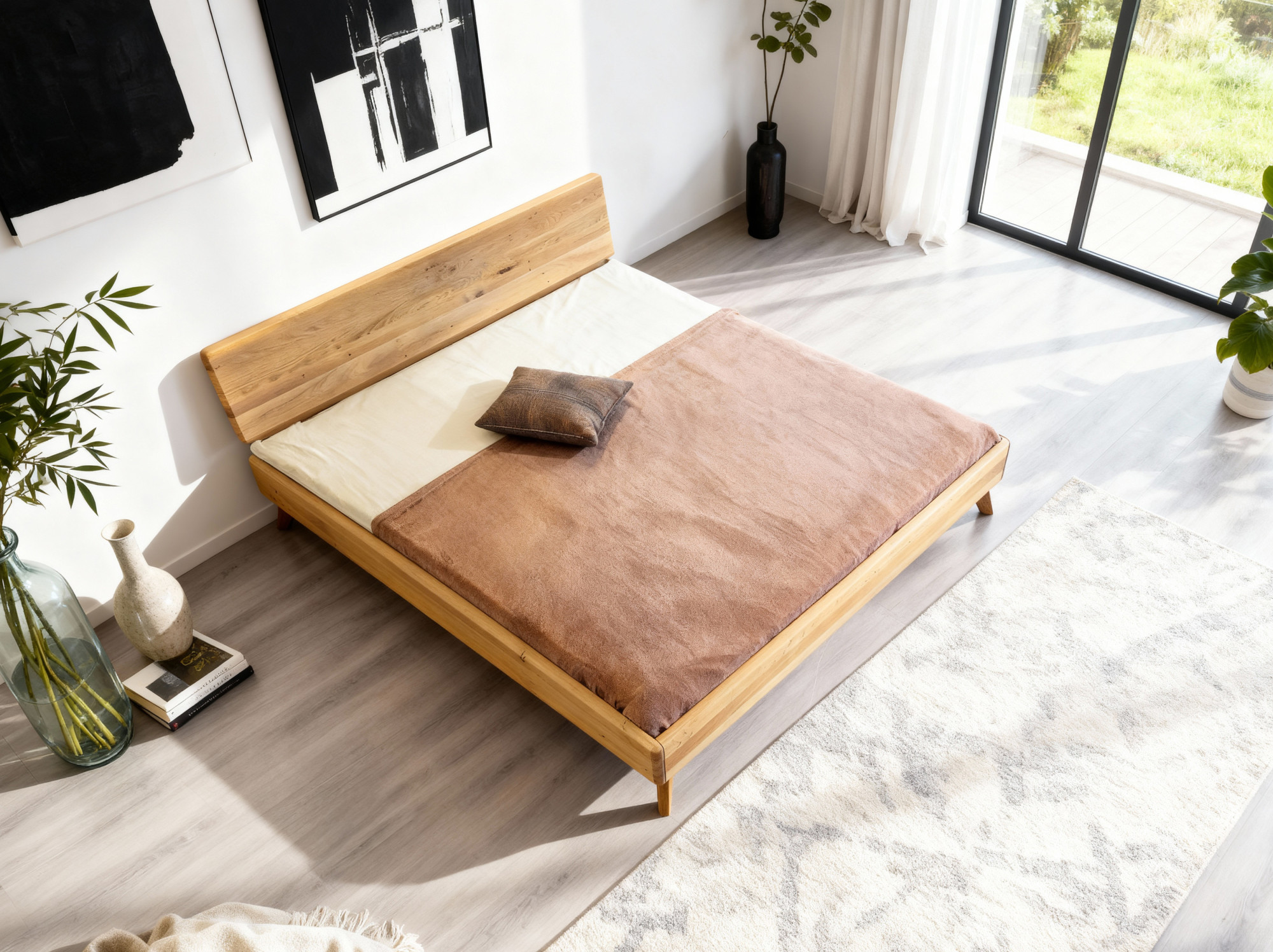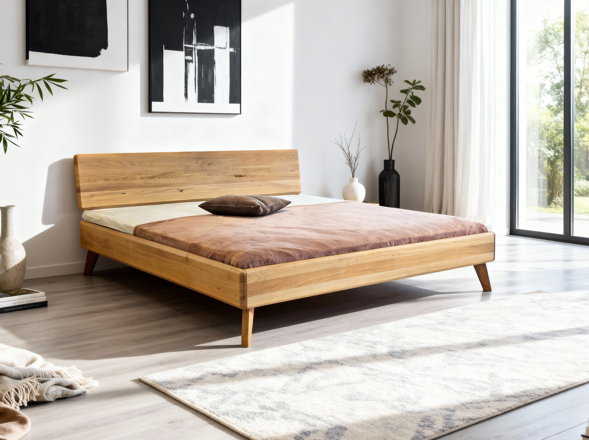 Ehebett aus Eiche Natur 180 x 200 cm – Massivholz Doppelbett im skandinavischen Stil
