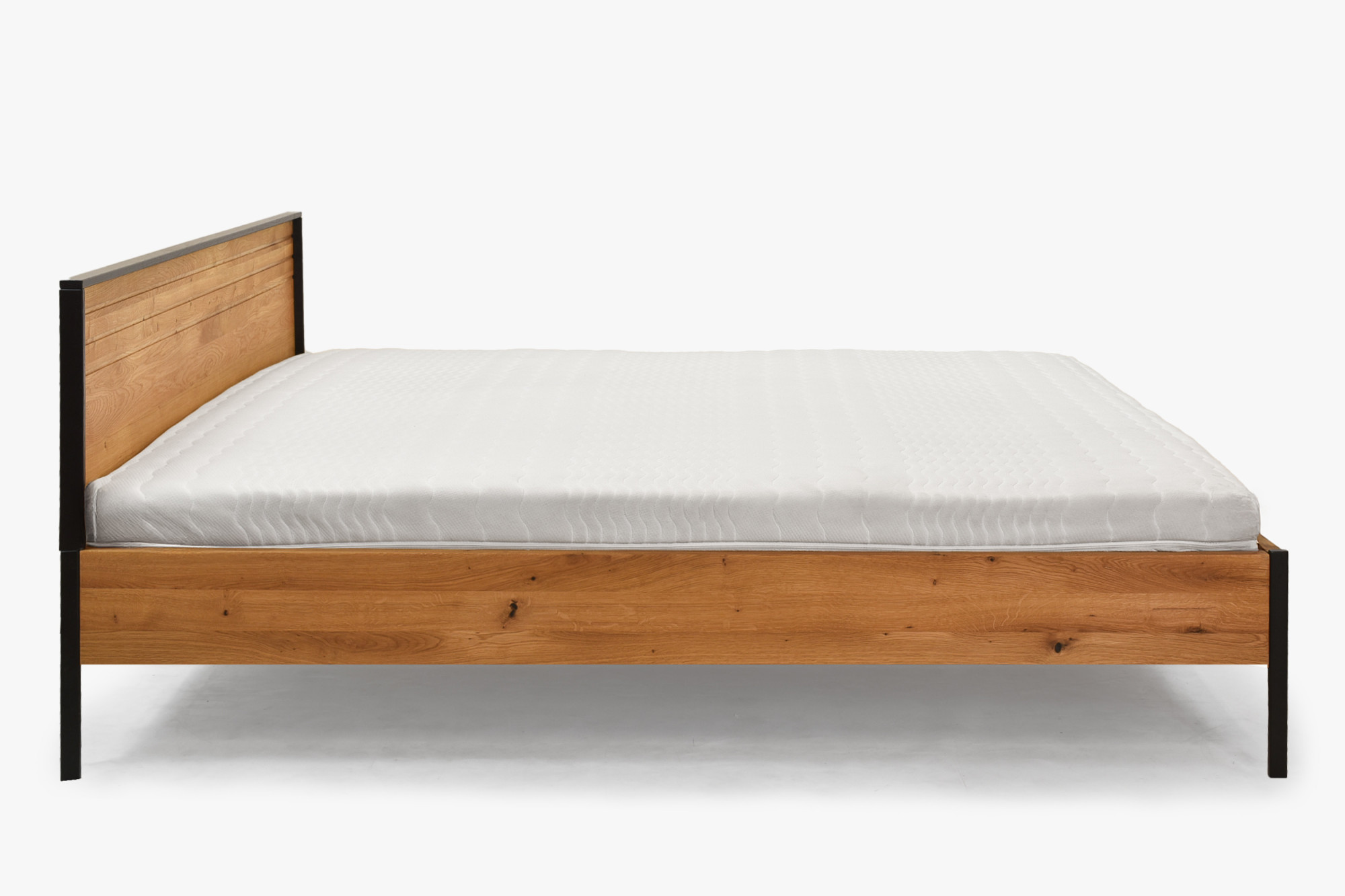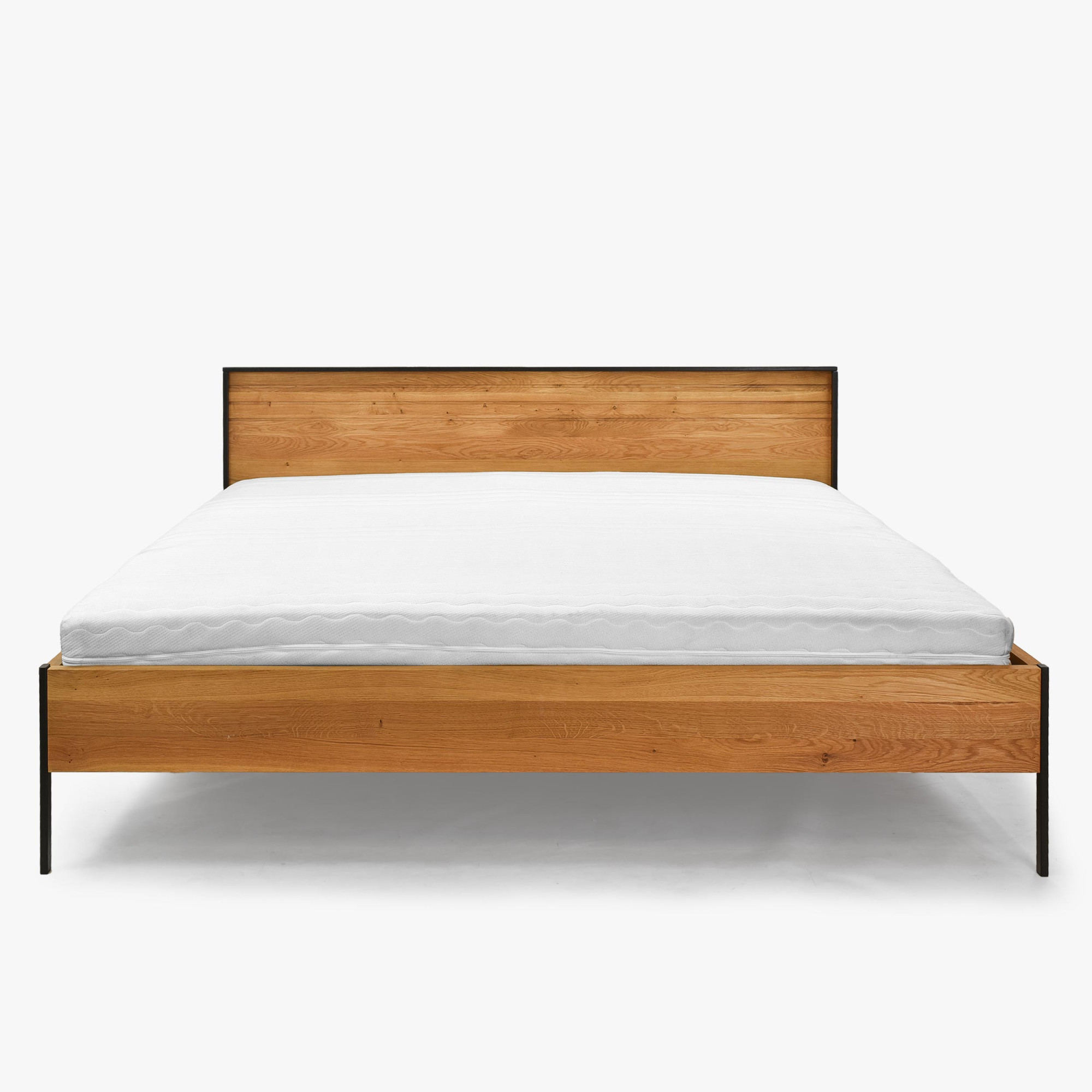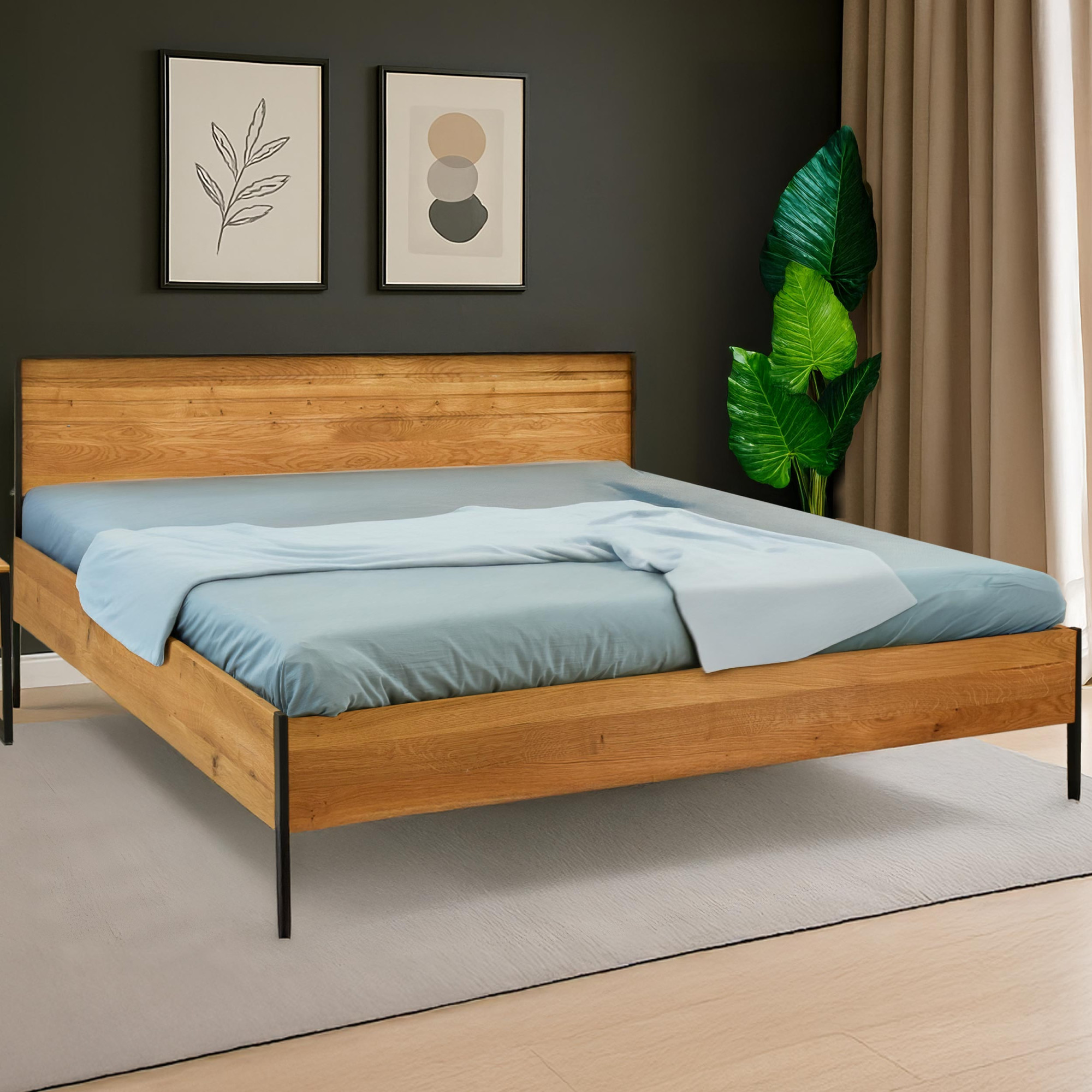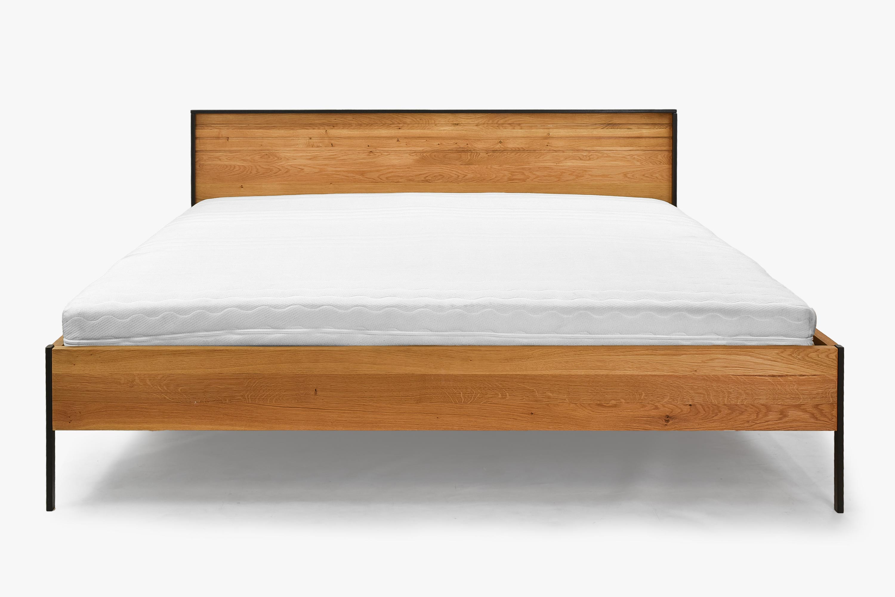 Doppelbett Eiche massiv 180x200 cm mit Metallfüßen schwarz