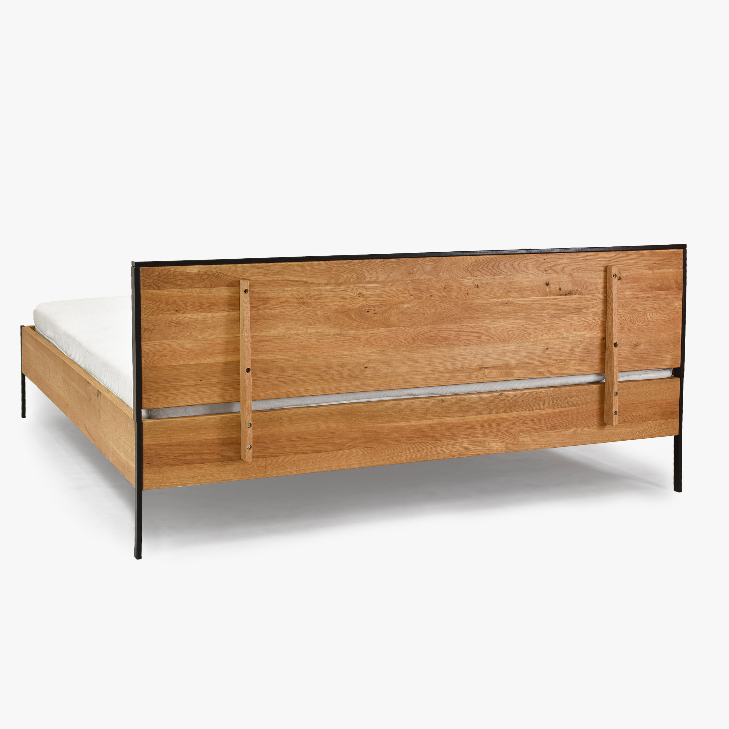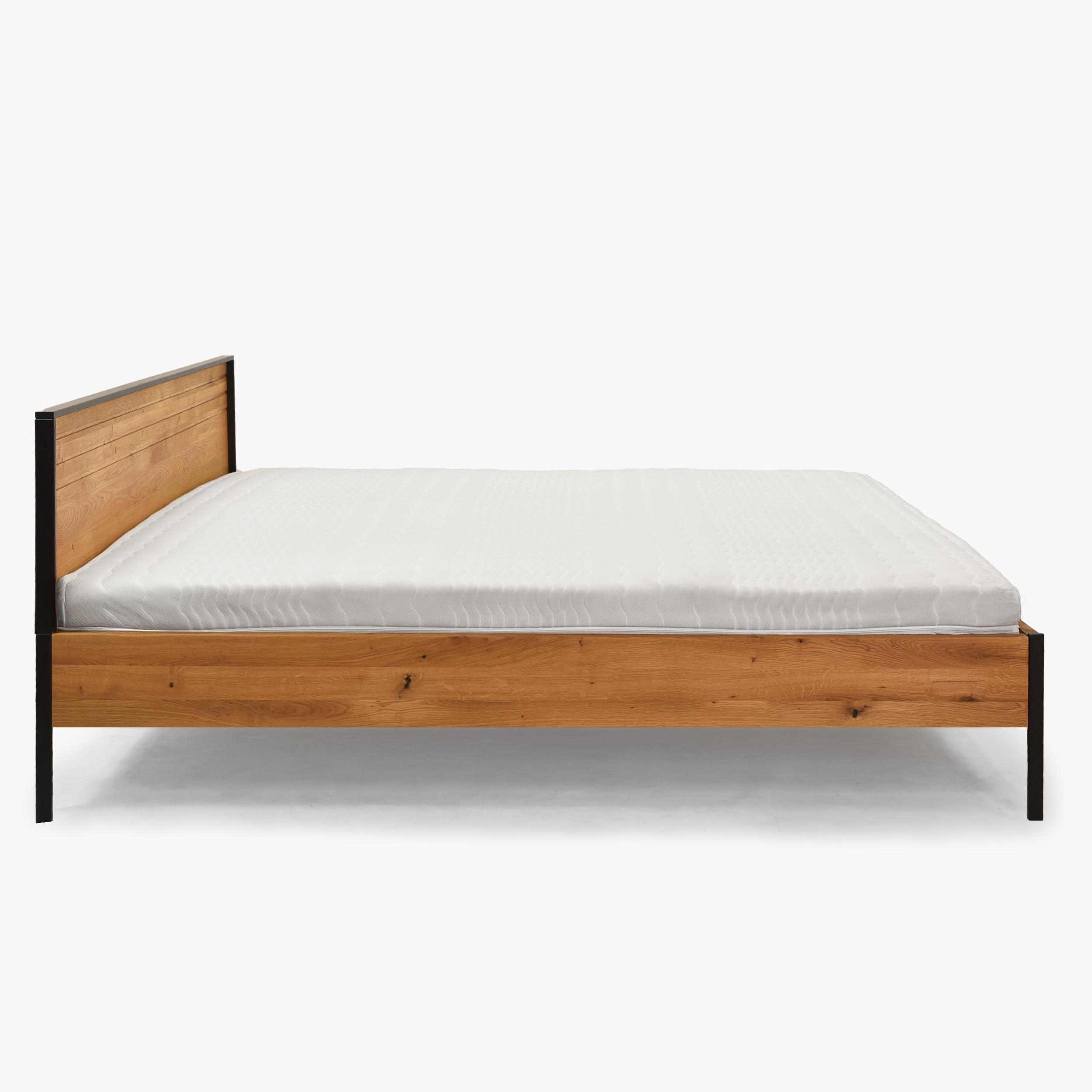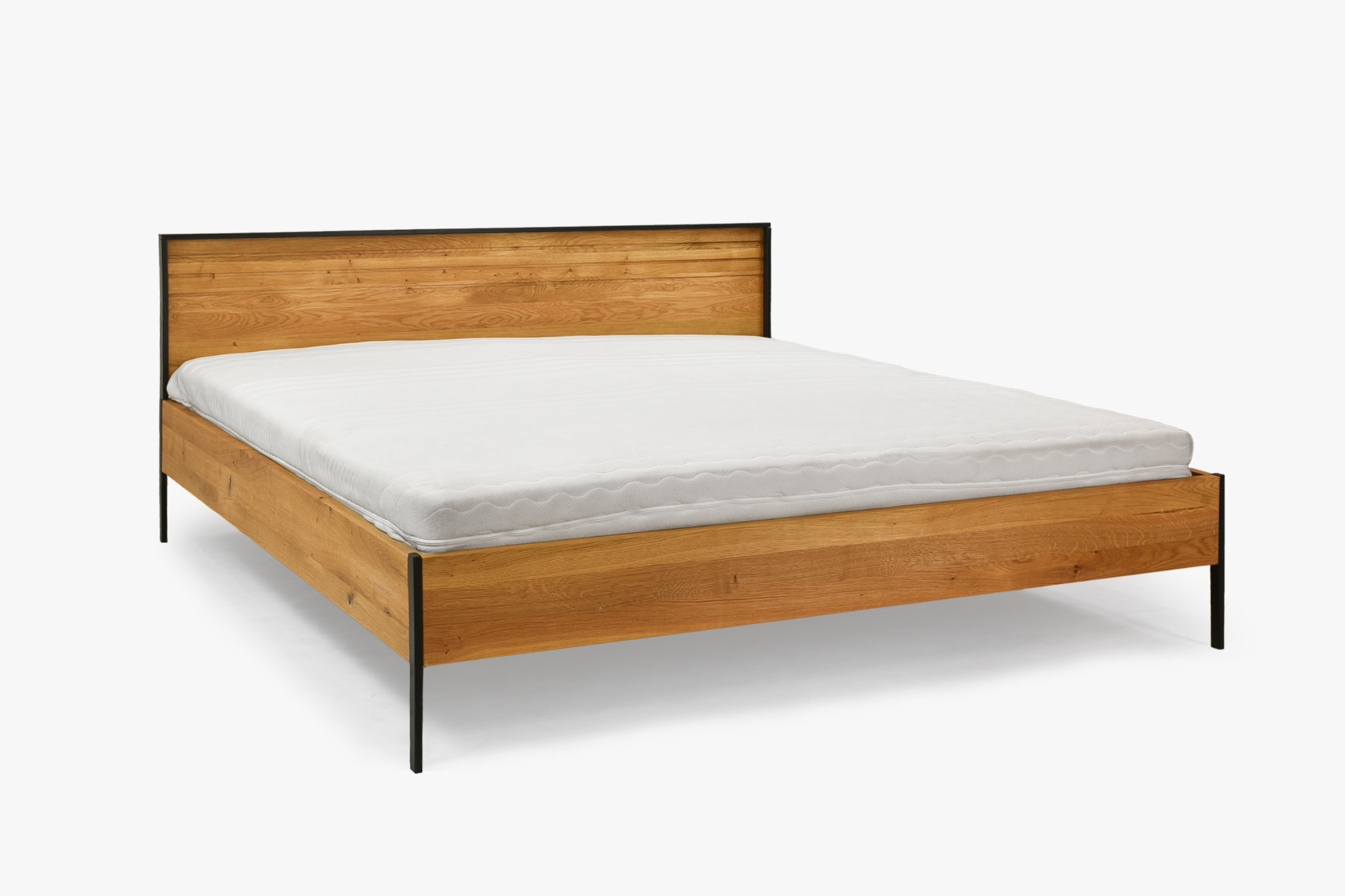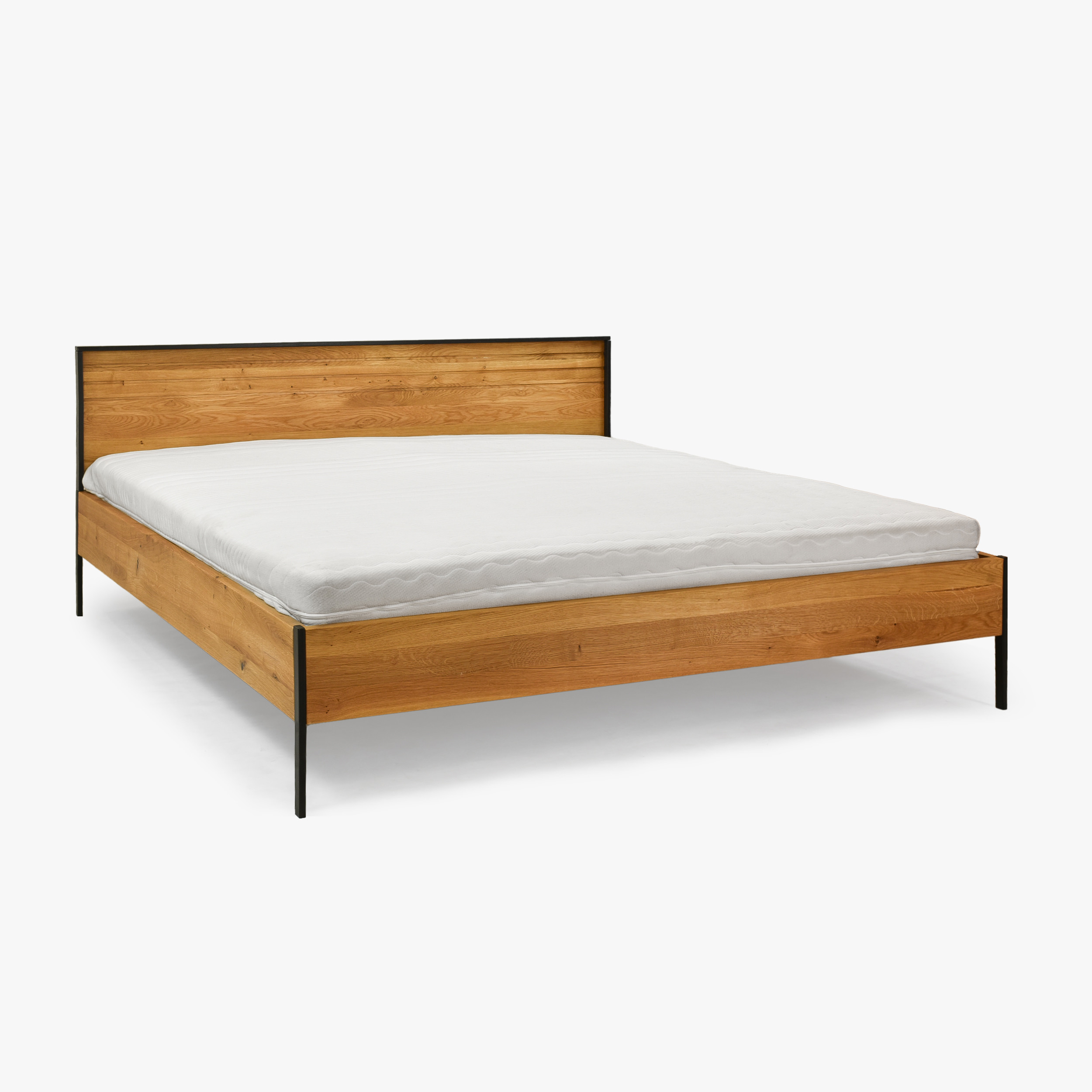 Doppelbett Eiche massiv 180x200 cm mit Metallfüßen schwarz