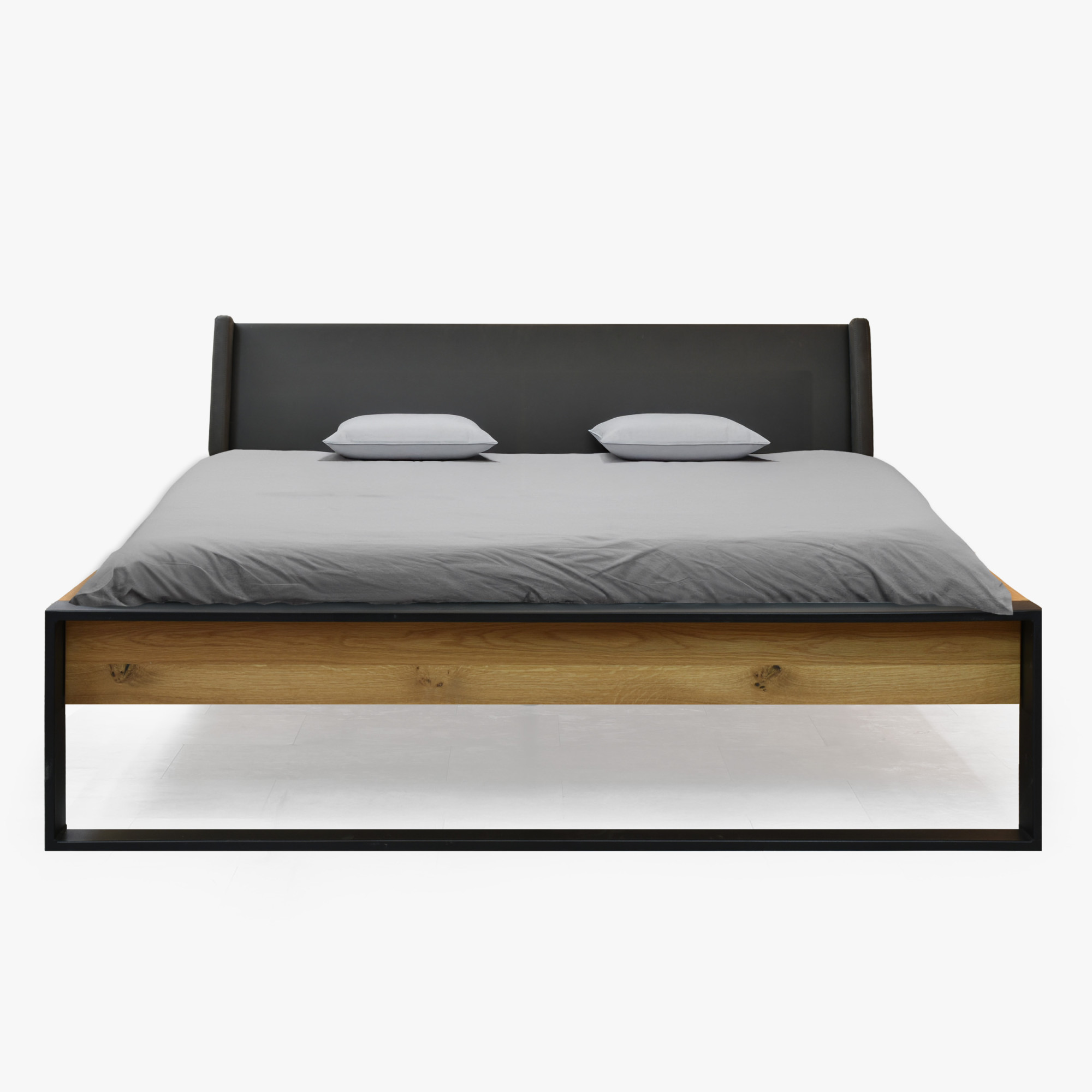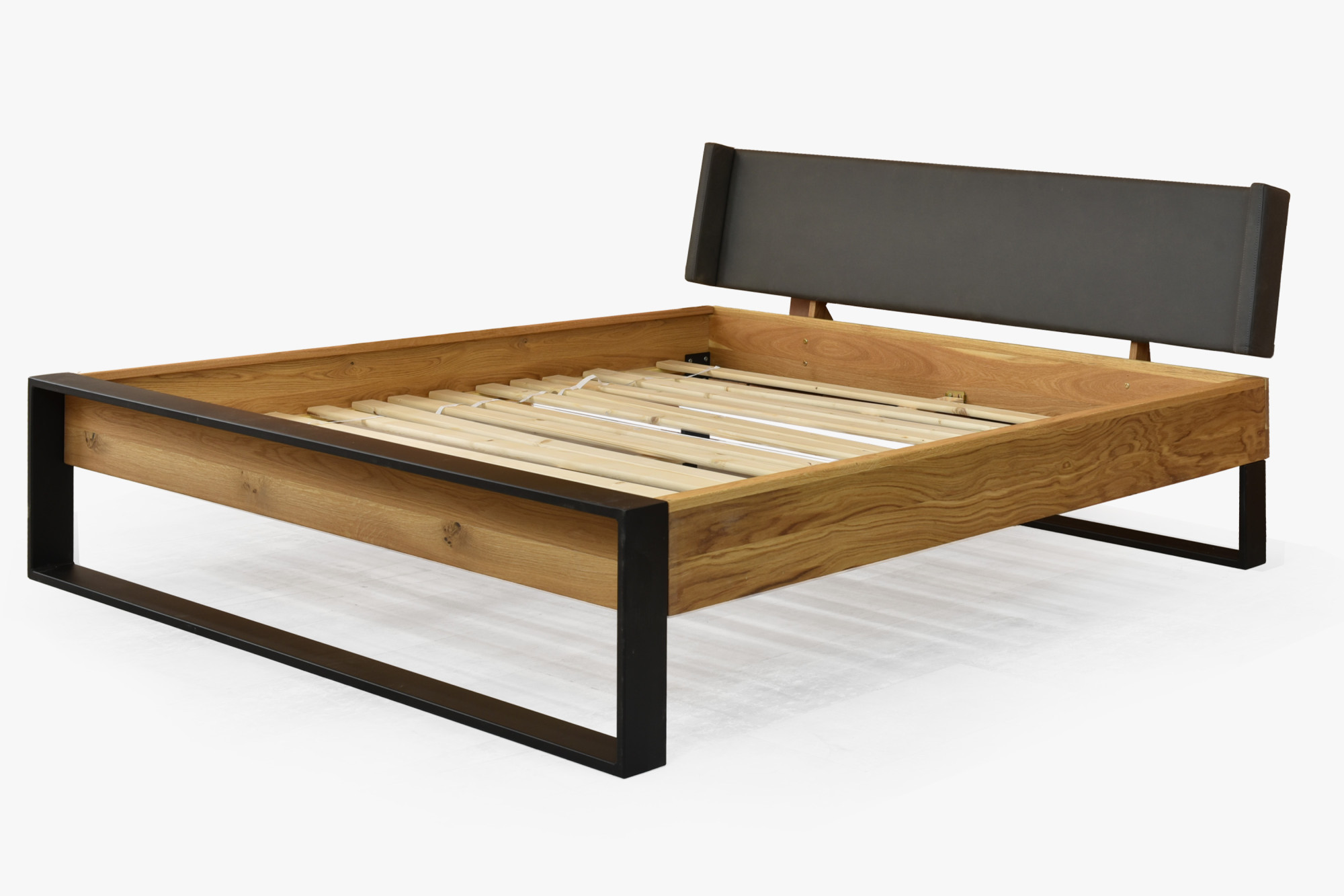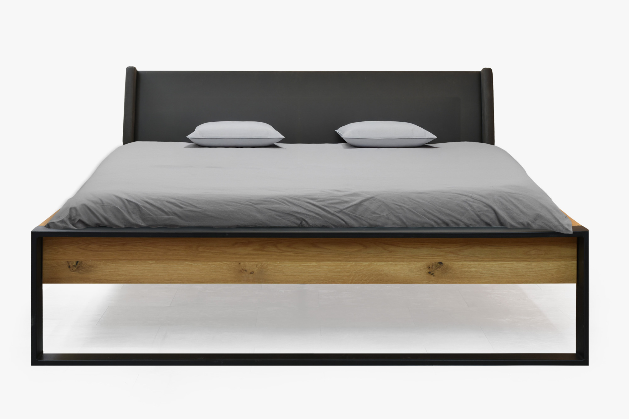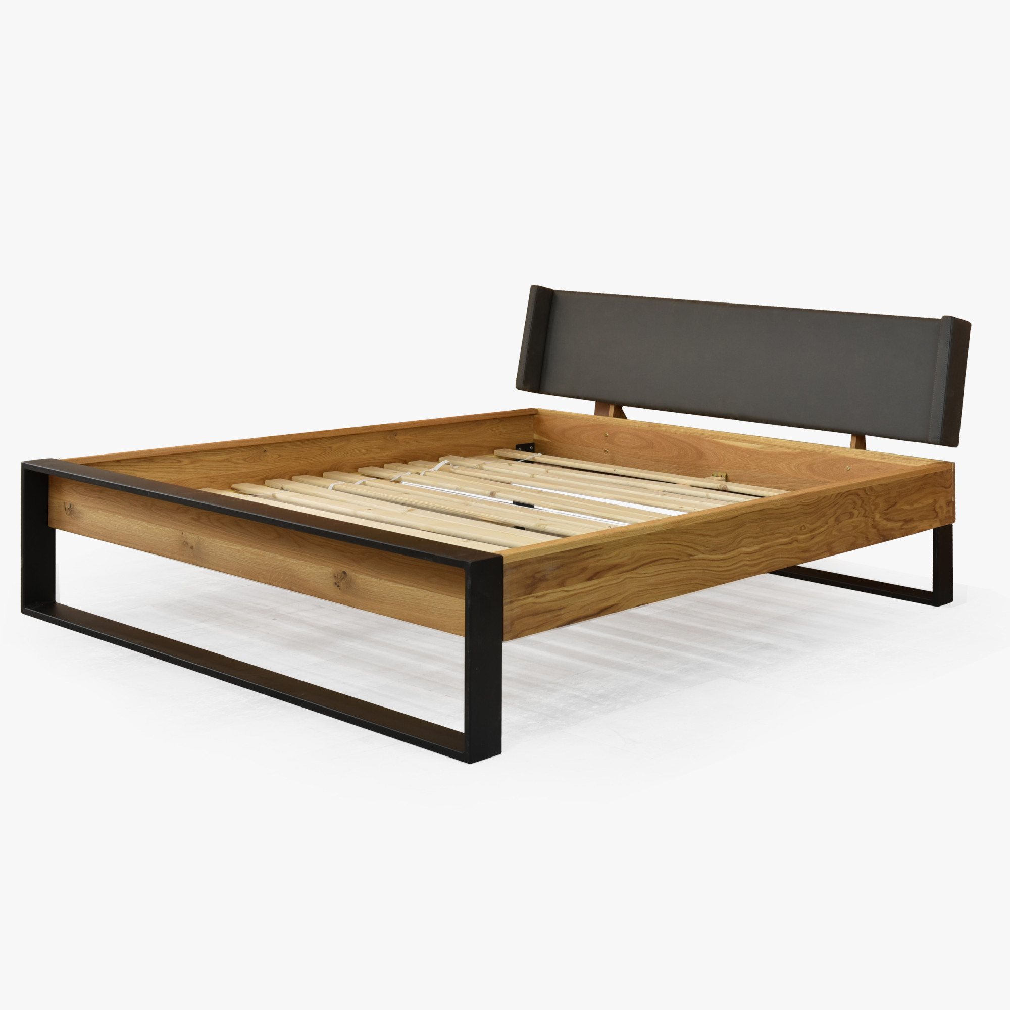 Doppelbett Eiche massiv 180x200 cm mit mattschwarzen