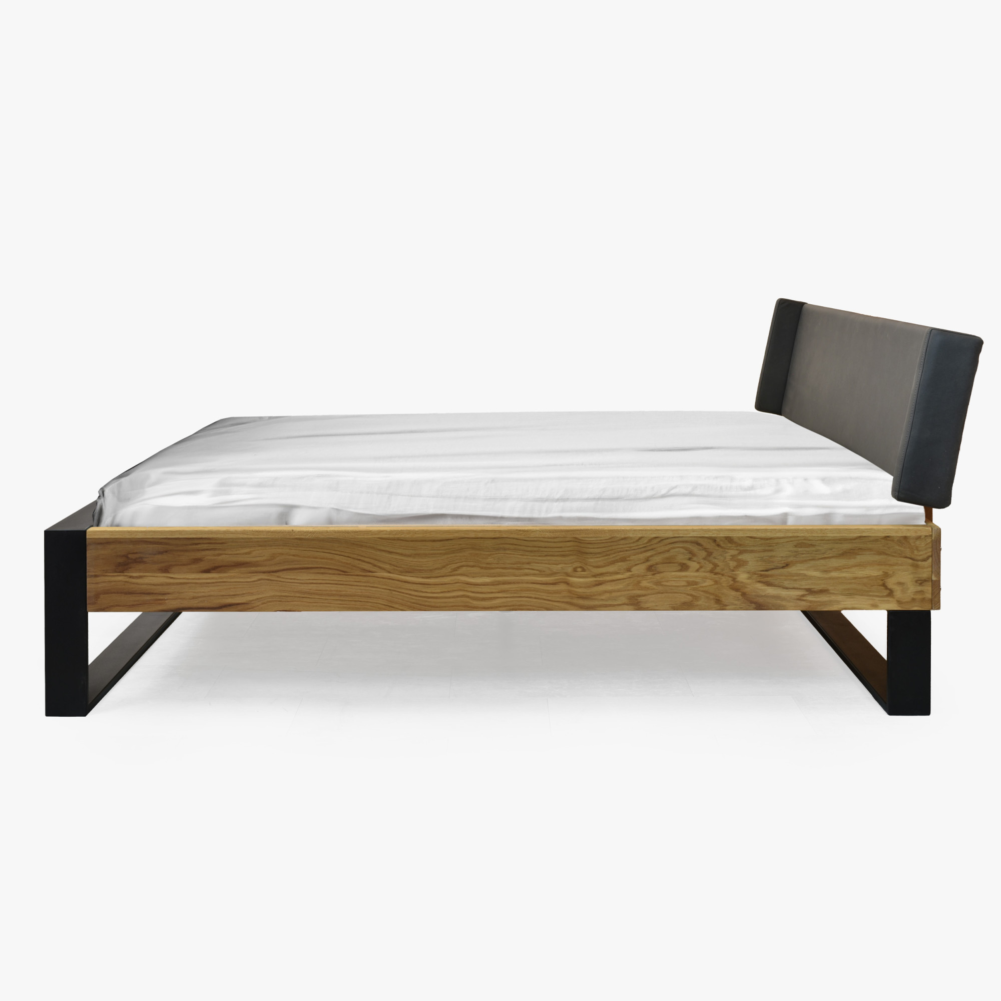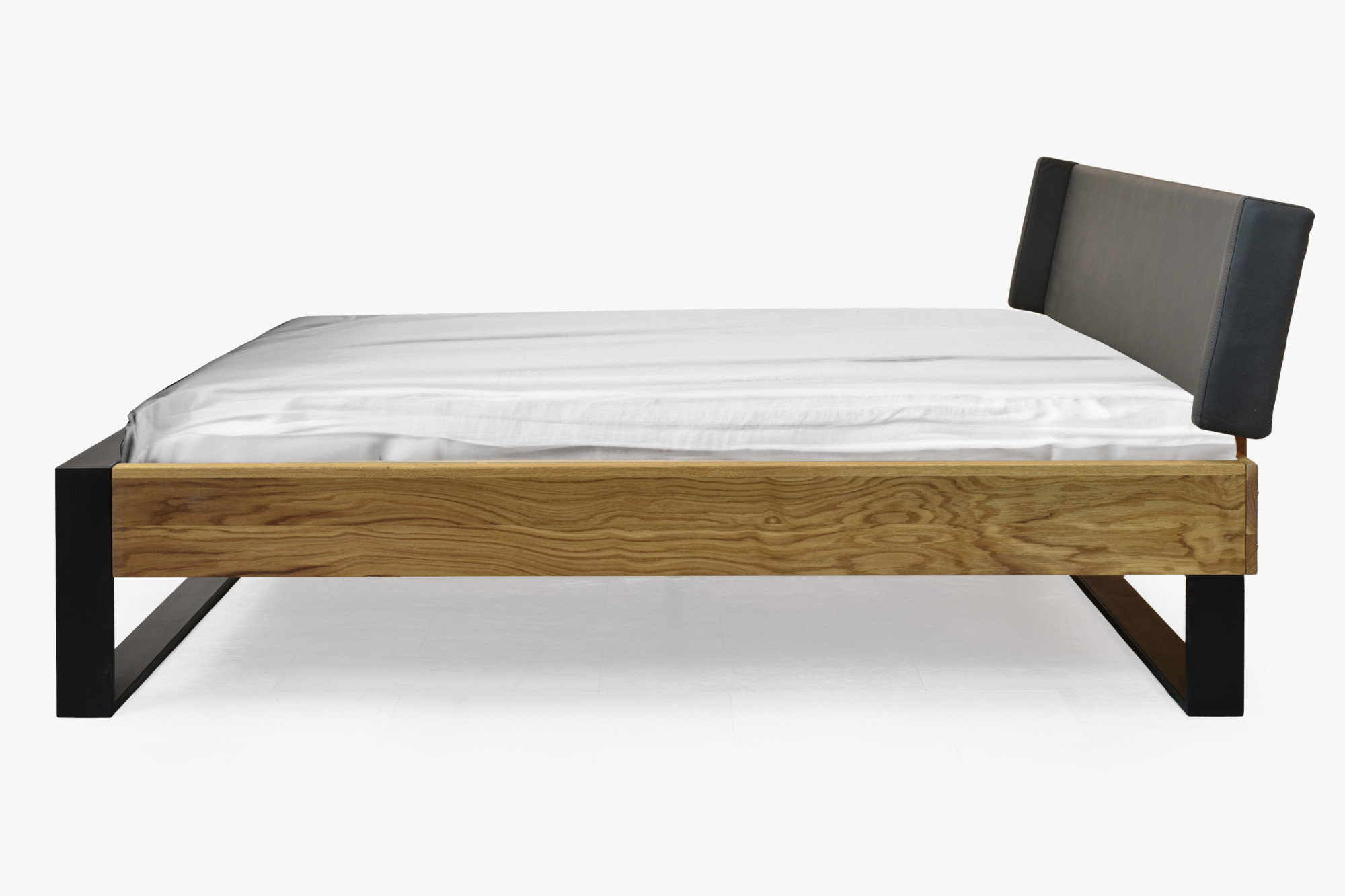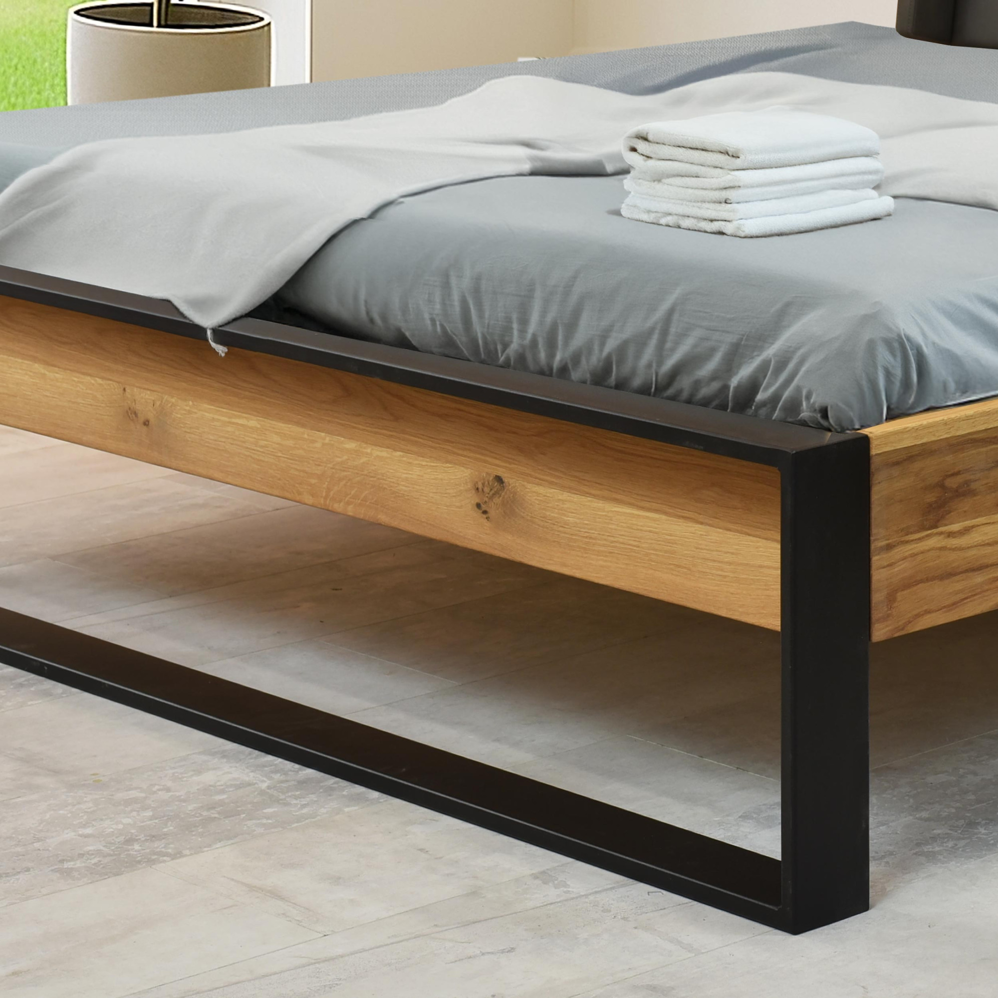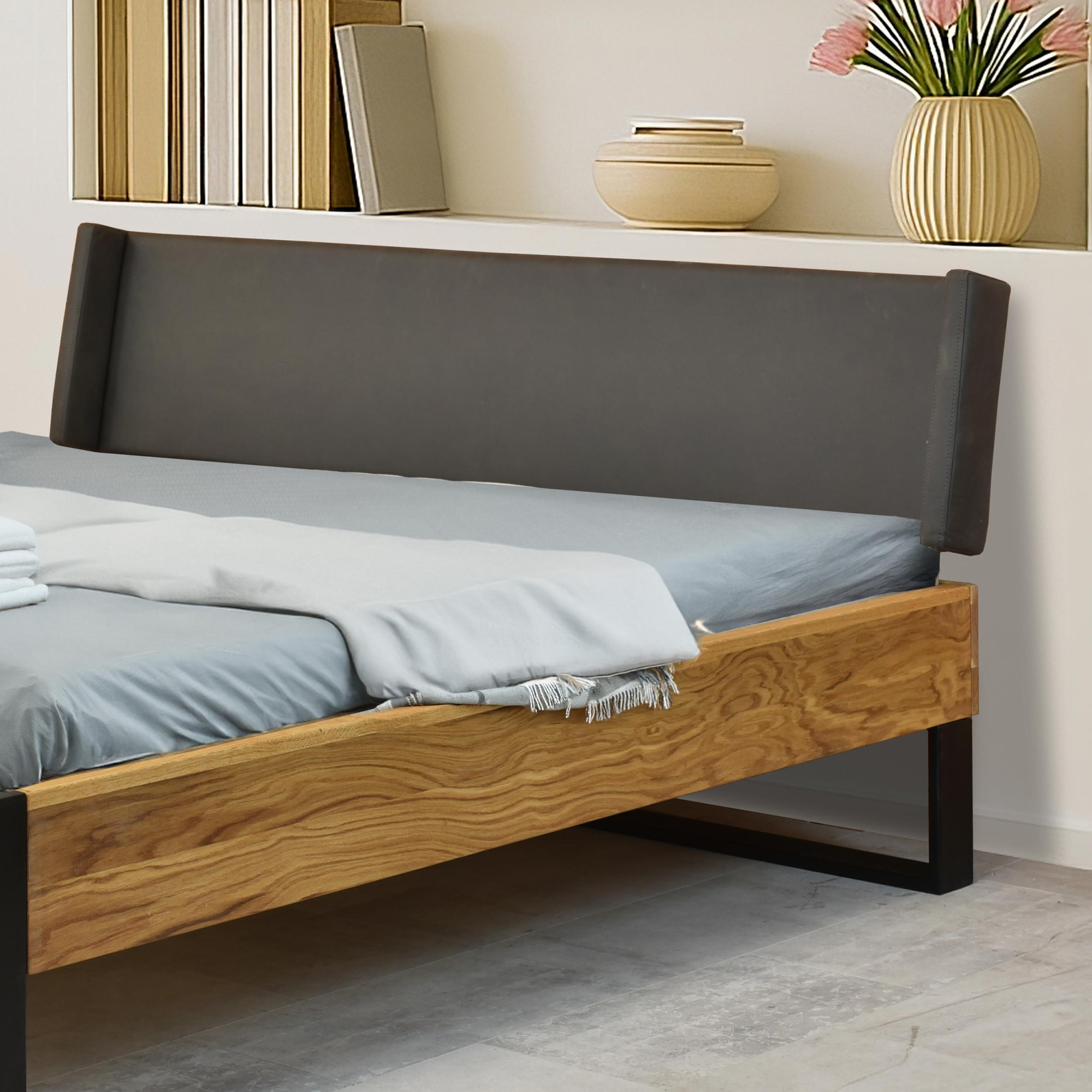 Doppelbett Eiche massiv 180x200 cm mit mattschwarzen