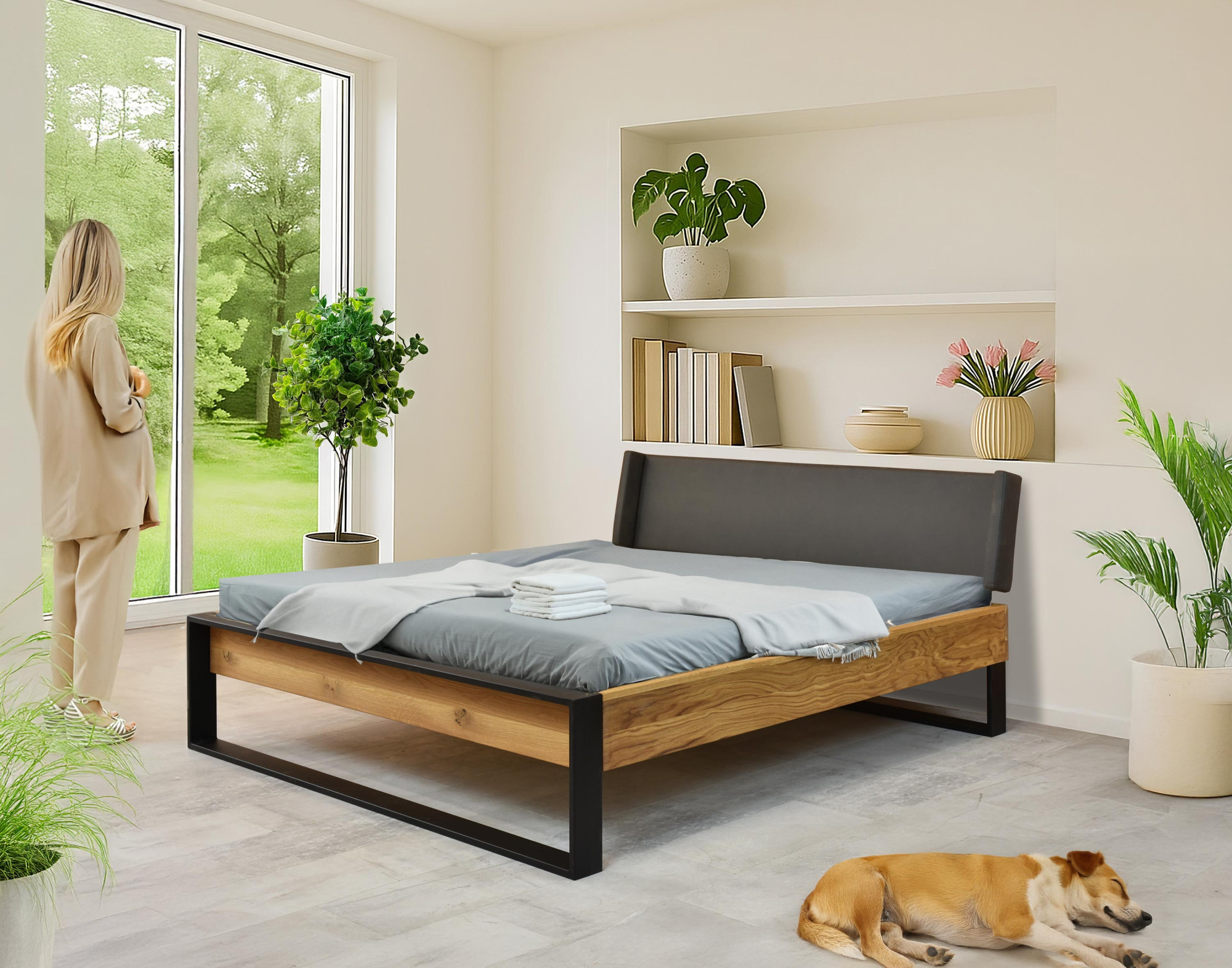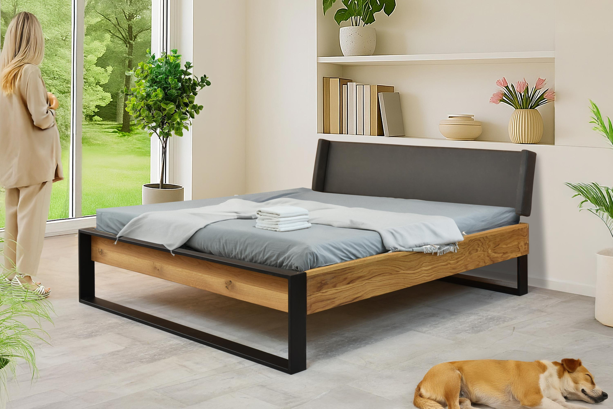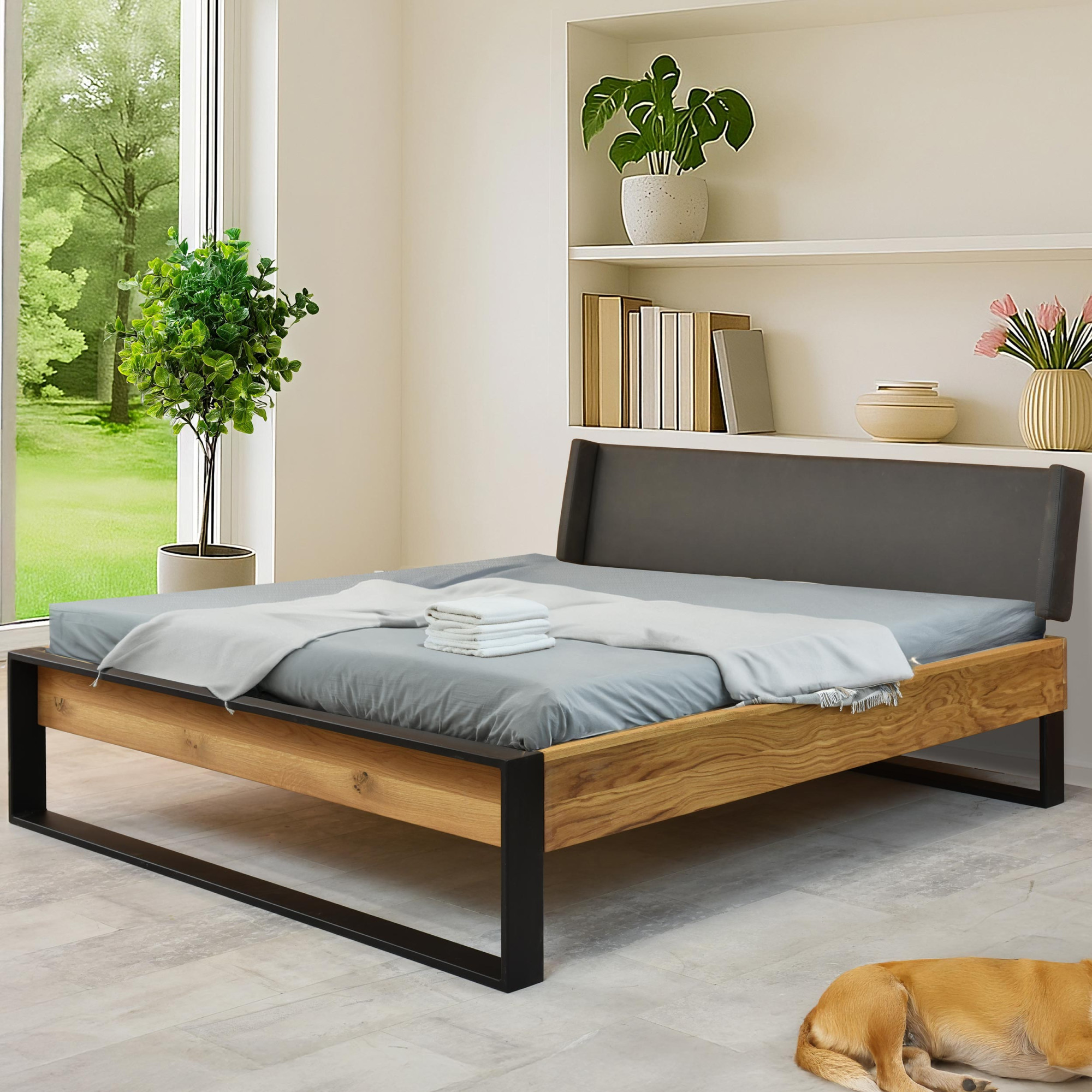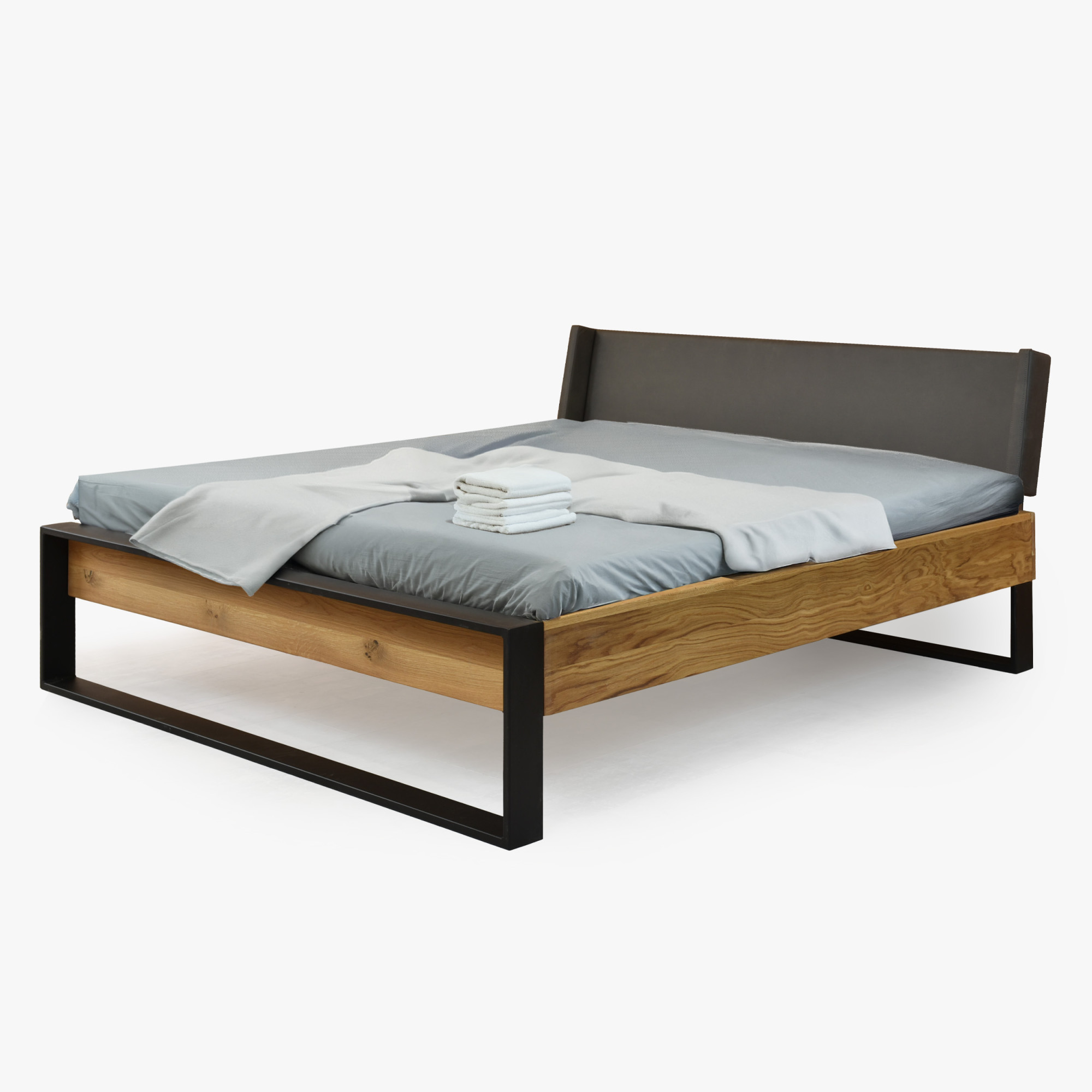 Doppelbett aus Eiche mit Metallbeinen 180 x 200 cm