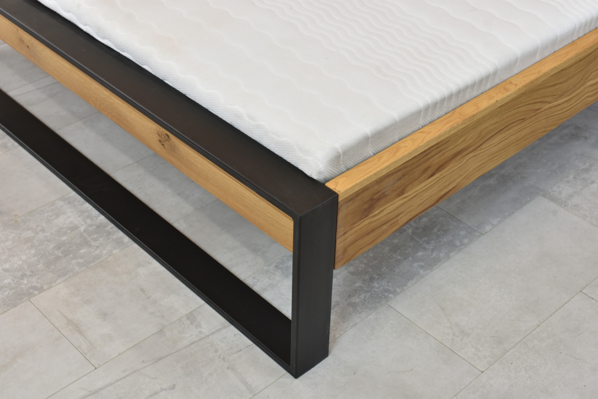 Das Eichen-Doppelbett FARO in der Matratzengröße 180 × 200 cm verbindet die Eleganz von natürlichem Massivholz mit modernem Industriestil. Der Bettrahmen ist aus hochwertigem Eichenholz gefertigt und FSC-zertifiziert FSC, was seinen ökologischen Ursprung und Umweltfreundlichkeit garantiert. Die Holzoberfläche ist mit natürlichem Öl behandelt, das die schöne Maserung der Eiche hervorhebt und gleichzeitig das Material vor täglichem Verschleiß schützt. Metallbeine in mattschwarzer Farbe verleihen dem Bett Stabilität und ein originelles Aussehen, das sowohl in moderne als auch klassische Innenräume passt.