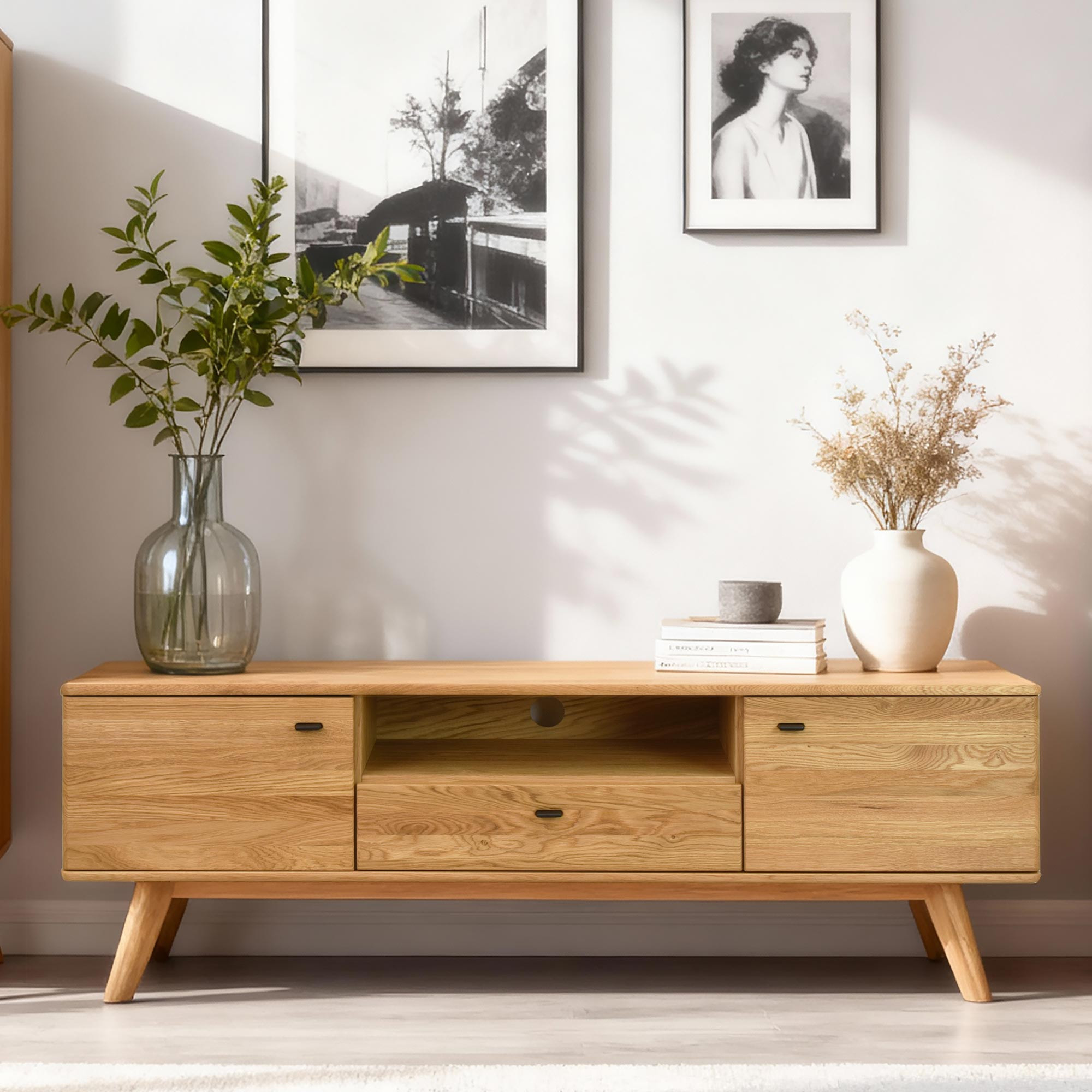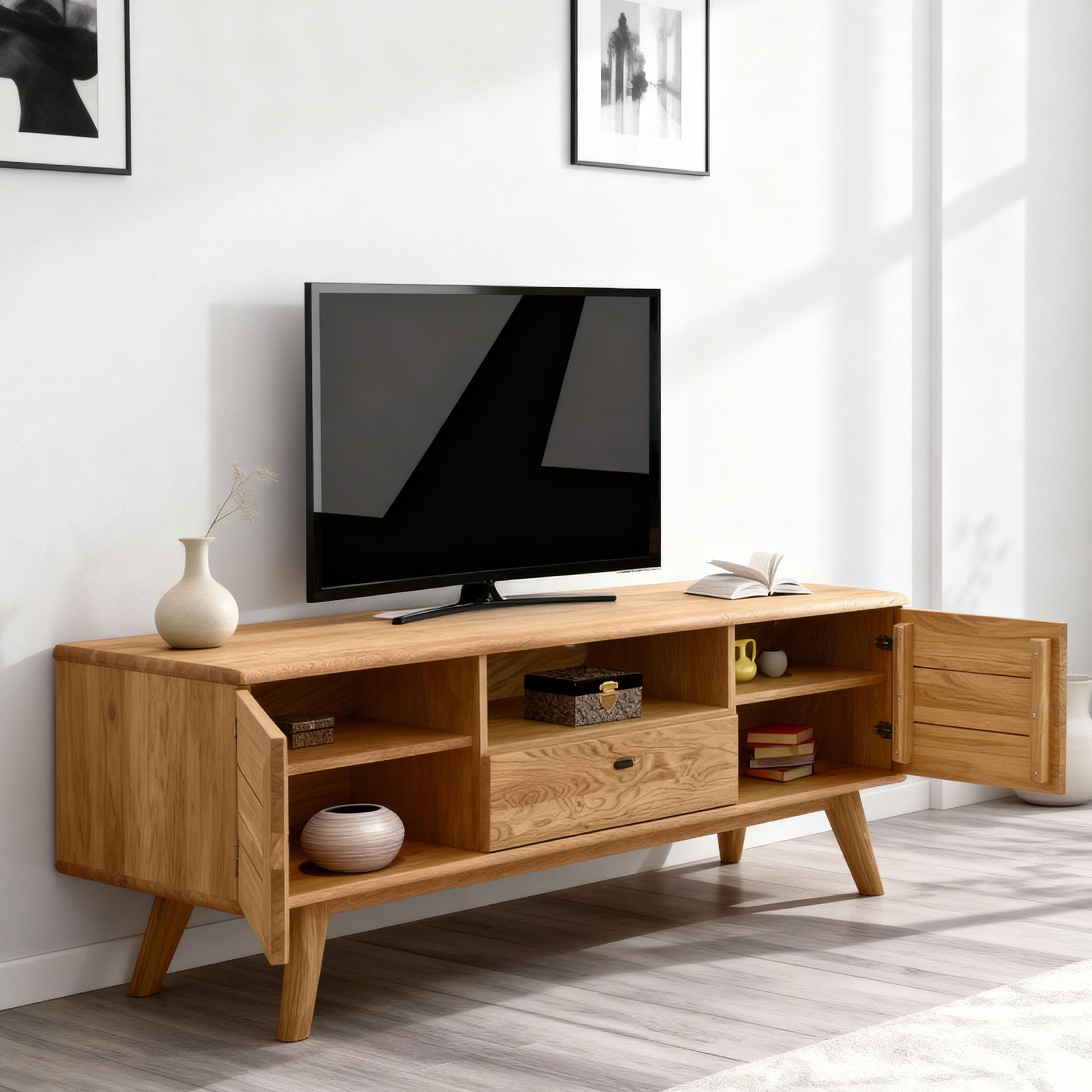 Massive TV-Kommode aus Eiche 160 cm natur geölt