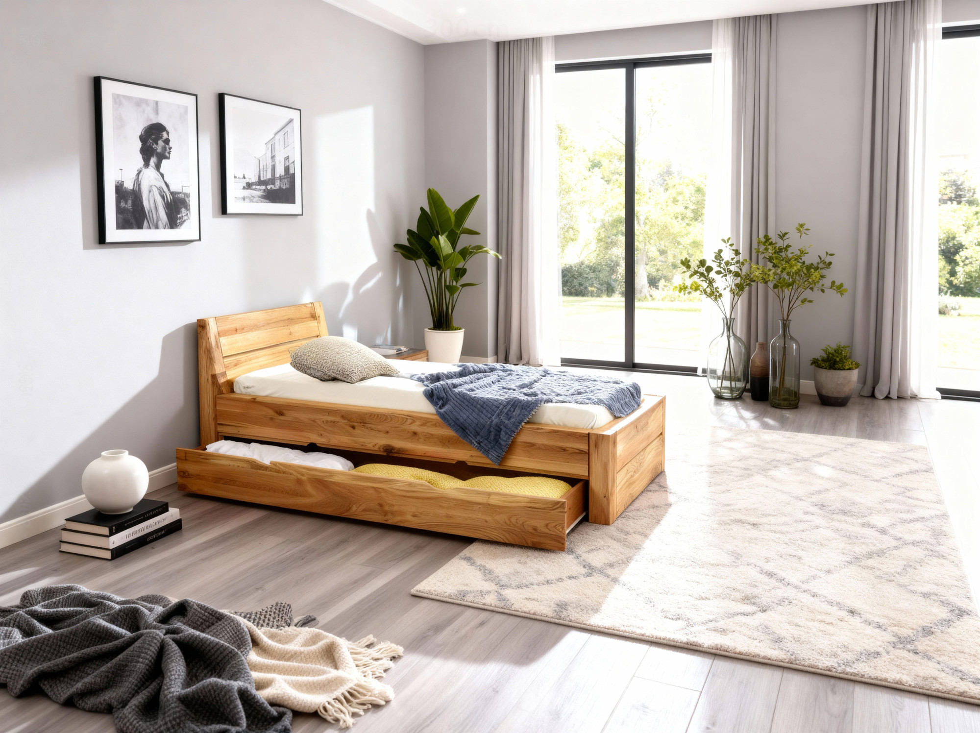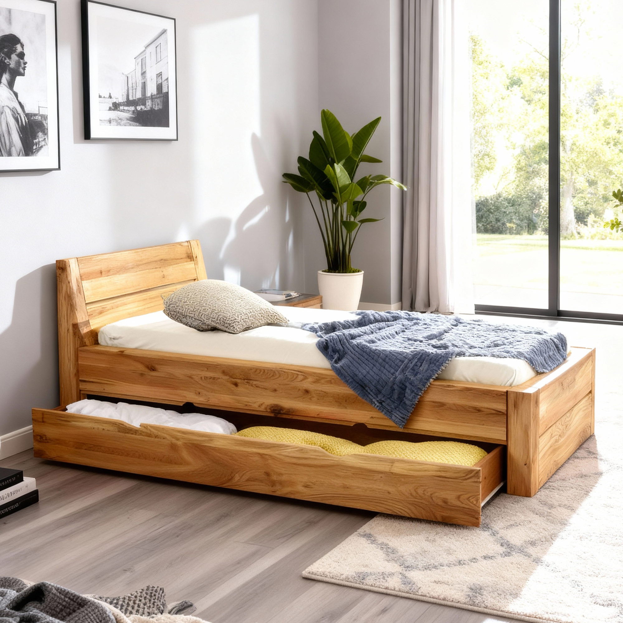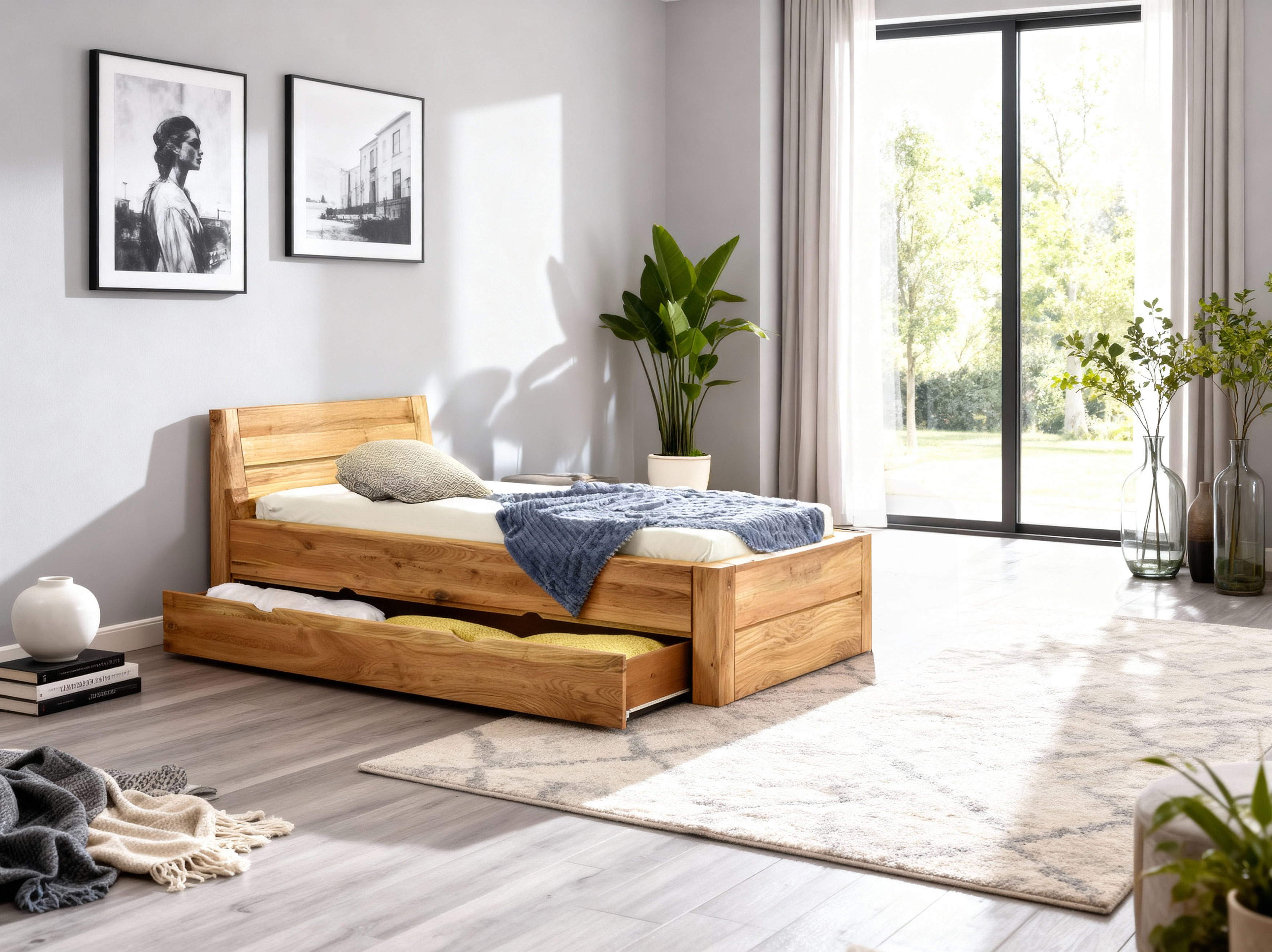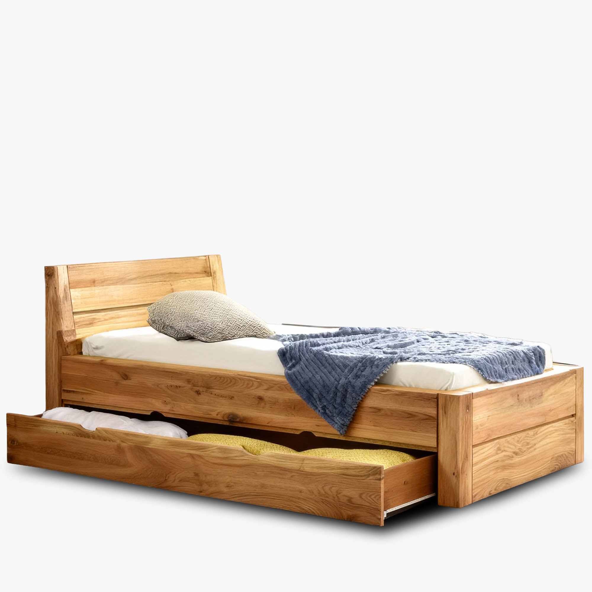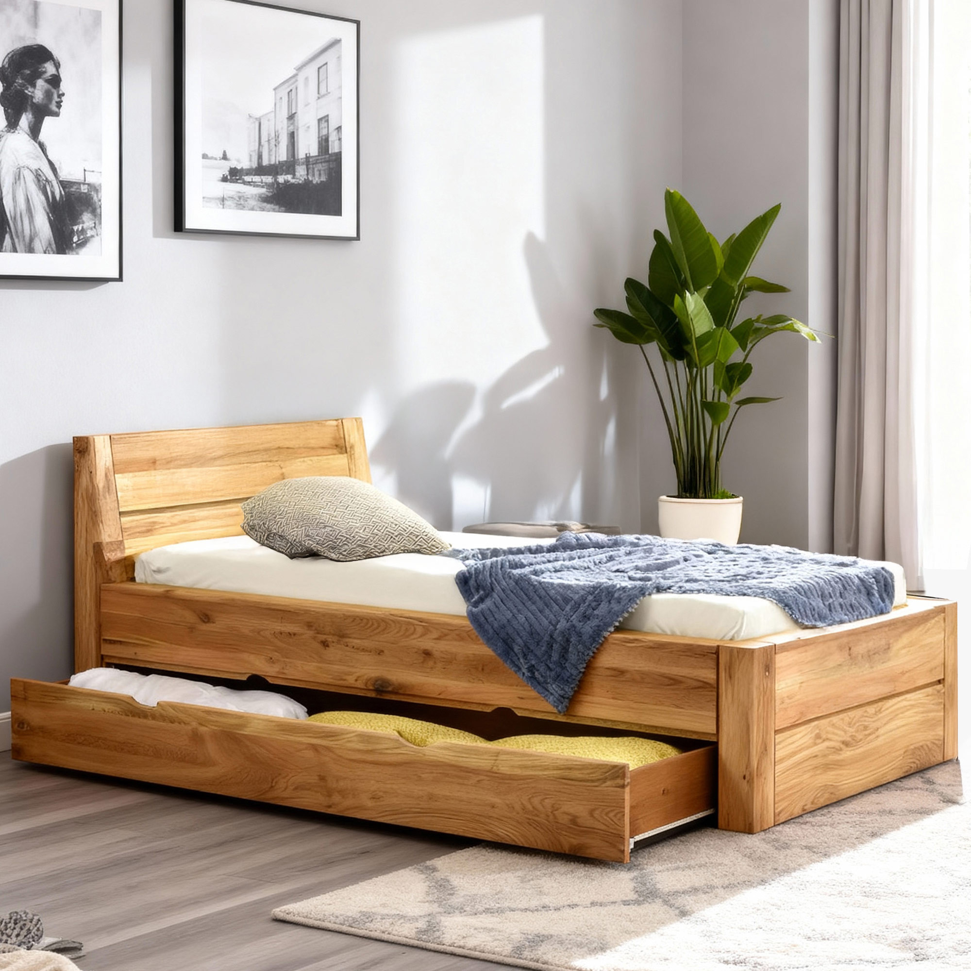 Massivholz Einzelbett 90x200 cm Eiche mit Lattenrost