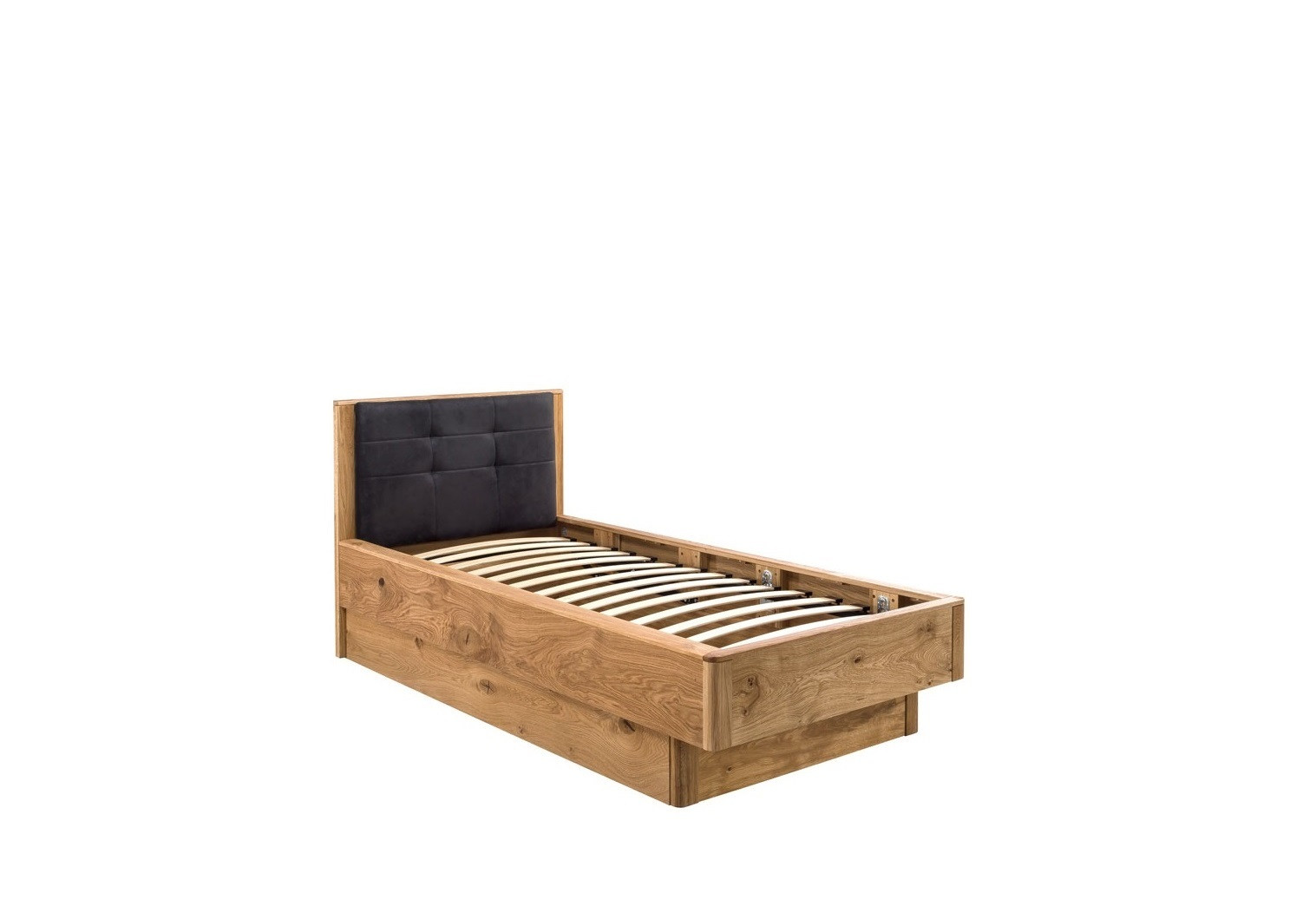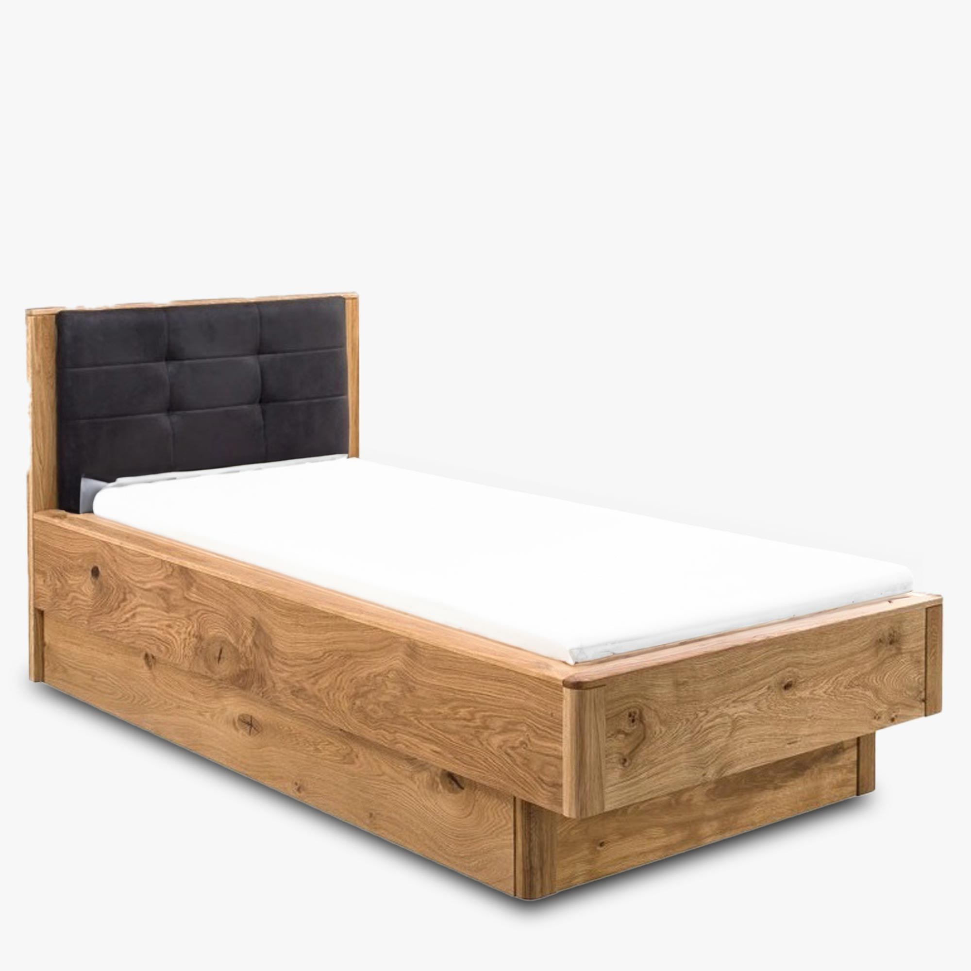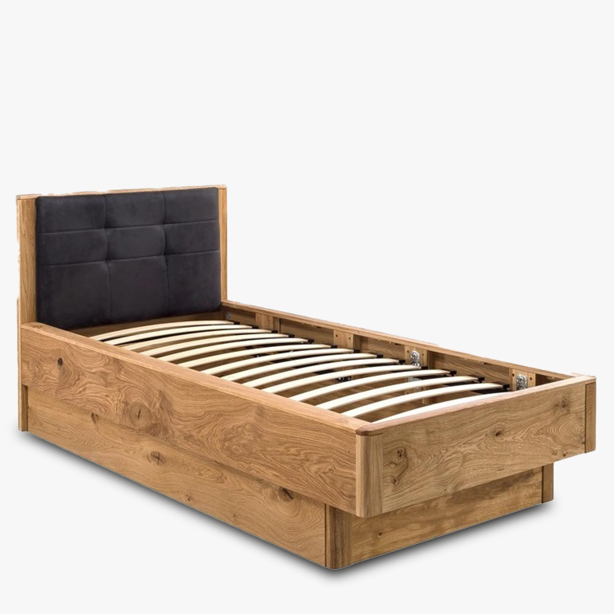 Einzelbett aus massivem Eichenholz mit Stauraum natur