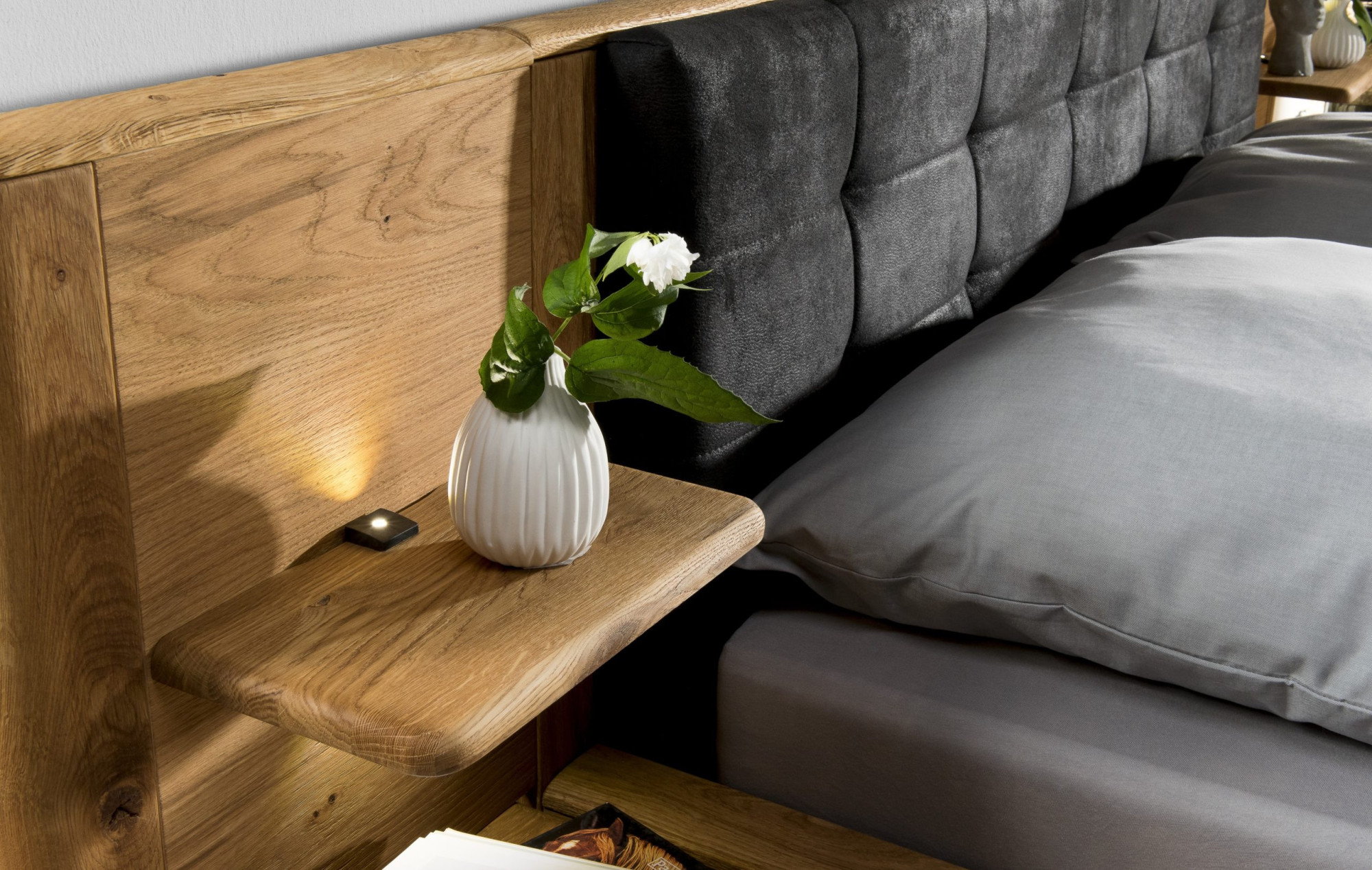 - Ja, das Bett lässt sich leicht mit weiteren Produkten aus Eichenholz aus unserer Kollektion kombinieren, um ein einheitliches und harmonisches Interieur zu schaffen.