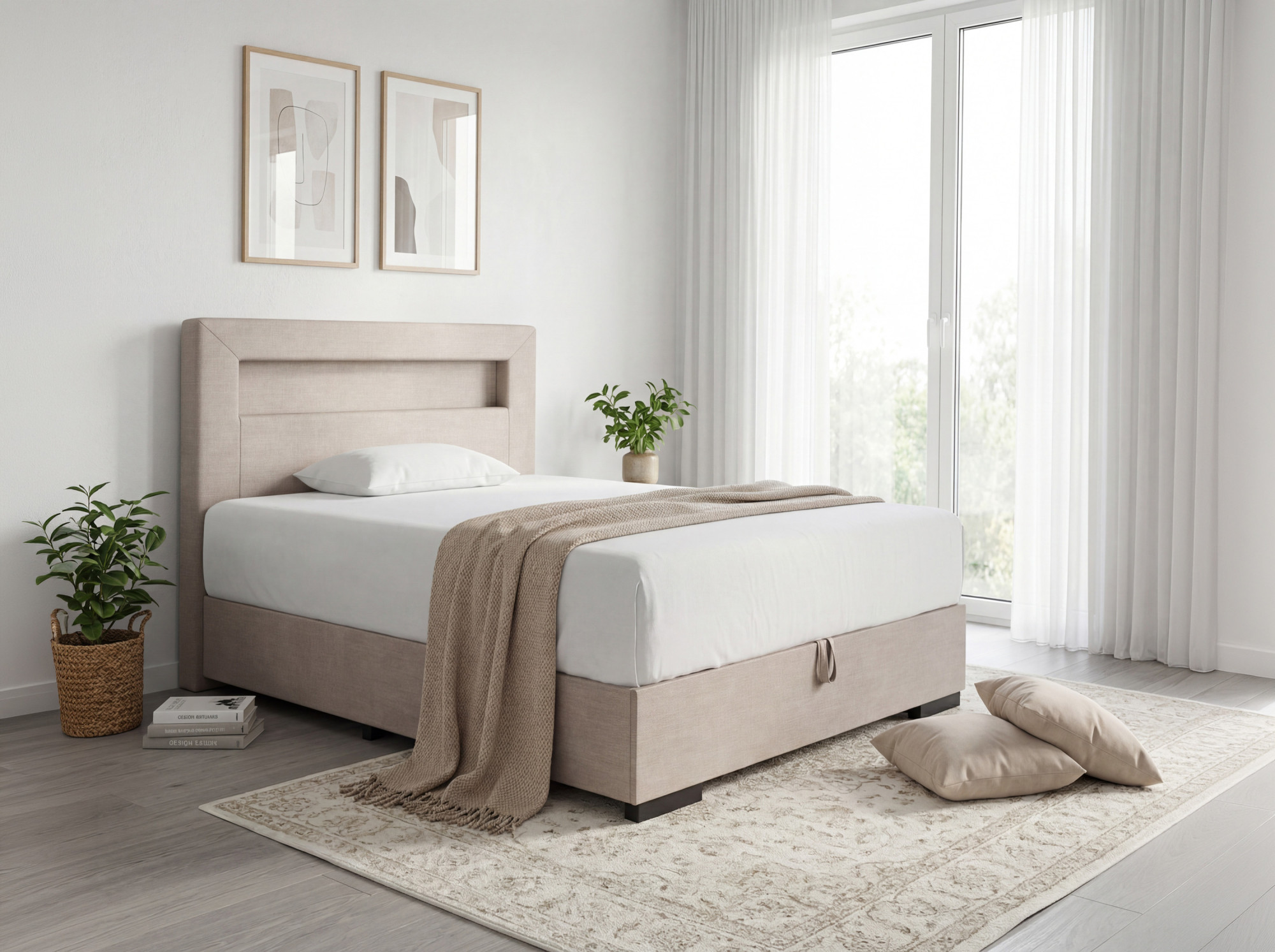 - Hochwertige Matratze mit Topper – Maximale Bequemlichkeit und Wirbelsäulenunterstützung.