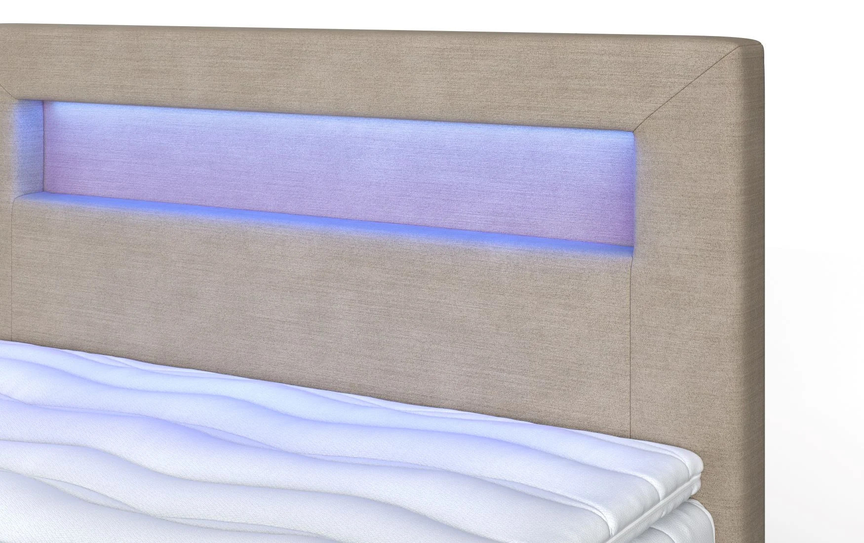 Bett 120x200 Stoff beige mit Matratze Stauraum LED