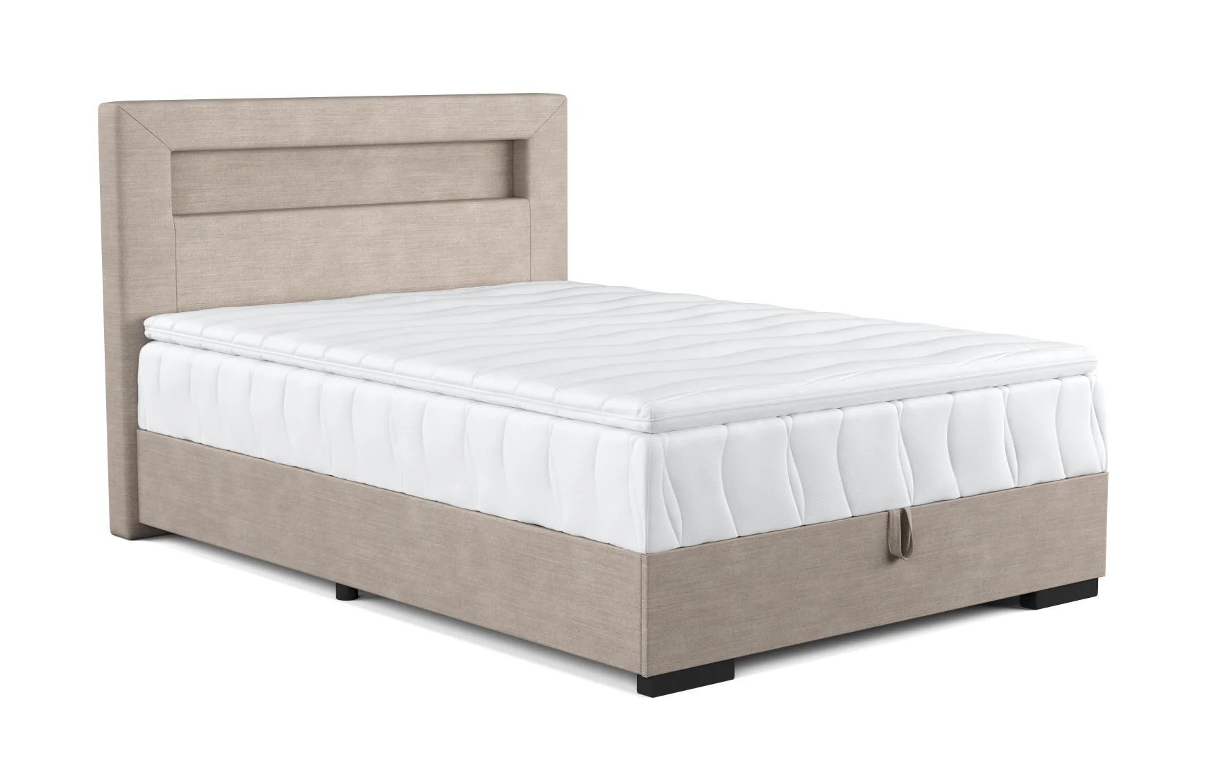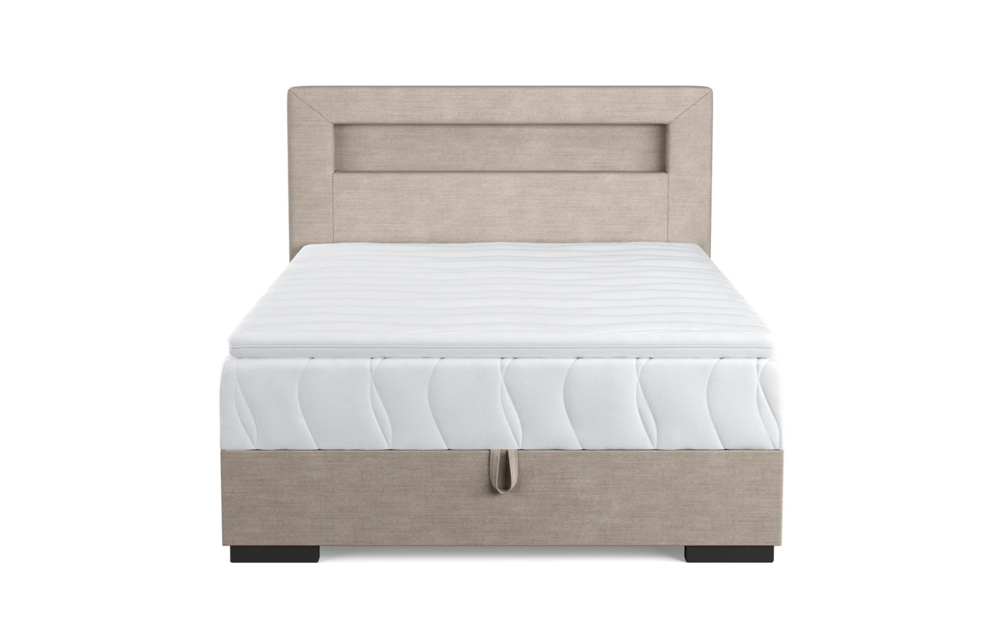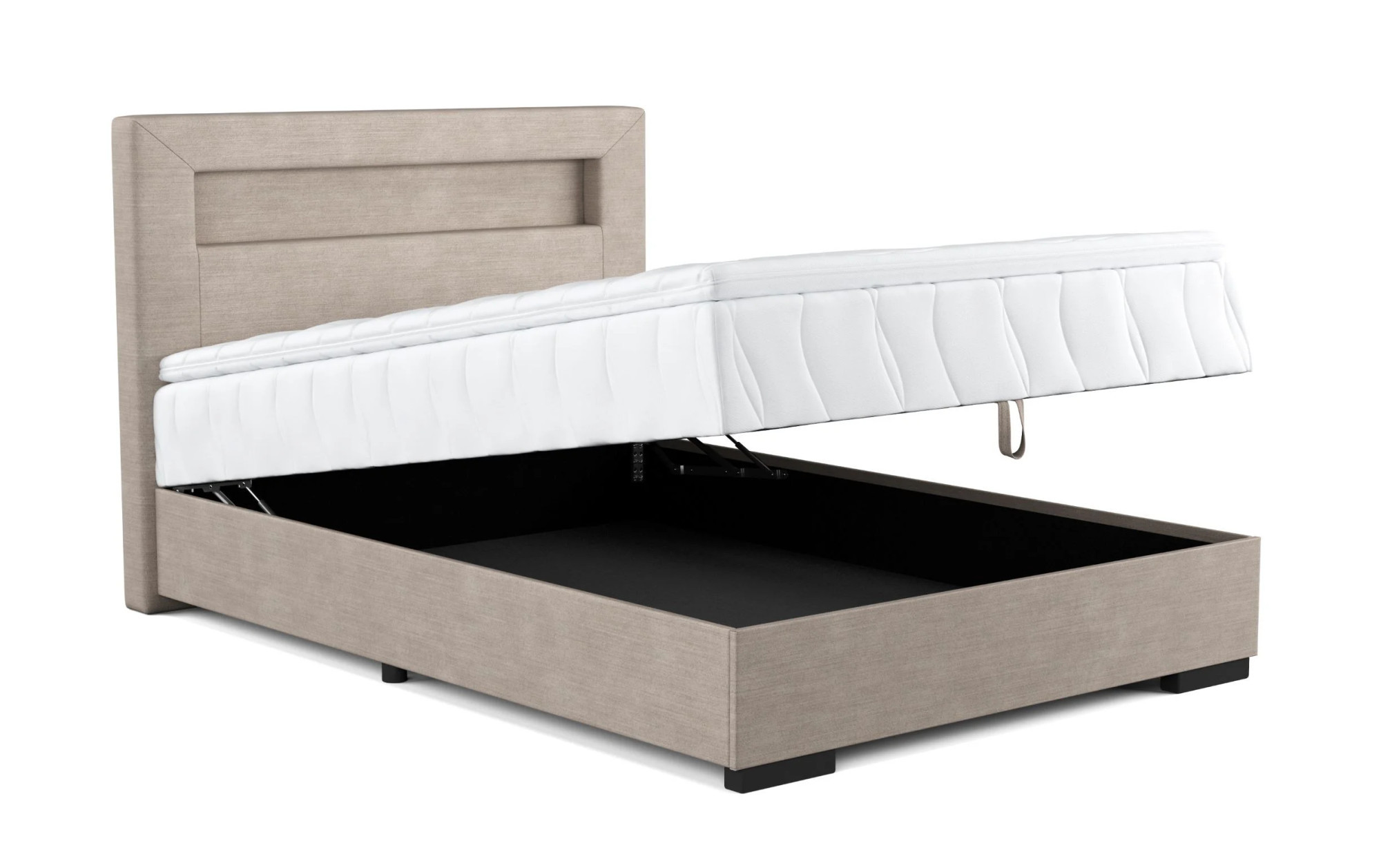Das Bett ist aus erstklassigem Stoff Campsbay Natural in der Farbe R463 gefertigt, der einen luxuriösen Look verleiht und gleichzeitig robust und pflegeleicht ist. Der Stauraum bietet praktischen Platz zur Aufbewahrung von Bettwäsche, saisonaler Kleidung oder anderen Gegenständen, was Platz im Zimmer spart. Der Lattenrost unterstützt die Atmungsaktivität der Matratze, was deren Hygieneeigenschaften verbessert und die Lebensdauer verlängert. Die hochwertige Matratze mit Topper sorgt für optimale Wirbelsäulenunterstützung und komfortablen Schlaf.