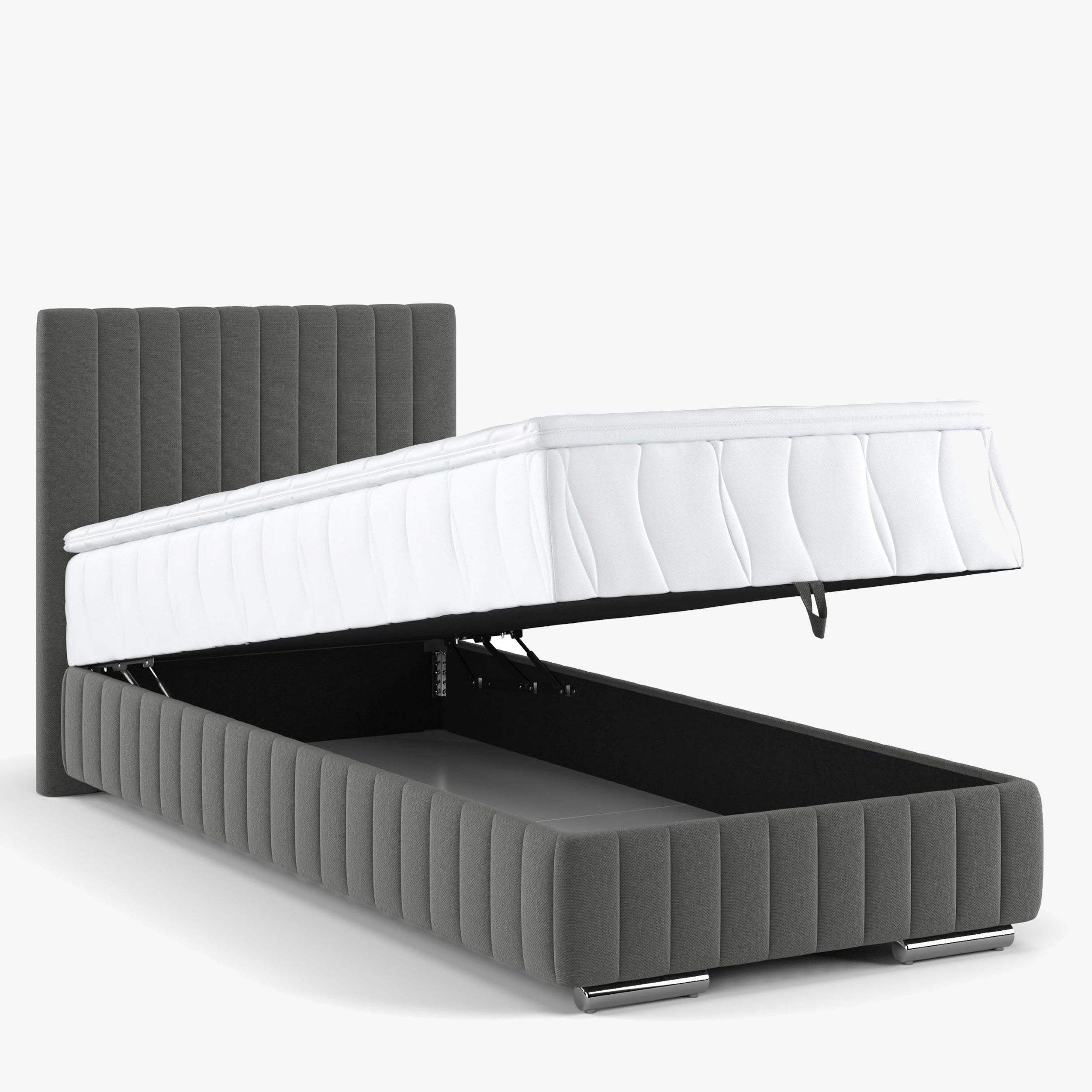 Einzelbett Beetle 90 x 200 cm in Grau-Braun – inklusive Matratze, Topper und Stauraum