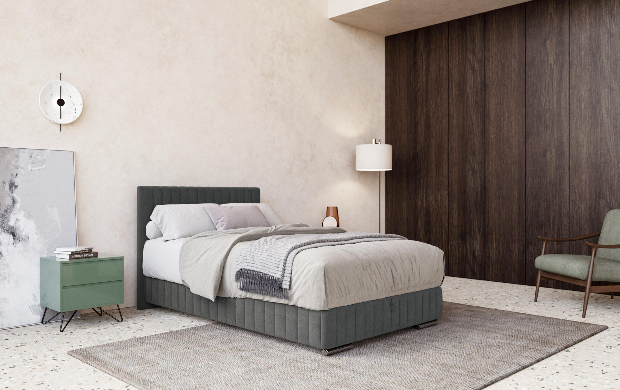 Das Einzelbett Beetle Boxbett in der Größe 90 x 200 cm stellt die perfekte Kombination aus Funktionalität, Eleganz und modernem Design dar. Dieses luxuriöse Möbelstück wurde nach höchsten Qualitätsstandards entworfen und passt hervorragend in Ihr Schlafzimmer. Die robuste Konstruktion aus Massivholz bietet ausgezeichnete Stabilität und eine lange Lebensdauer, während das durchdachte Design sicherstellt, dass das Bett problemlos in moderne sowie klassische Interieurs passt. Das elegante graue Polster unterstreicht zudem das zeitlose Aussehen des Bettes.
