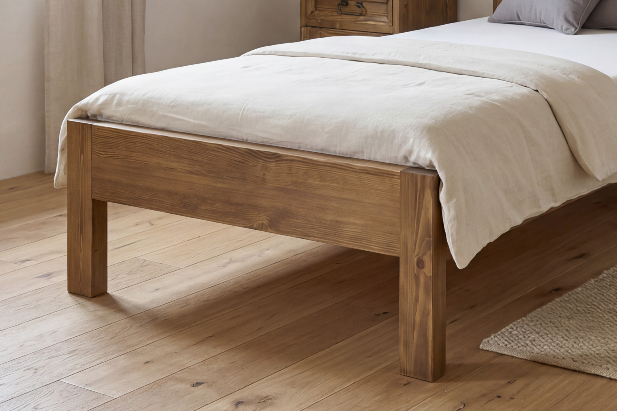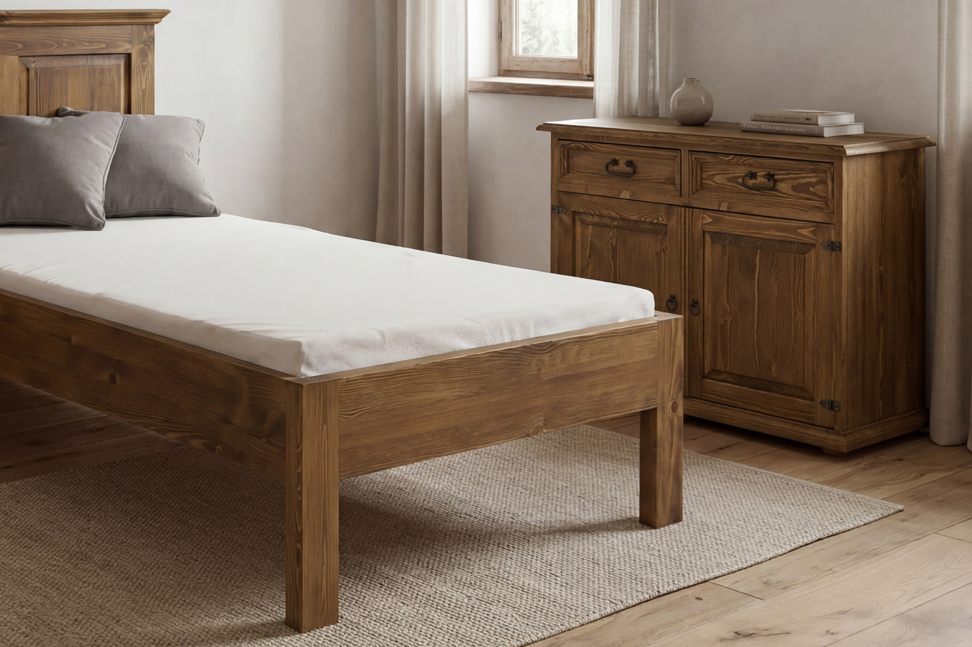 Einzelbett 120 x 200 cm im rustikalen Stil – massives Kiefernbett der Serie Venkov