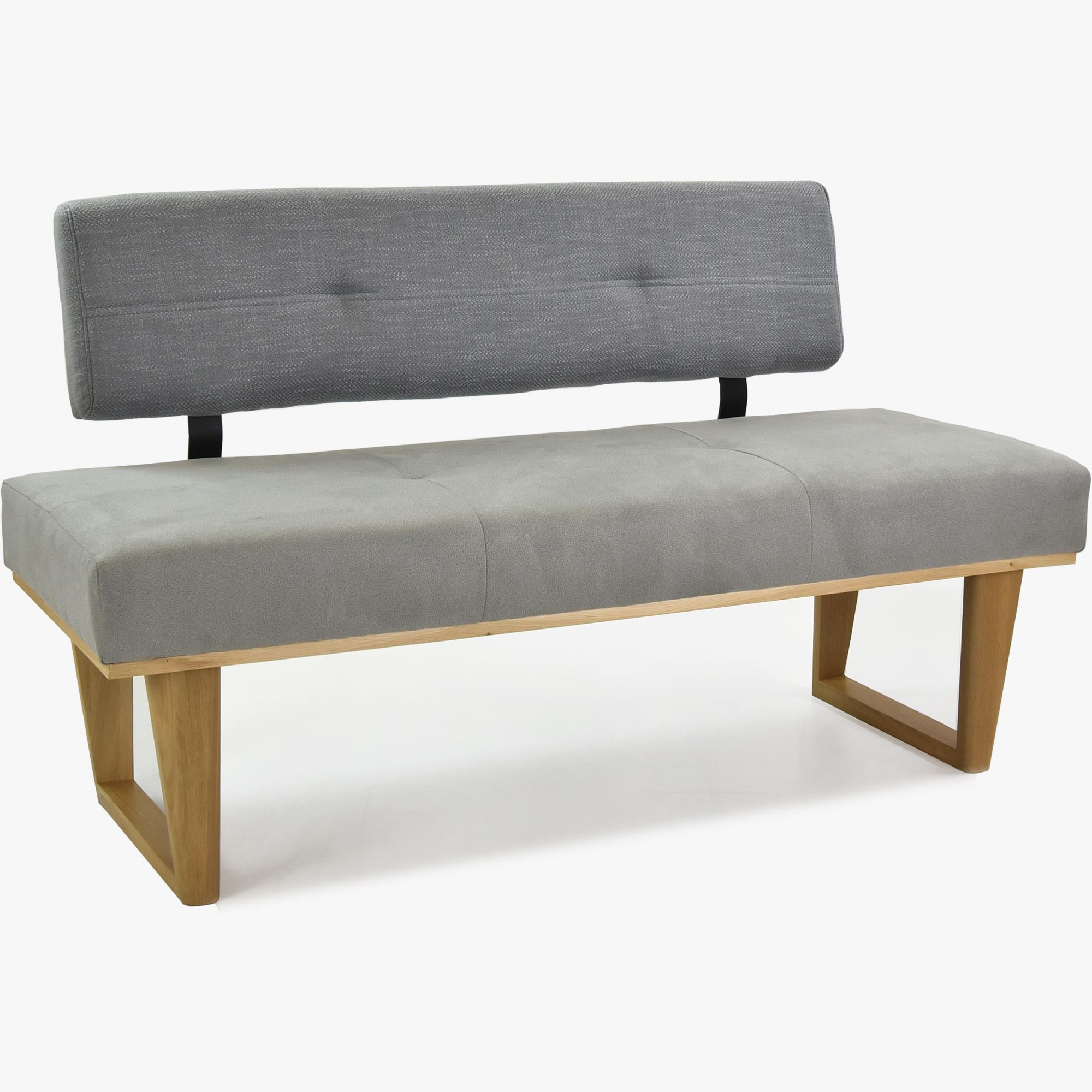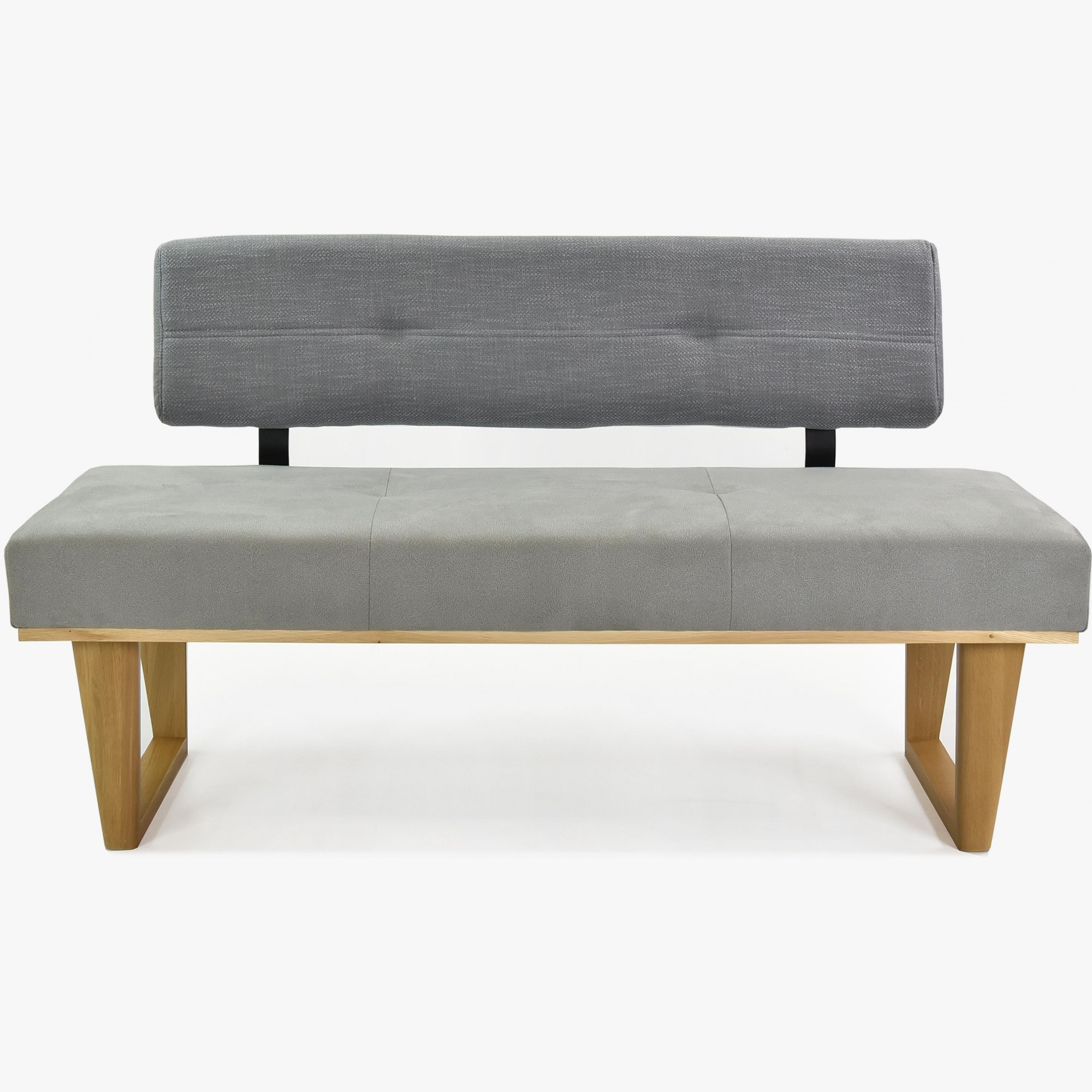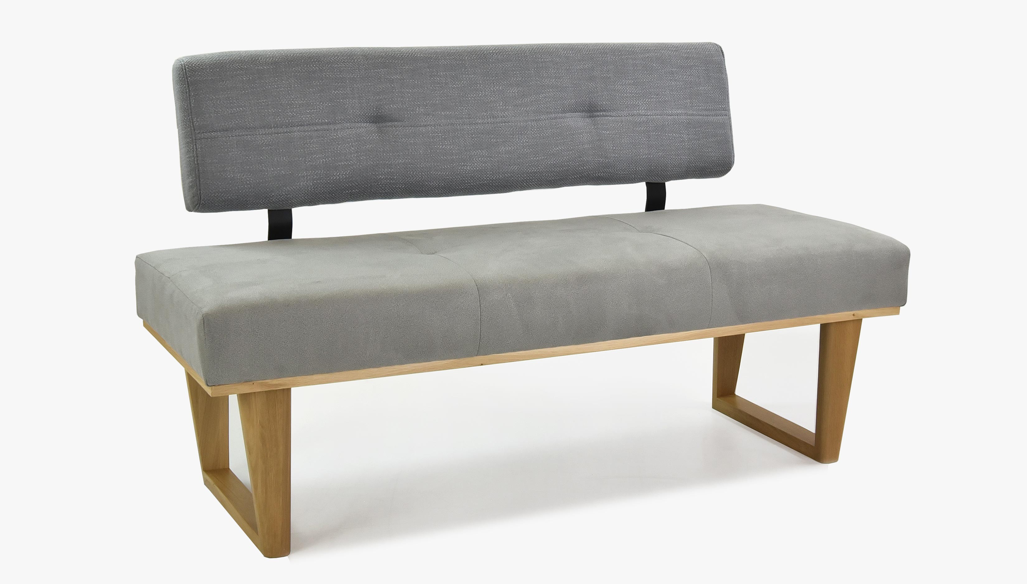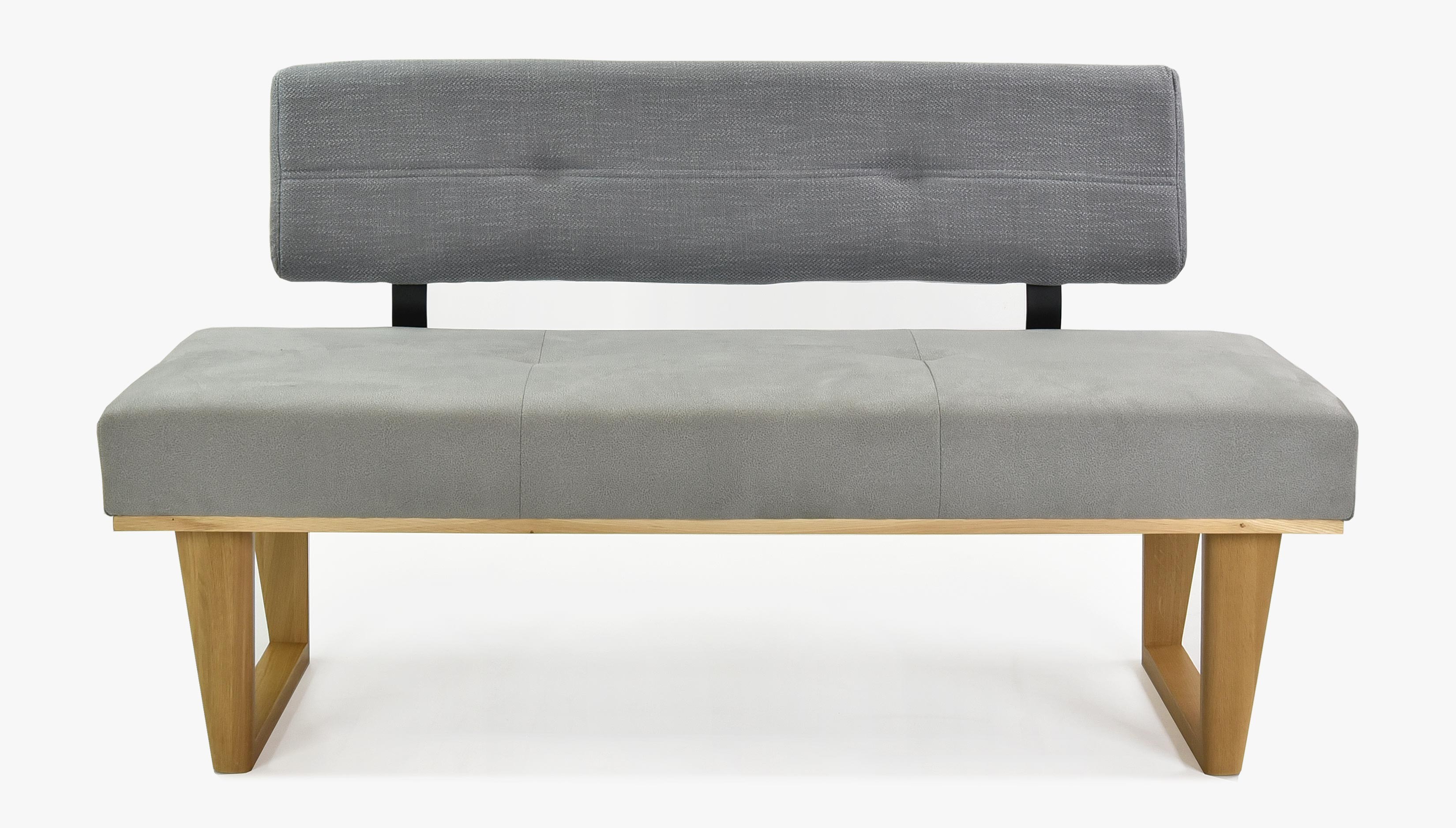 Moderne Stoffbank grau 150 cm mit Eichenholzbeinen