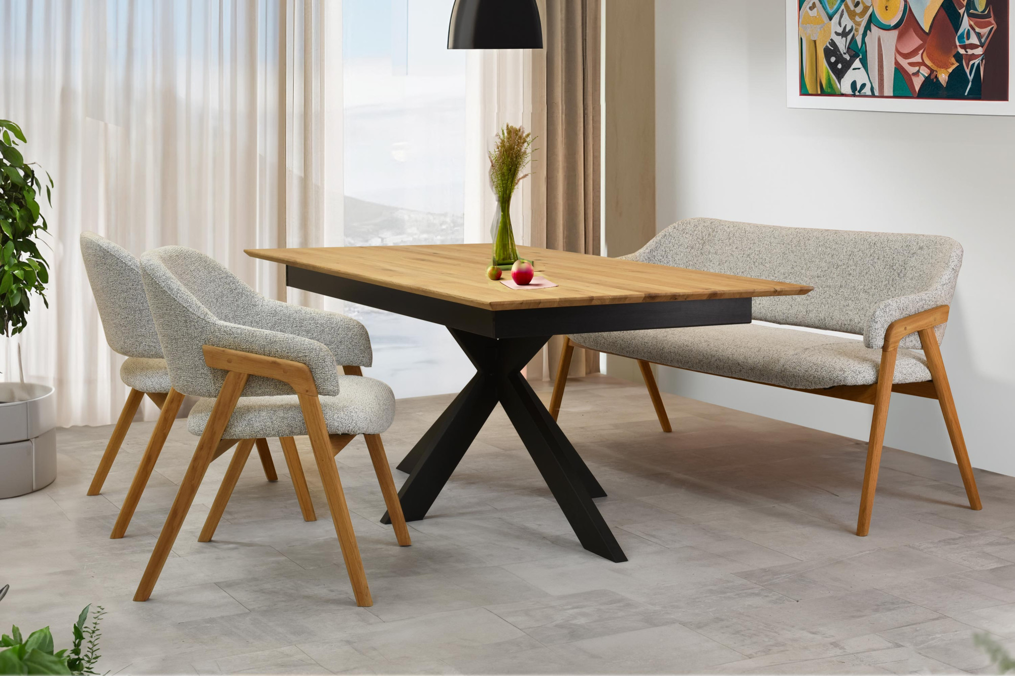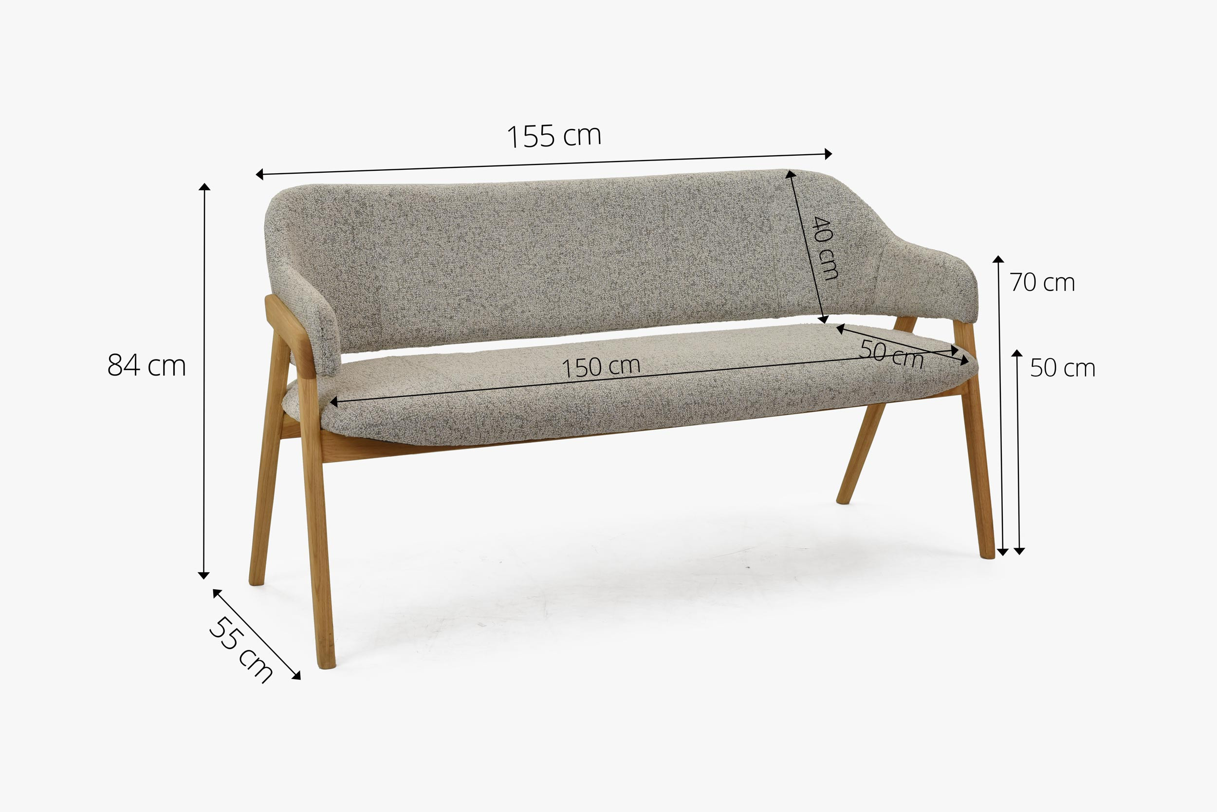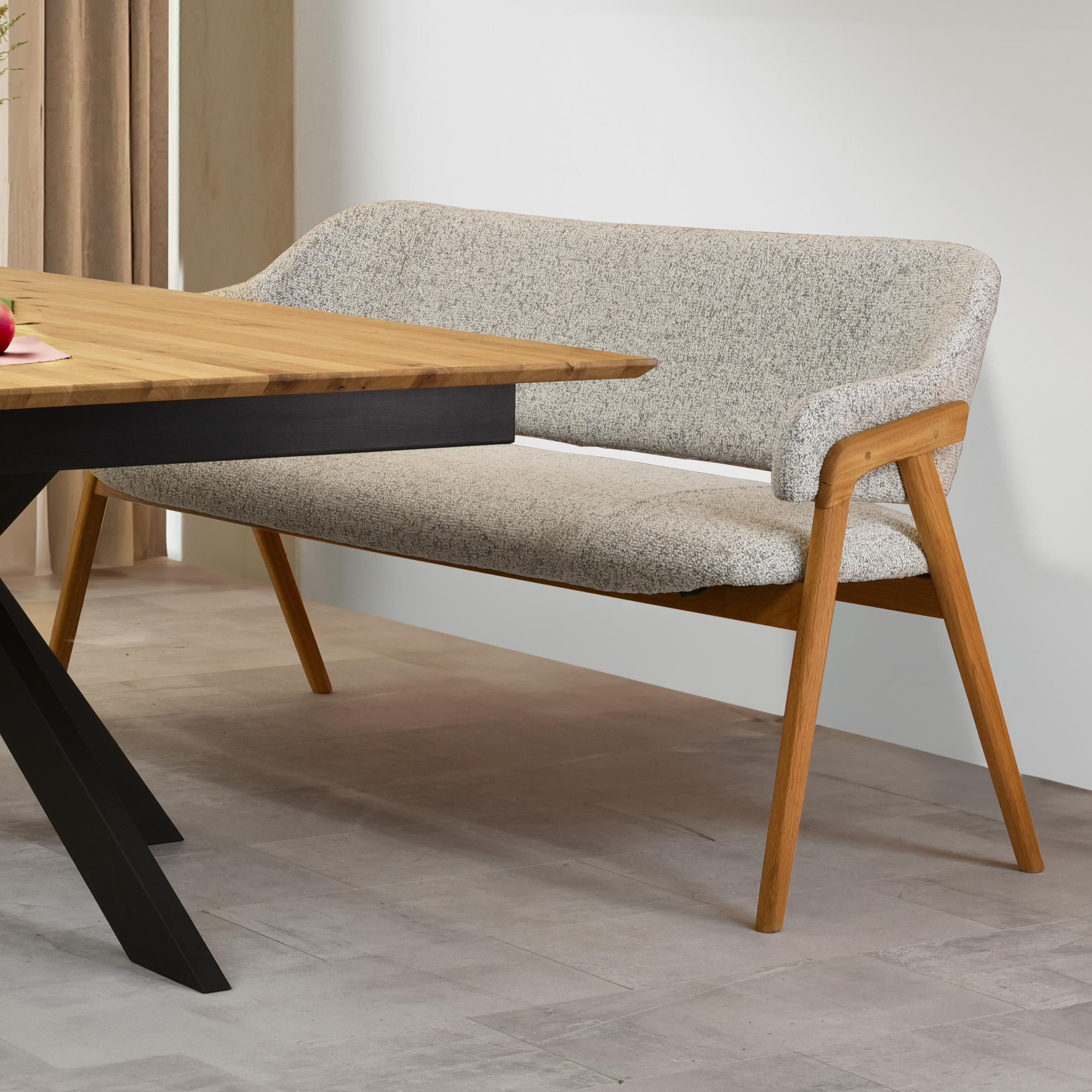 Esszimmerbank grau Stoff mit Eichenbeinen natur 2024