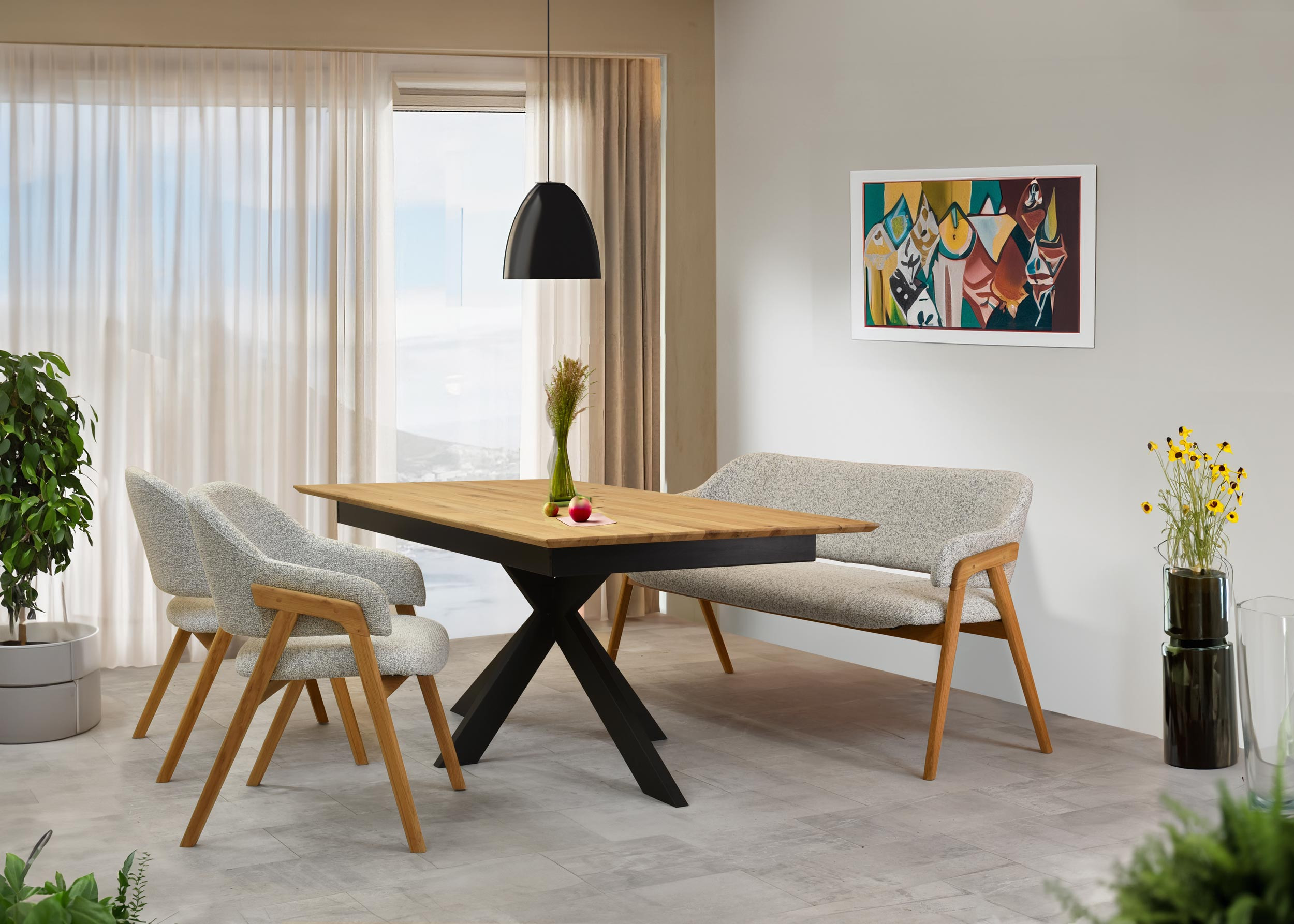 *auf dem Foto Stuhl und Bank Modell Clara mit Tisch Samuel XL
