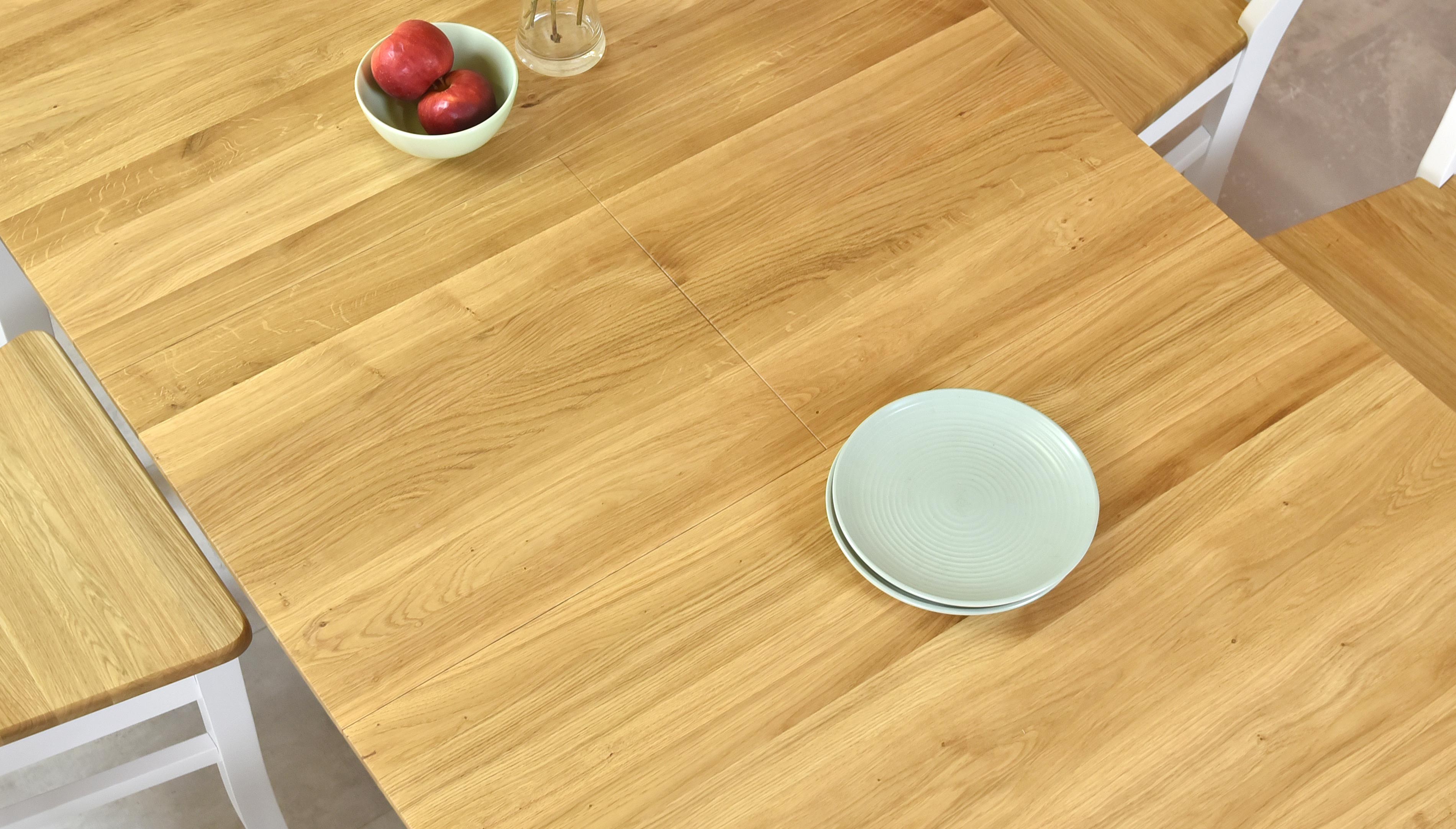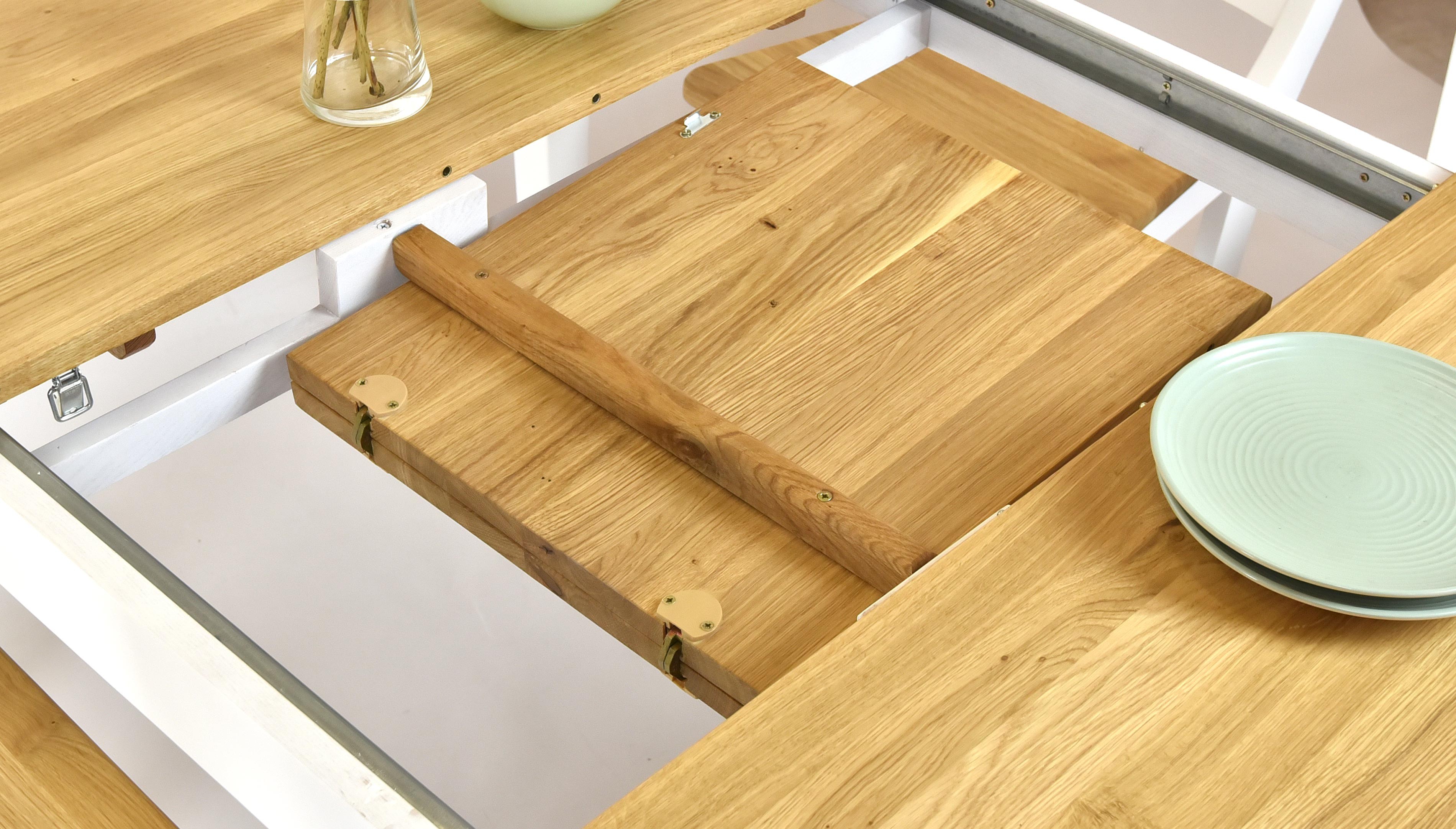 Massiver Eiche Tisch + weiß ausziehbar, Tomino