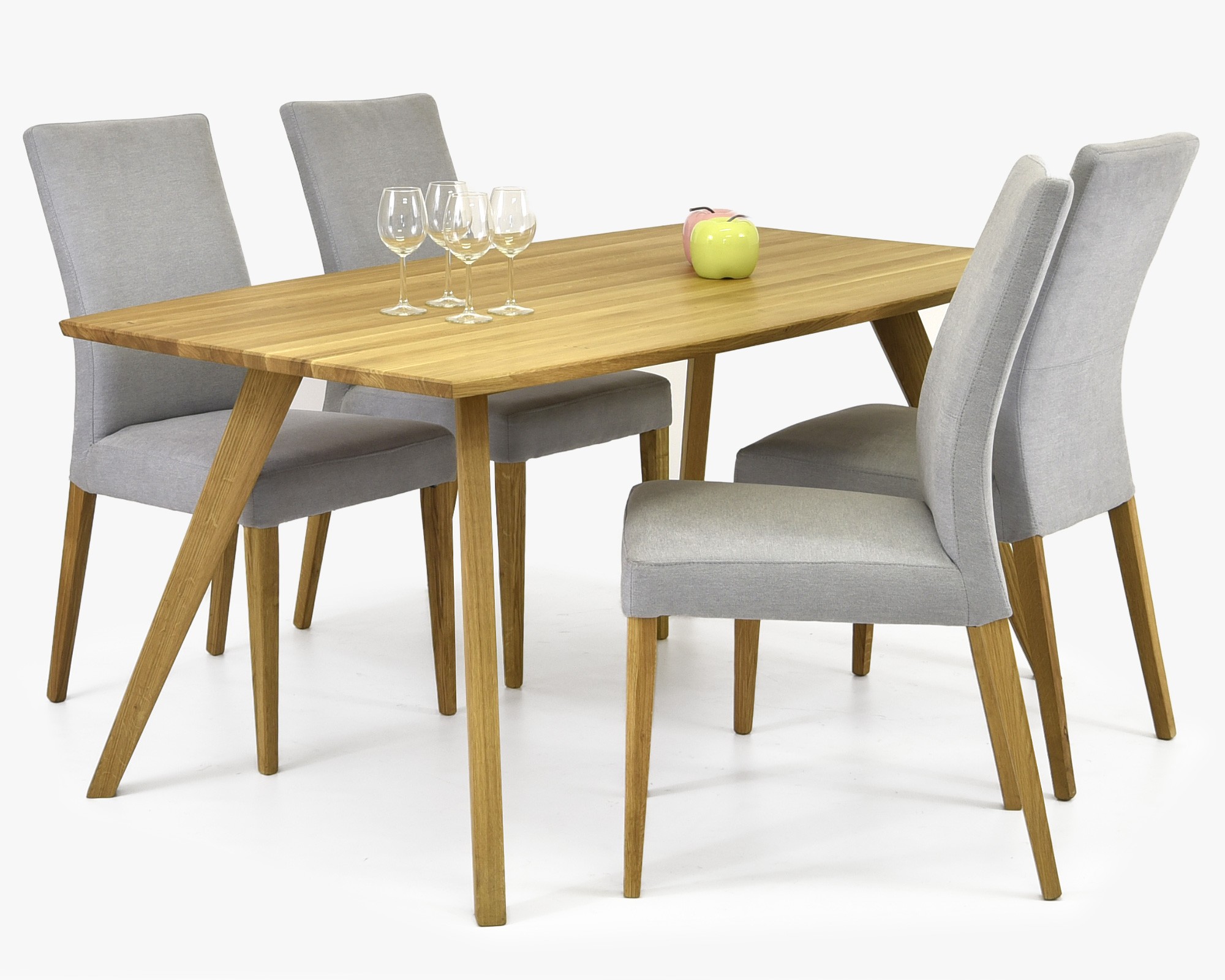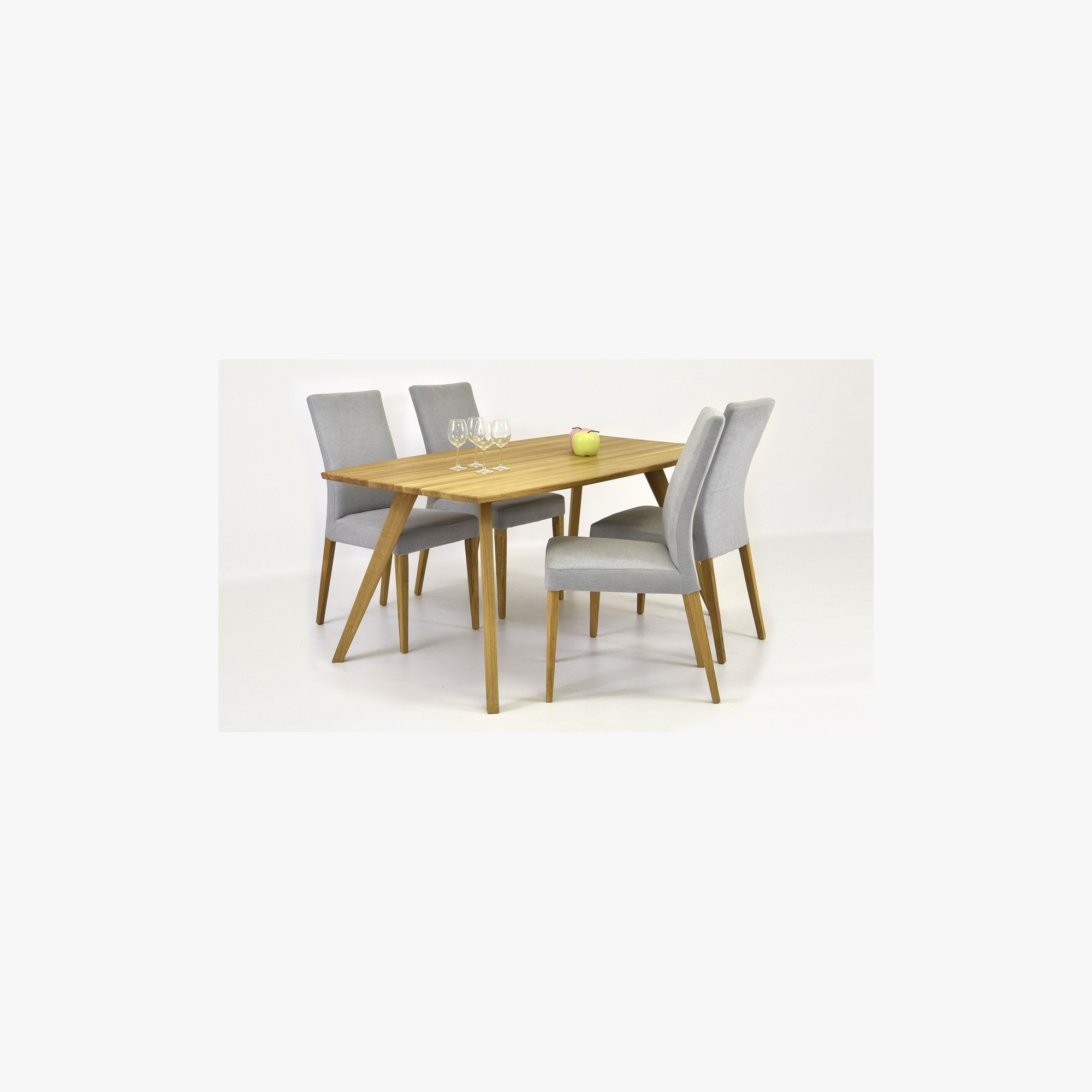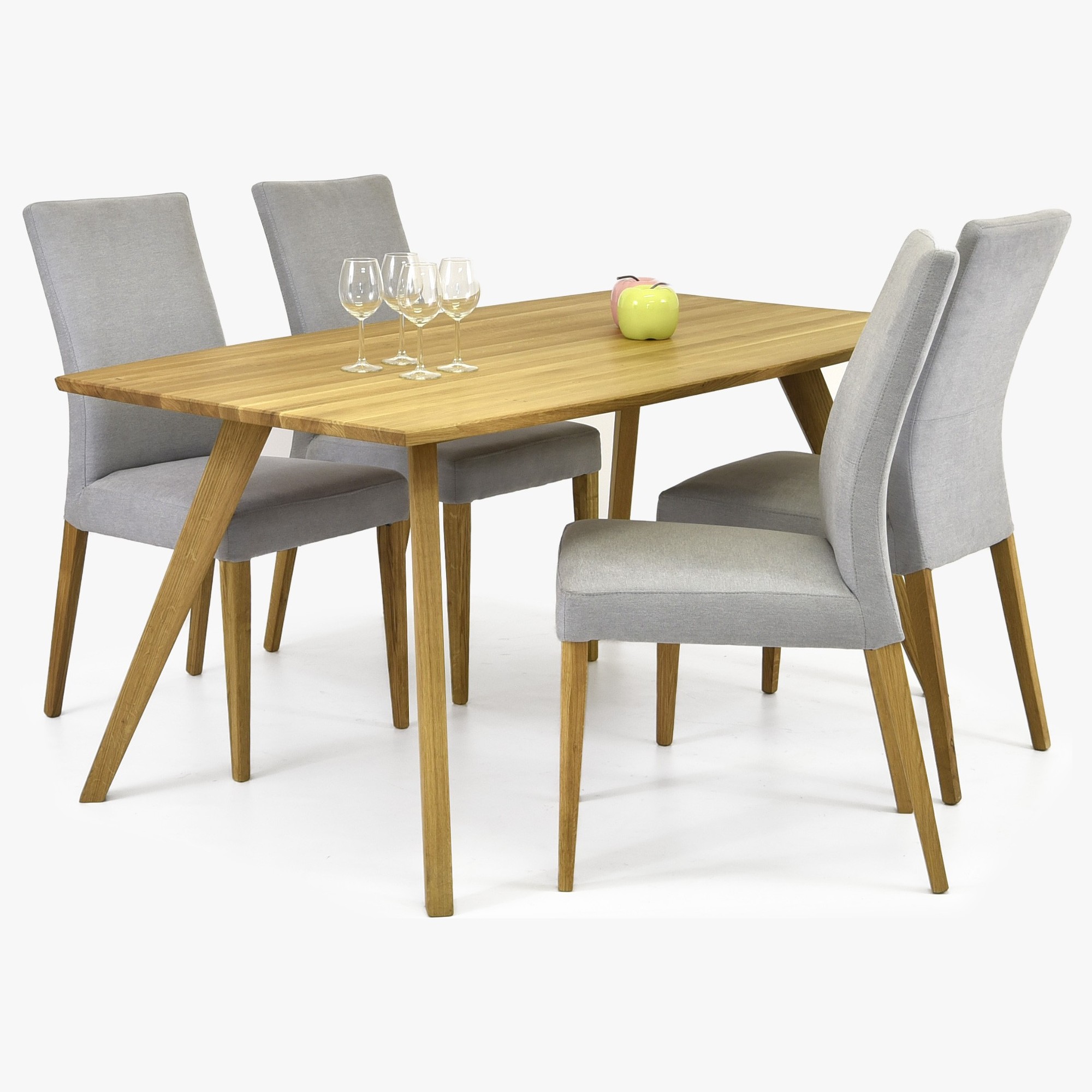 Essgarnitur 5-teilig Eichenholz Esstisch mit grauen Stühlen