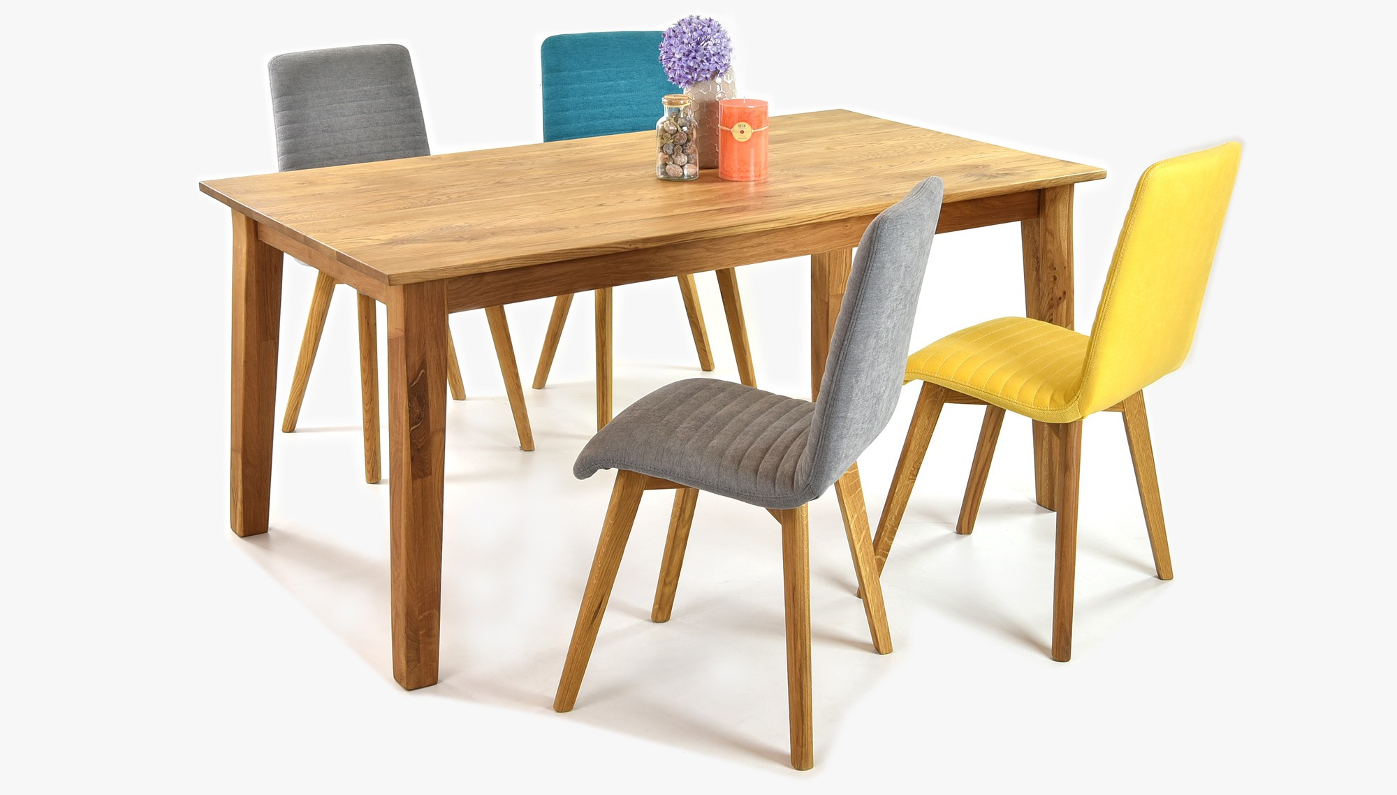 Massiver Eichen-Esstisch MIREK 160 x 90 cm und Stühle arosa