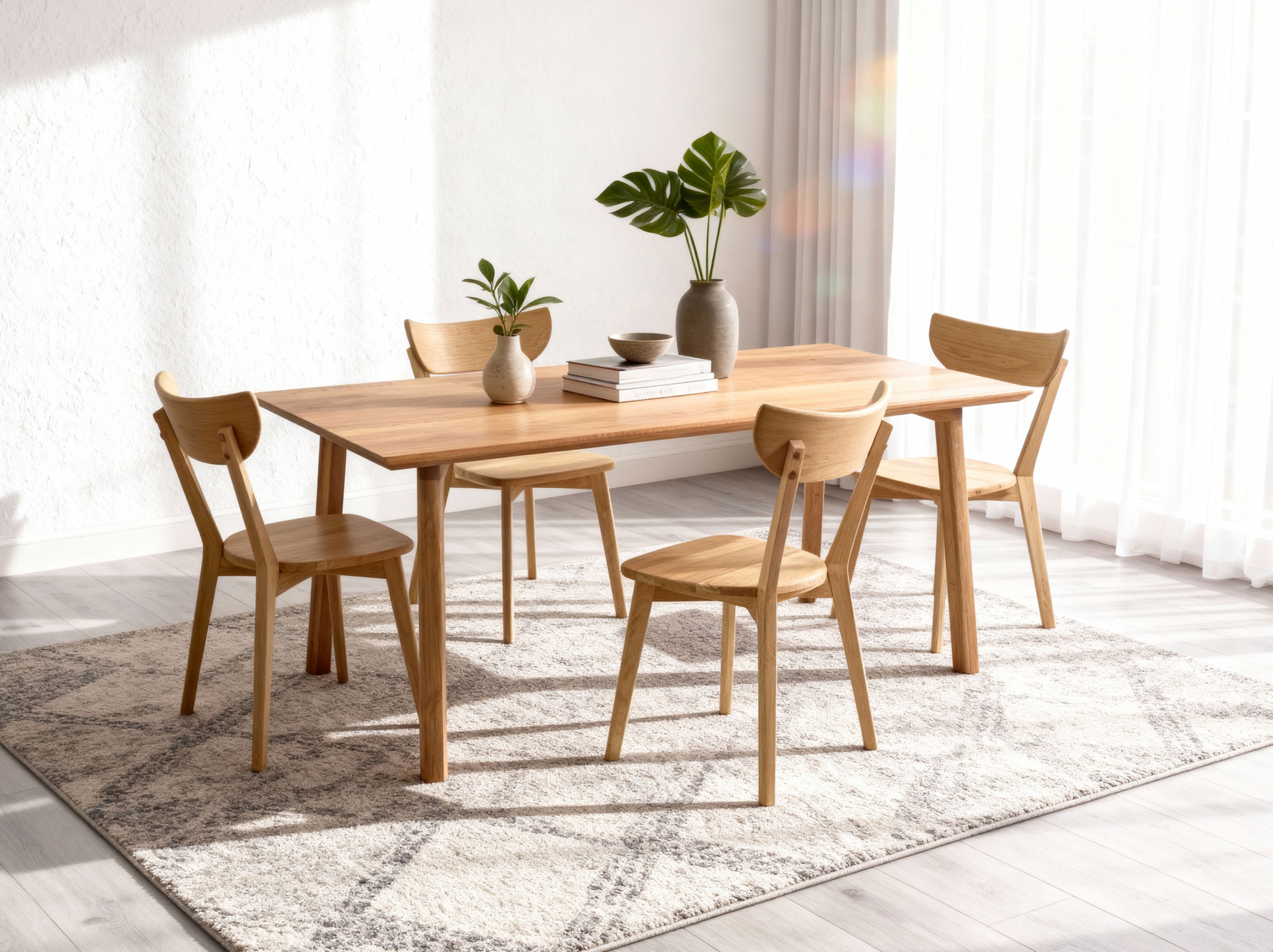 Beleben Sie Ihr Zuhause mit diesem wunderschönen Esszimmer-Set, das die Schönheit von Naturholz hervorhebt und gleichzeitig Funktionalität und Eleganz bietet. Die aktuelle Oberflächenbehandlung mit natürlichem Öl verleiht diesem Set einen einzigartigen Charme und wird zum Mittelpunkt Ihrer Familienzusammenkünfte und gesellschaftlichen Ereignisse.