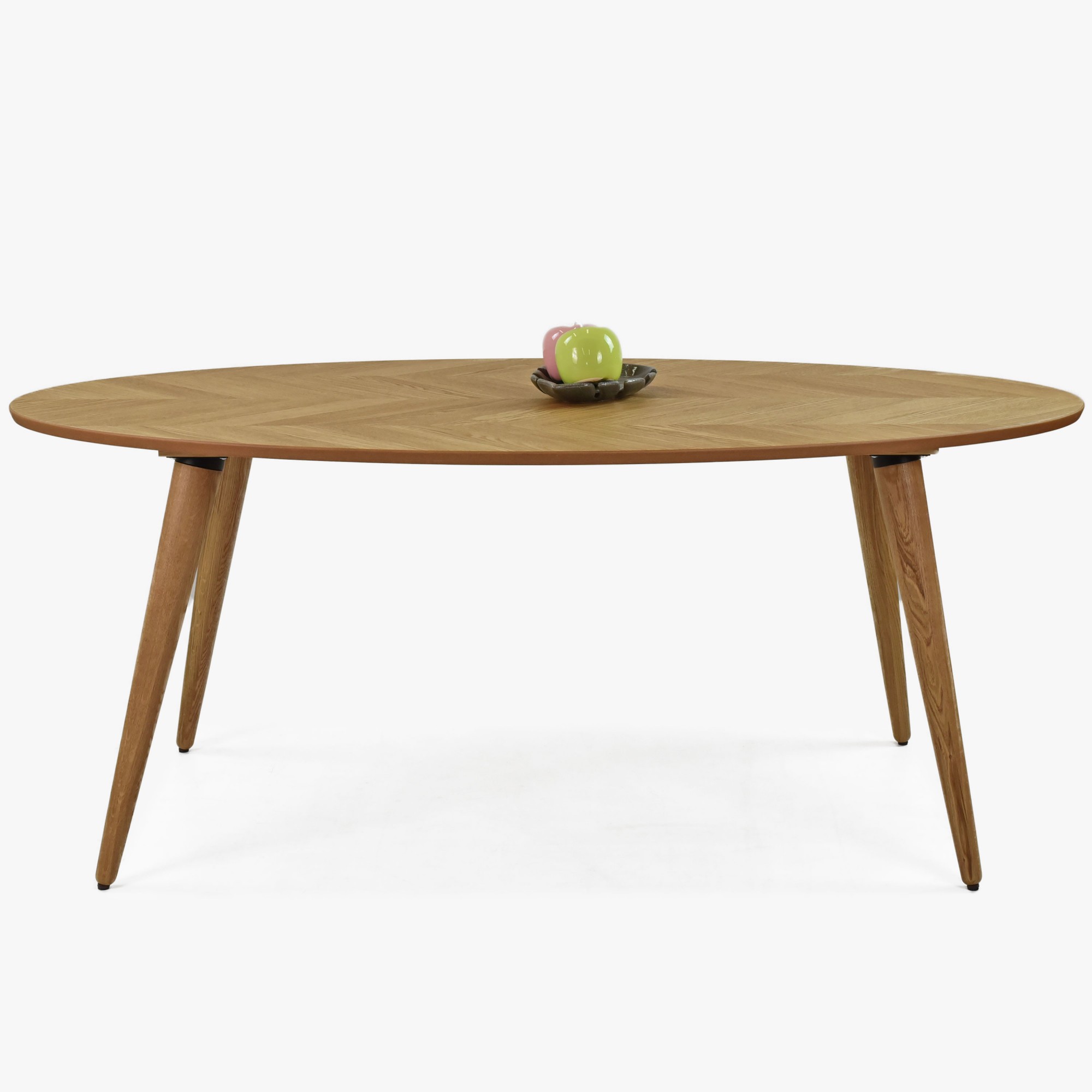 Der Esstisch „Miami“ kann mit einer einzigartigen Tischoberfläche aus natürlichem Eichenfurnier mit charakteristischem Fischgrätmuster punkten. Die Tischoberfläche ist mit elegantem mattem Lack behandelt, der die natürliche Holzoptik betont. Robuste Beine aus massivem Eichenholz garantieren Stabilität und lange Lebensdauer. Trotz seines luftigen und modernen Designs ist der Tisch sehr stabil.