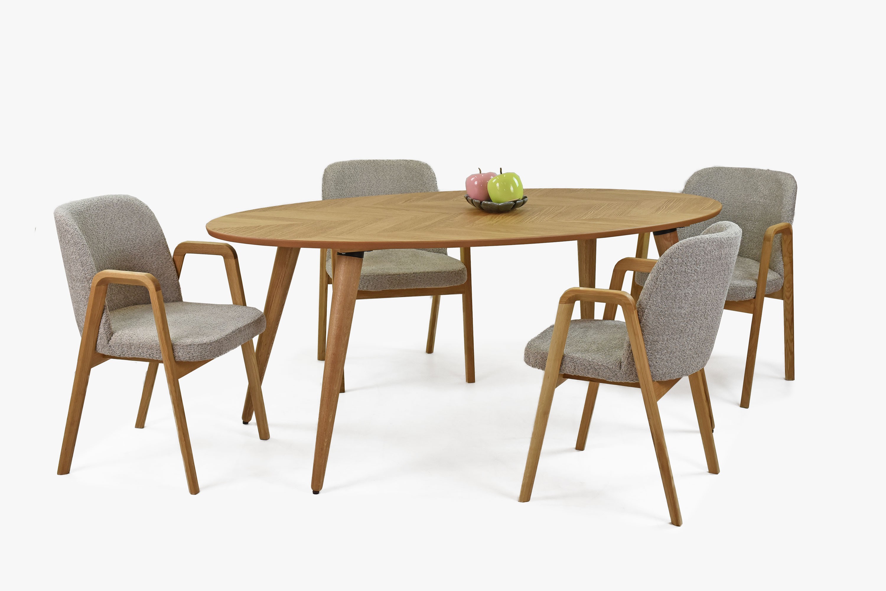Design ovaler Tisch Miami und Stuhlset Chilla für vier Personen