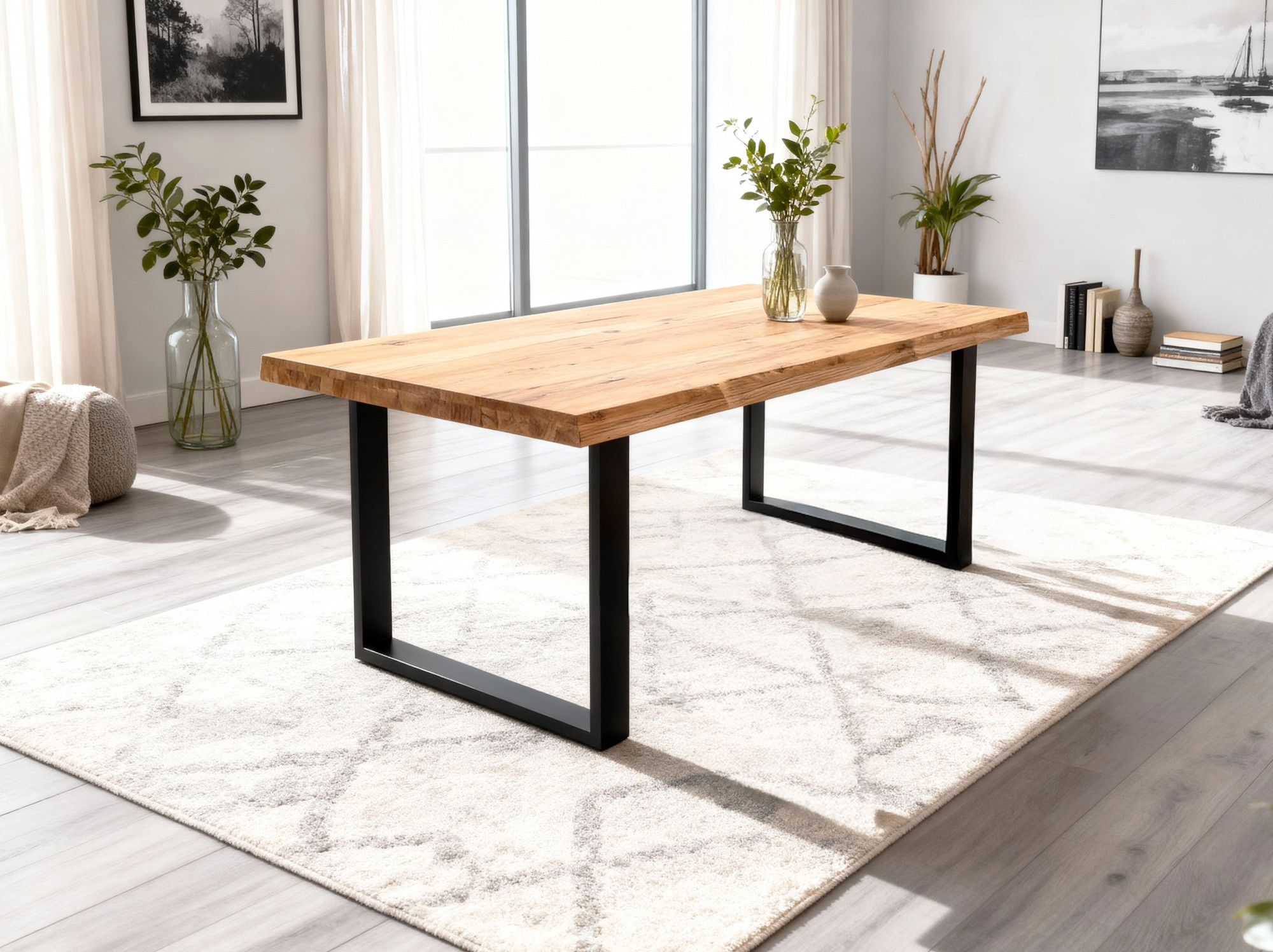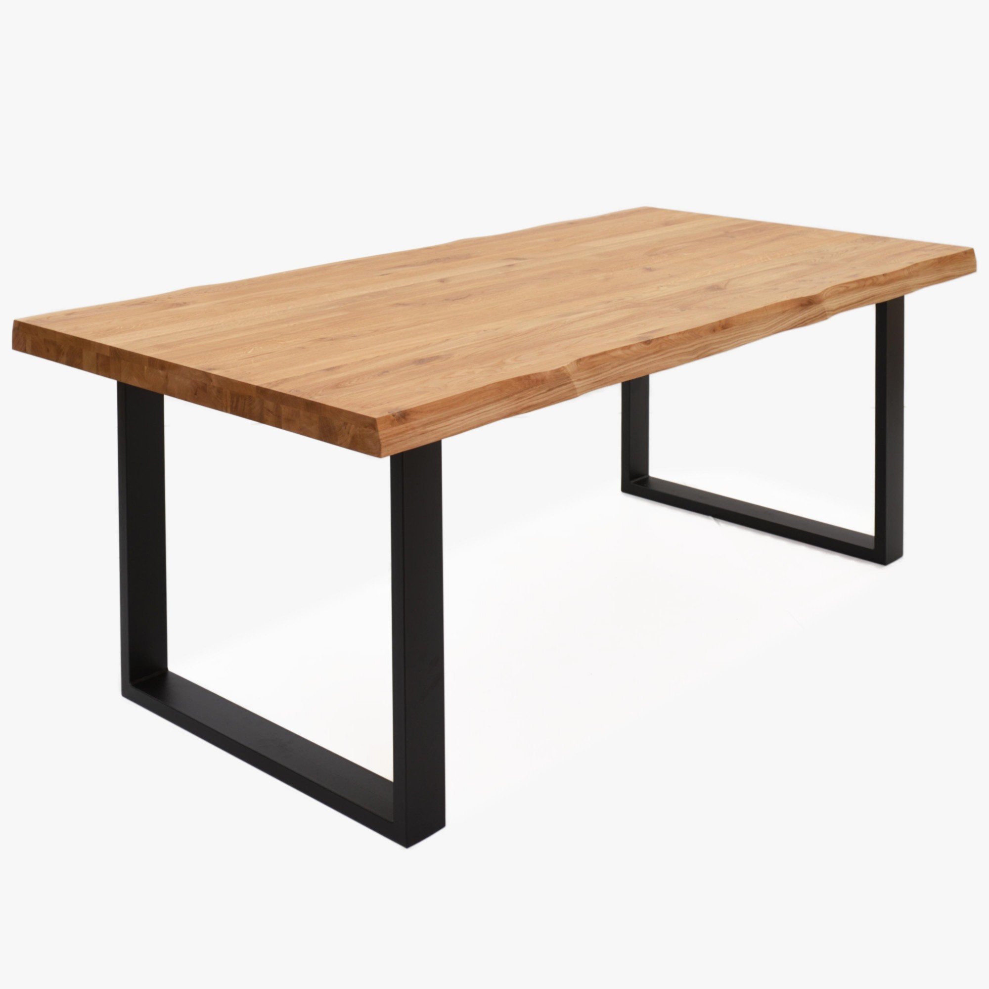 Dieser robuste Eichentisch ist ein visueller Blickfang, der die Stärke und Beständigkeit echten Eichenholzes widerspiegelt. Gefertigt mit einer wunderschönen Tischplatte, seine massive Optik und hohe Festigkeit garantieren, dass dieses Möbelstück Ihnen viele Jahre dienen wird. Erhältlich in zwei Größen, ruht dieser Tisch auf einem stabilen Fundament aus schwarzen matten Eisenbeinen, was seiner traditionellen Ästhetik eine moderne Note verleiht. Die Tischkanten bleiben seiner natürlichen Beschaffenheit treu mit charakteristischer und unregelmäßiger Abschlussform, die die Authentizität des Materials betont.