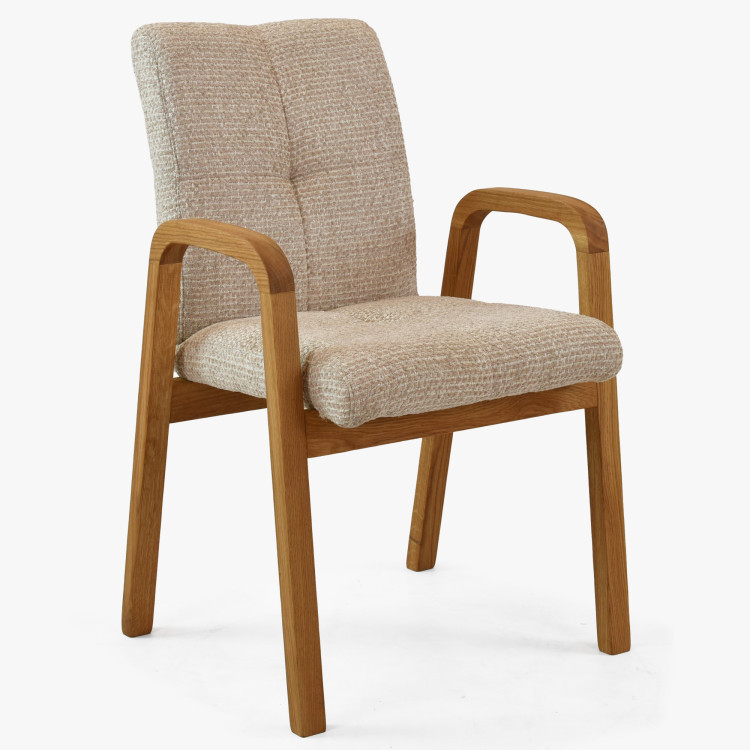 - Stühle: aus massivem Eichenholz mit Armlehnen und Polsterung in Beigetönen