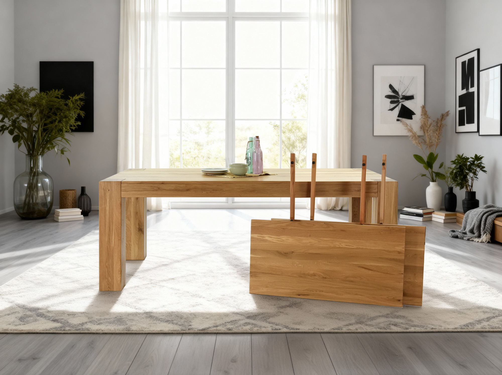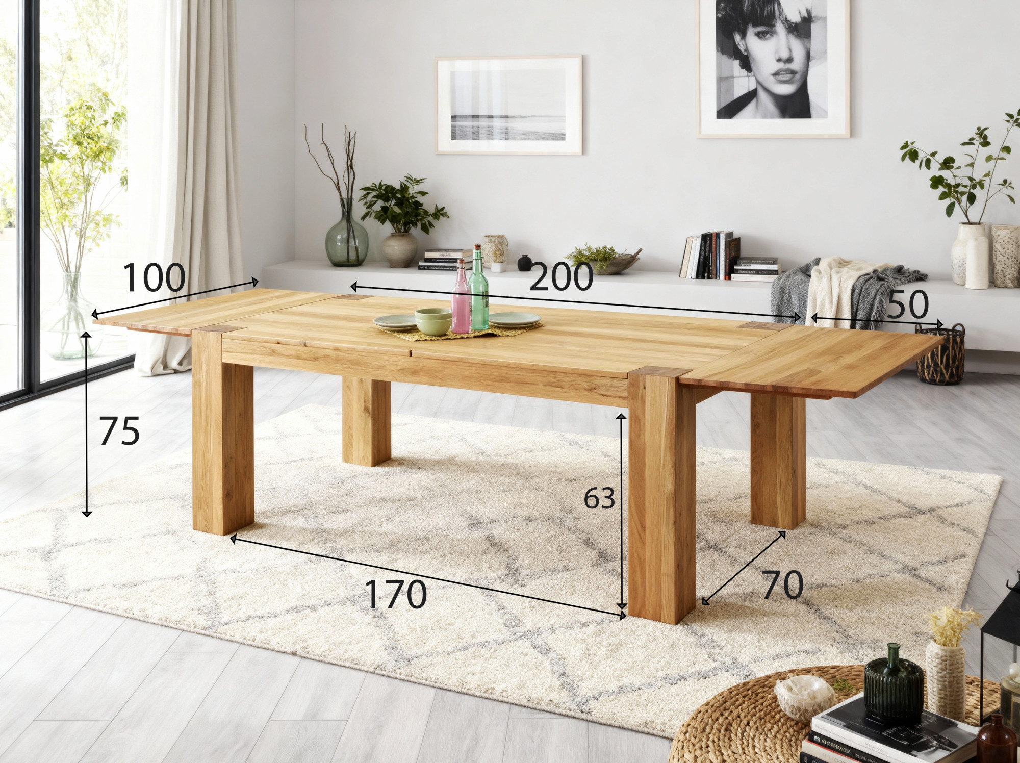 Ausziehbarer Massivholz-Esstisch Eiche 200x100 cm mit 4