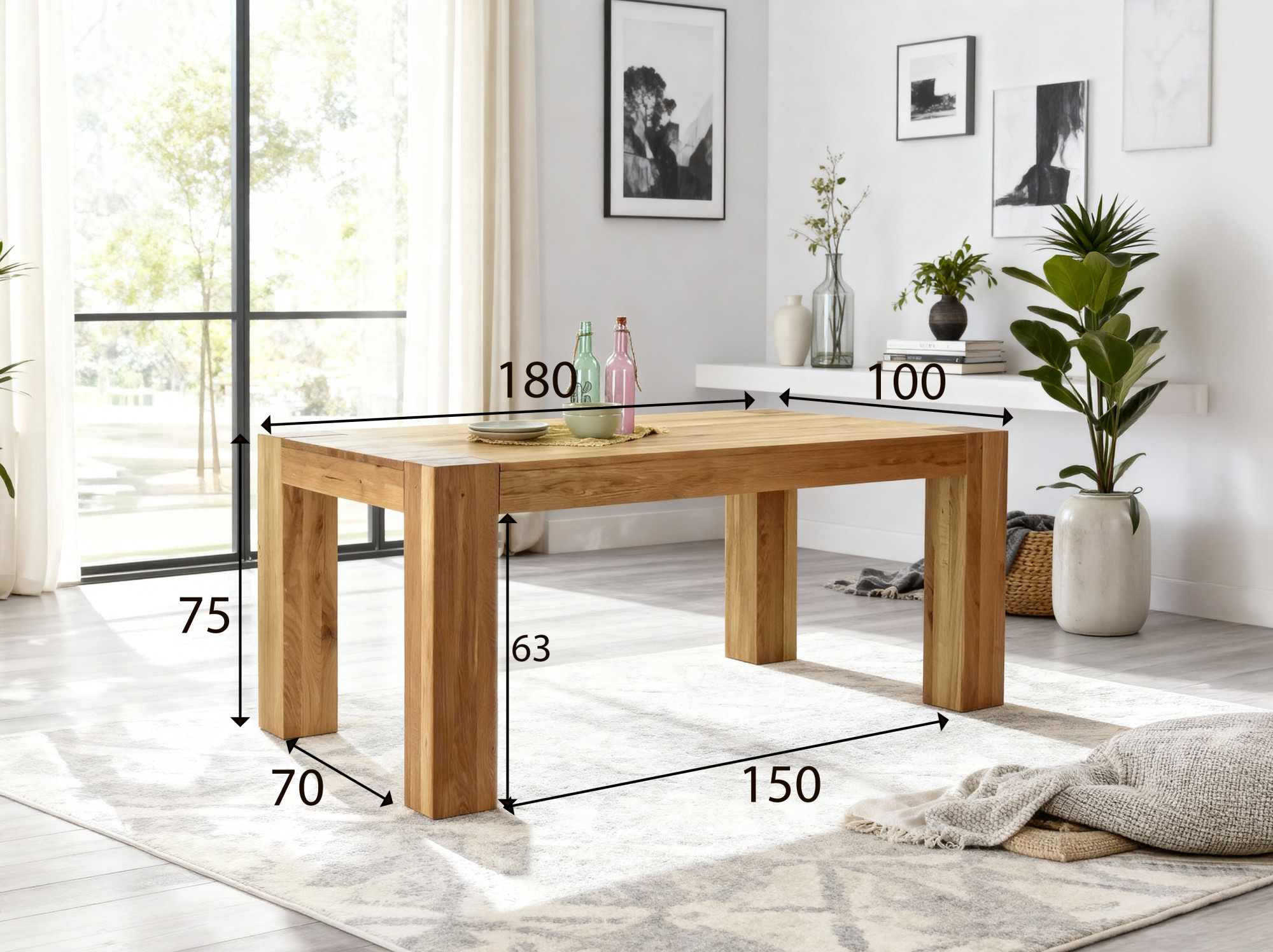 - Massive Tischbeine: Querschnitt 15 × 15 cm bietet maximale Stabilität