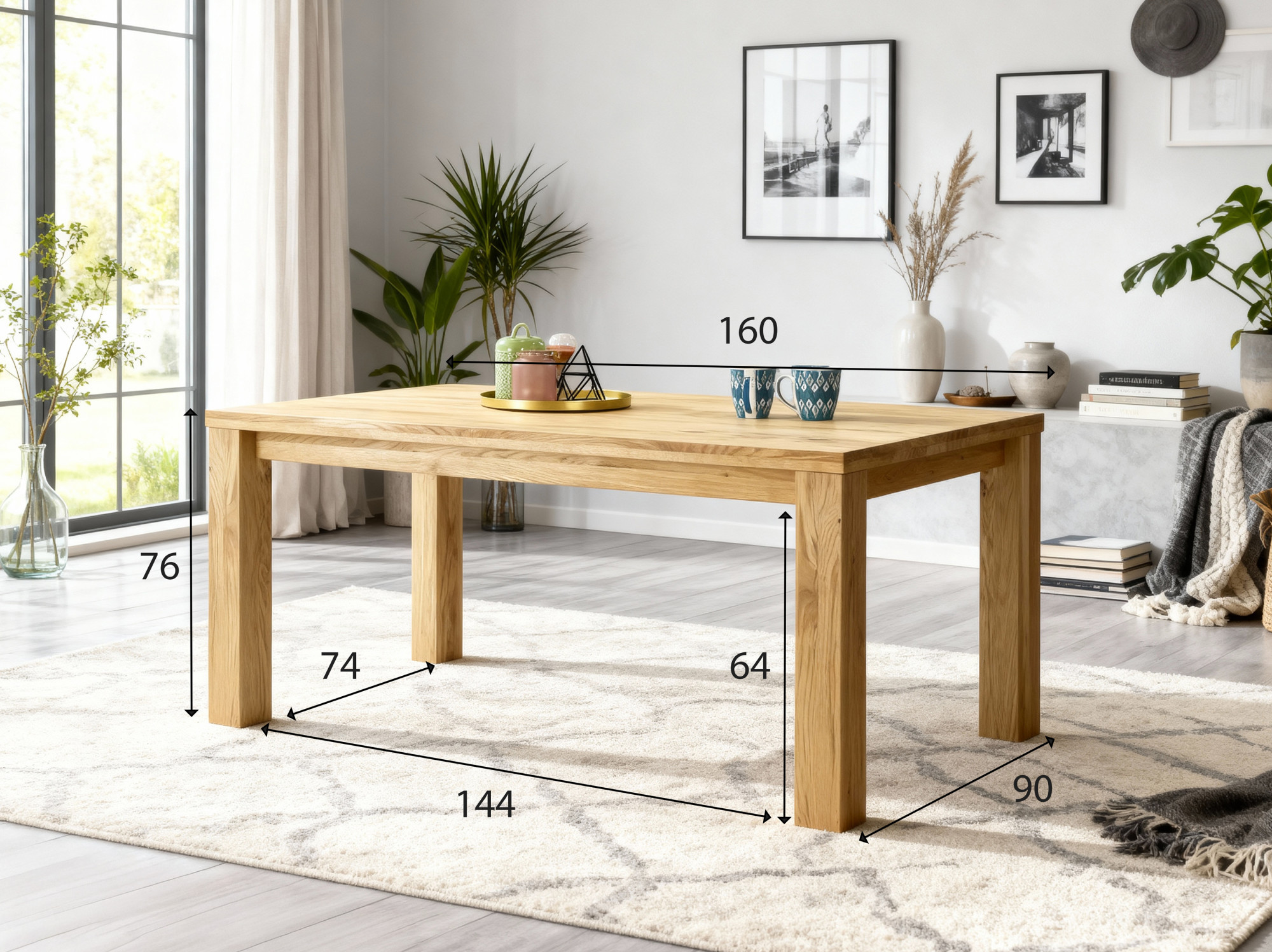 - Massiver Eichentisch Bratislava – Maße 160 x 90 cm, Höhe 76 cm