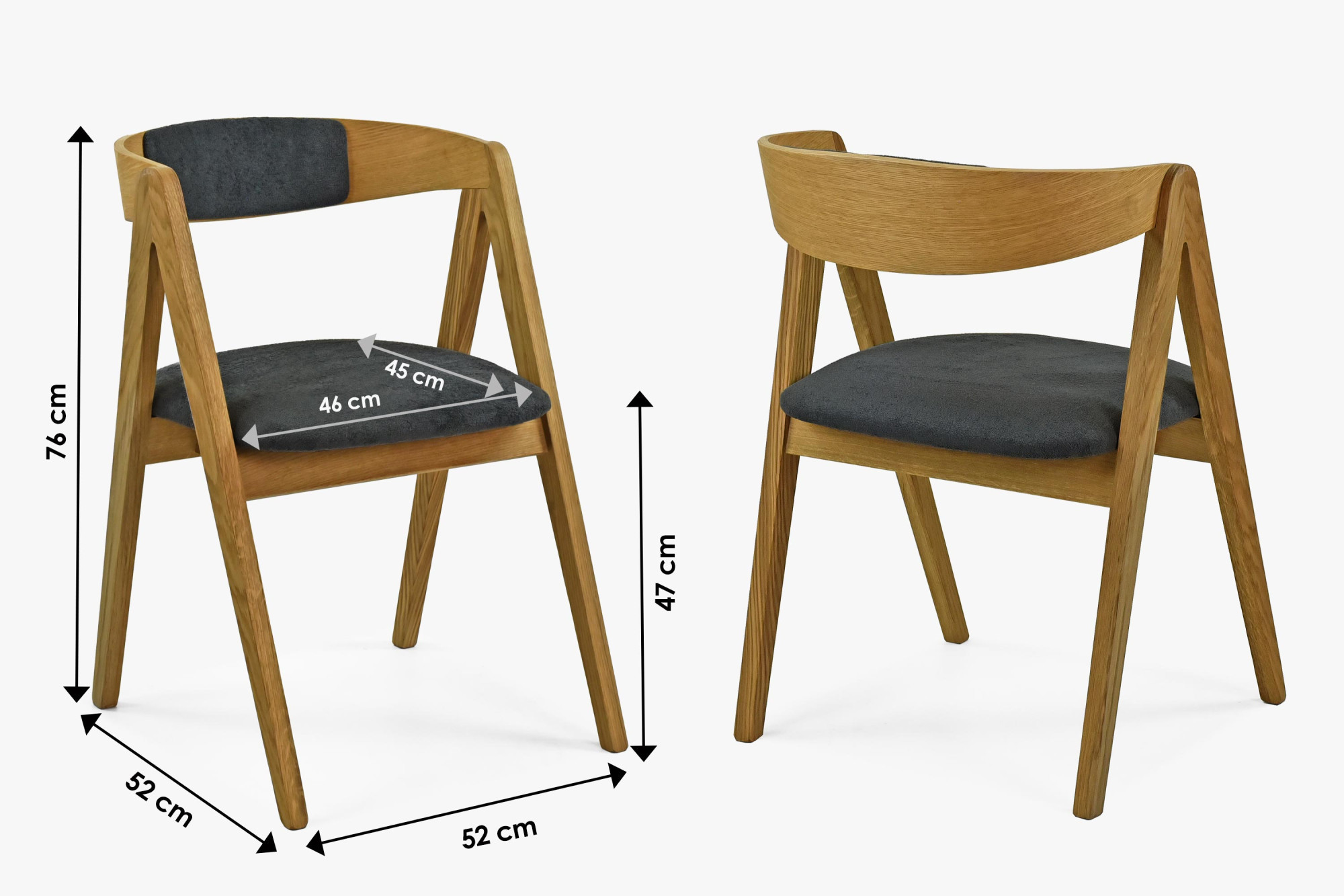 Unsere eiche Esszimmergarnitur mit gepolsterten Sesseln Maja stellt die perfekte Verbindung von natürlichem Massivholz und modernem Design dar. Die Sessel Maja erlangten sofort nach Markteinführung große Beliebtheit dank ihres anspruchsvollen Aussehens und hohen Komforts. Wir sind ein Familienunternehmen mit Tradition seit 1993 und bedienen jährlich über 50.000 zufriedene Kunden in ganz Europa. Wir verfügen über einen eigenen Transportservice – die Möbel werden direkt in unserem Lager verladen und bei Ihnen zuhause ausgeladen. Standardmäßig liefern wir nach Slowakei, Tschechien, Ungarn, Österreich und Polen, auf Wunsch sind auch Lieferungen in weitere Länder möglich. Die Graphitfarbe der Polster wirkt elegant und universell, sodass die Garnitur sowohl im Esszimmer, in der Küche als auch im Büro perfekt passt. Durch das geringe Gewicht der Sessel können Sie die Raumaufteilung einfach an Ihre aktuellen Bedürfnisse anpassen. Diese Garnitur vereint zeitloses Design aus massivem Eichenholz mit modernem Komfort und schafft in Ihrem Zuhause einen Ort, der zum Mittelpunkt des Familienlebens für viele Generationen wird!