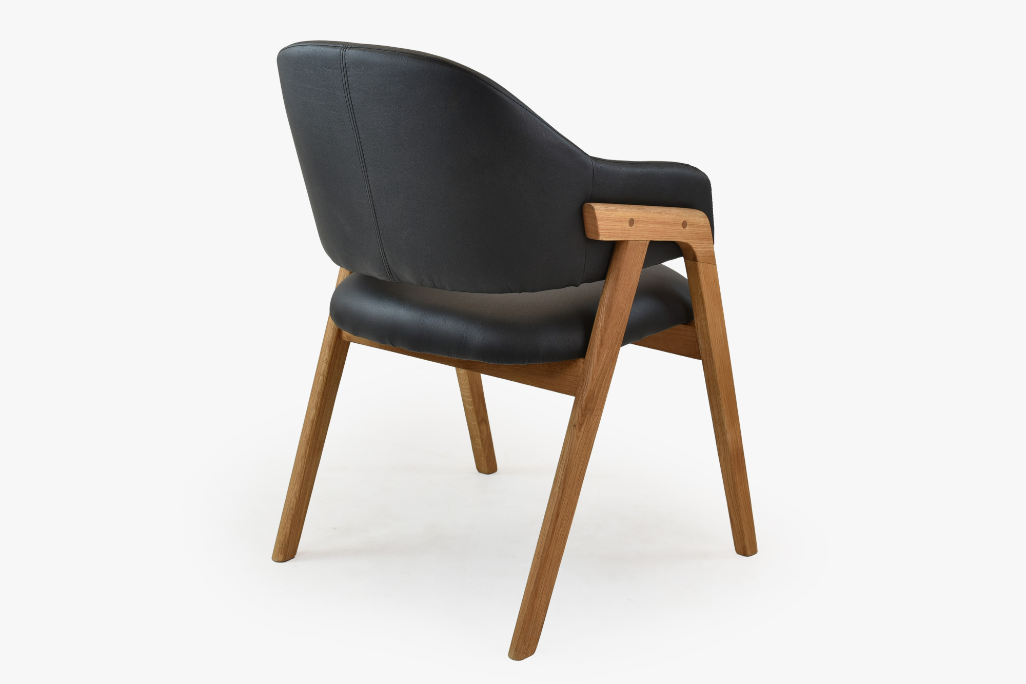 Im Set enthalten ist außerdem der Design-Esszimmerstuhl Beny mit Armlehnen, gefertigt aus massivem Eichenholz in der Farbe Eichen-Natur und bezogen mit veganem Premium-Kunstleder in Schwarz. Das Material ist kein gewöhnliches PU-Kunstleder, sondern ein einzigartiger Stoff mit authentischem Lederlook und extremer Strapazierfähigkeit, bestätigt durch einen Martindale-Test mit 60.000–70.000 Zyklen. Mit einem Flächengewicht von 350 g/m² und Easy-Clean-Technologie ist der Stuhl für den täglichen Gebrauch bestens geeignet und bietet dank ergonomischer Form auch bei längerem Sitzen hohen Komfort.
