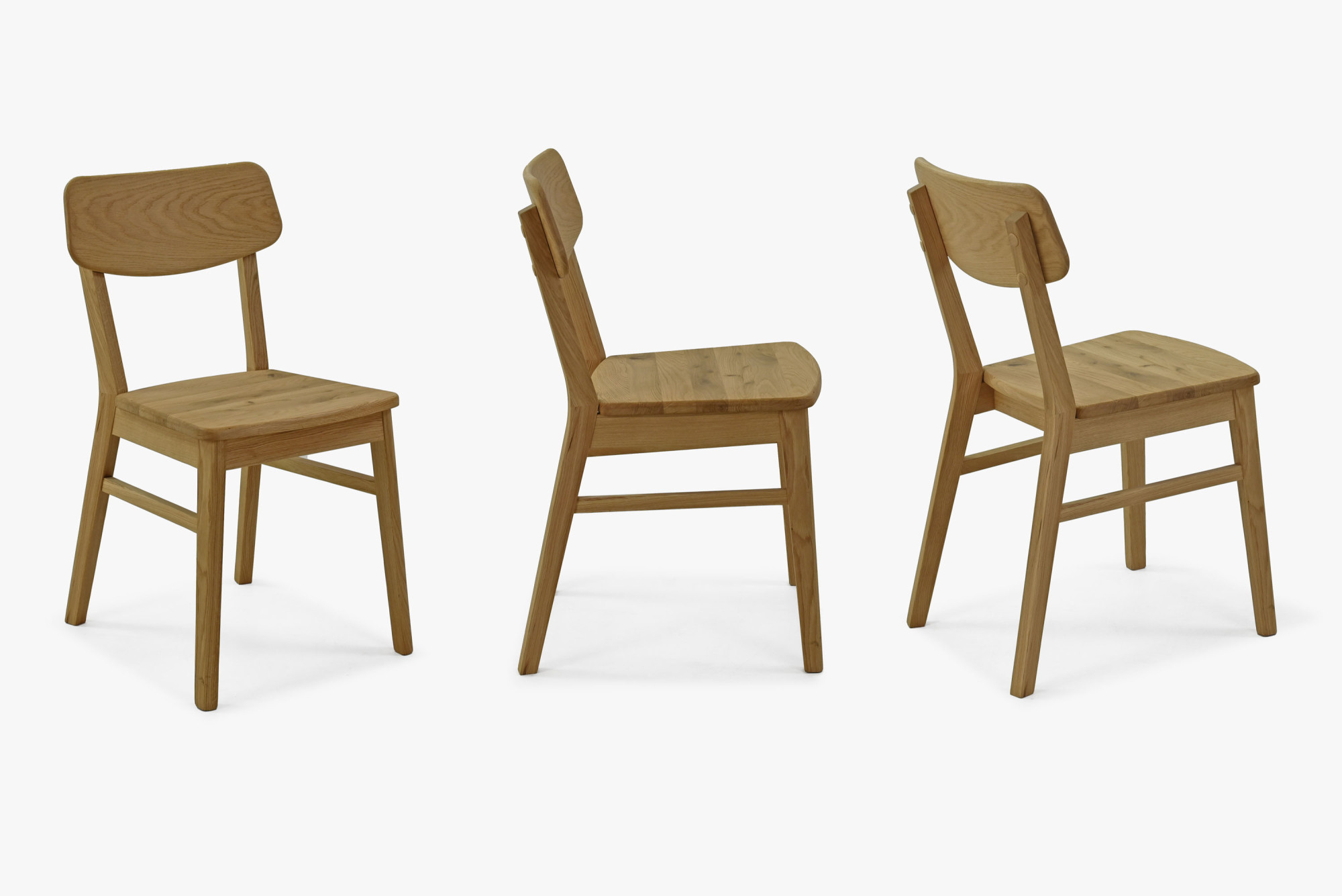 Die massiven Stühle Vilnus sind aus FSC-zertifiziertem Eichenholz gefertigt, was die ökologische Herkunft des Materials garantiert. Die Oberflächenbehandlung mit natürlichem Öl in der Farbe Eiche Natur sorgt für einfache Kombinierbarkeit mit anderem Eichenmöbel und bringt Harmonie und die Wärme der Natur in den Raum. Die Stühle werden bereits komplett montiert in Verpackungen zu je zwei Stück geliefert, was die Inbetriebnahme erheblich erleichtert. Das Esszimmer-Set Janov & Vilnus ist ideal für 4 Personen und vereint Qualität, lange Lebensdauer und natürliches Design.