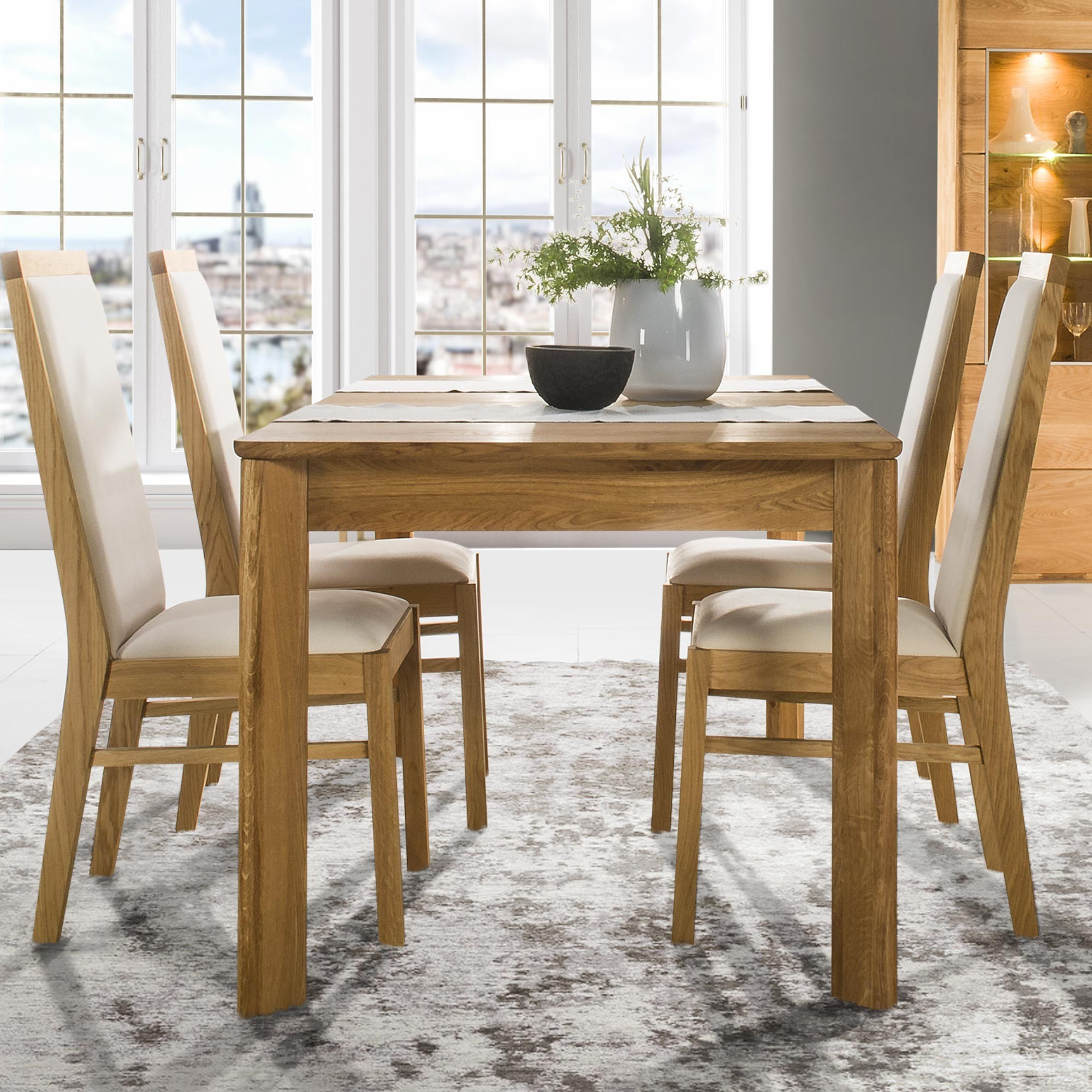 Eine bekannte Art, wie Sie sich als Familie bei Ihnen zuhause viel häufiger treffen werden. Es ist der großzügige Esstisch aus der Eichenmöbel-Kollektion Texas. Die Kollektion ist eine Neuheit für das Jahr 2018, und daher glauben wir, dass ein frischer Wind im Möbeldesign auch in Ihr Zuhause Einzug halten wird. Am Esstisch Texas macht es Freude, zusammenzusitzen. Die Hausfrauen werden es entschuldigen, dass die zubereiteten Gerichte kurz zur Seite gestellt werden. Bewundert wird vor allem das 100 % natürliche Eichenmaterial, das ästhetische Aussehen des Tisches und seine Praktikabilität. Man kann sagen, dass dieser Esstisch durch seine Verarbeitung, seine massive Optik und Qualität ein Luxusgefühl in Ihr Esszimmer bringt. Ihre Gäste werden sich nur schwer von diesem Komfort trennen können.
